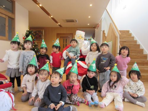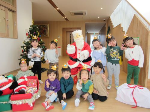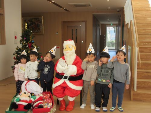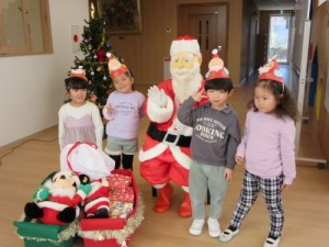 クリスマス会を実施しました。中萩保育園にもサンタさんが来てくれました!!