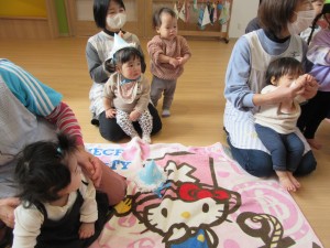 なんと!英語で挑戦!!保育士を真似て英語で答える姿が見られました♡さすがです!
