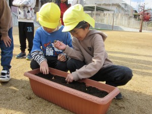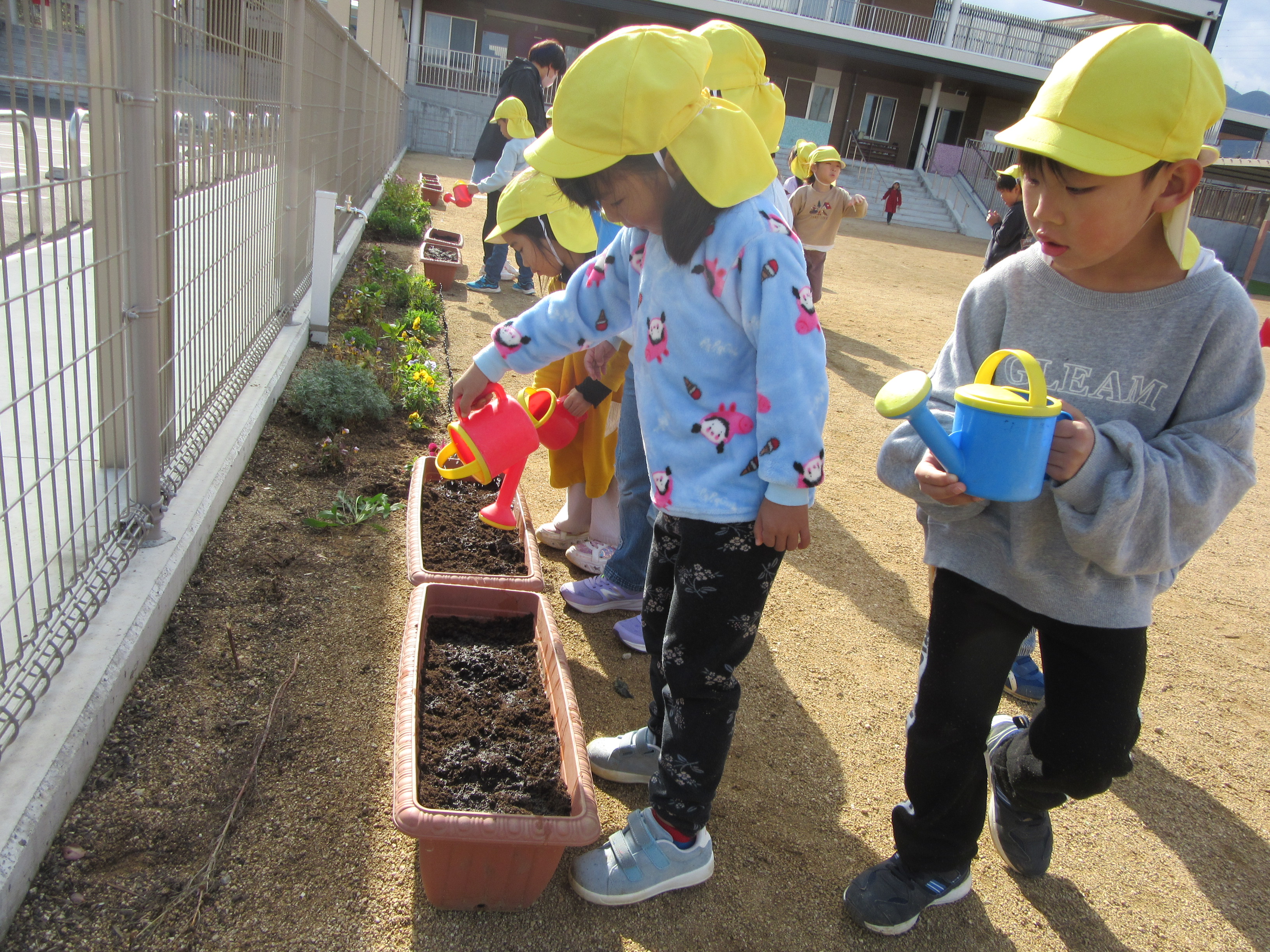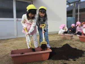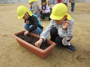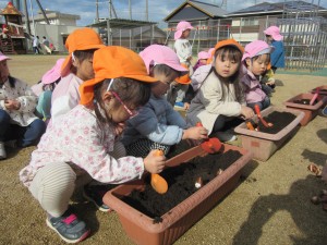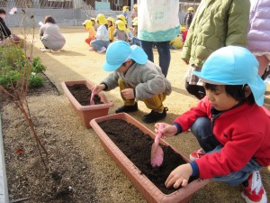 ちゅうりっぷの球根植え(12月5日実施)2024年12月27日ちゅうりっぷの球根は先がとんがっているほうを上にして植えることなど説明を聞いて、プランターに赤・白・ピンク・黄色・紫の5色のちゅうりっぷを植えていきました!! プランターを並べて、自分の植えたところがわかるように植えていきます☆ 『わたしはピンク』『ぼくは白』など、自分の植えた球根が、春になってきれいな花を咲かせるのを、とっても楽しみにしている子どもたちです♬ ちゅうりっぷの花が咲く頃、一つお兄さん、お姉さんになっているね♡ 施設情報愛媛県新居浜市にある児童福祉施設中萩保育園あいさつのできる子 つよい体のやさしい子 話の聞ける子 自分で考えできる子児童福祉施設 中萩保育園〒792-0045愛媛県新居浜市中萩町8番1号TEL:0897-41-7233 FAX:0897-41-7209中萩保育園WEBサイト最近の記事2025年9月25日敬老の日 はがき作り児童福祉施設 中萩保育園2025年9月25日誕生会(9月5日実施)児童福祉施設 中萩保育園2025年8月25日防災集会(8月21日実施)児童福祉施設 中萩保育園2025年8月25日プール大会(8月6日実施)児童福祉施設 中萩保育園2025年8月25日誕生会(8月1日実施)児童福祉施設 中萩保育園2025年7月31日アイス屋さんごっこ(7月22日実施)児童福祉施設 中萩保育園中萩保育園の記事一覧