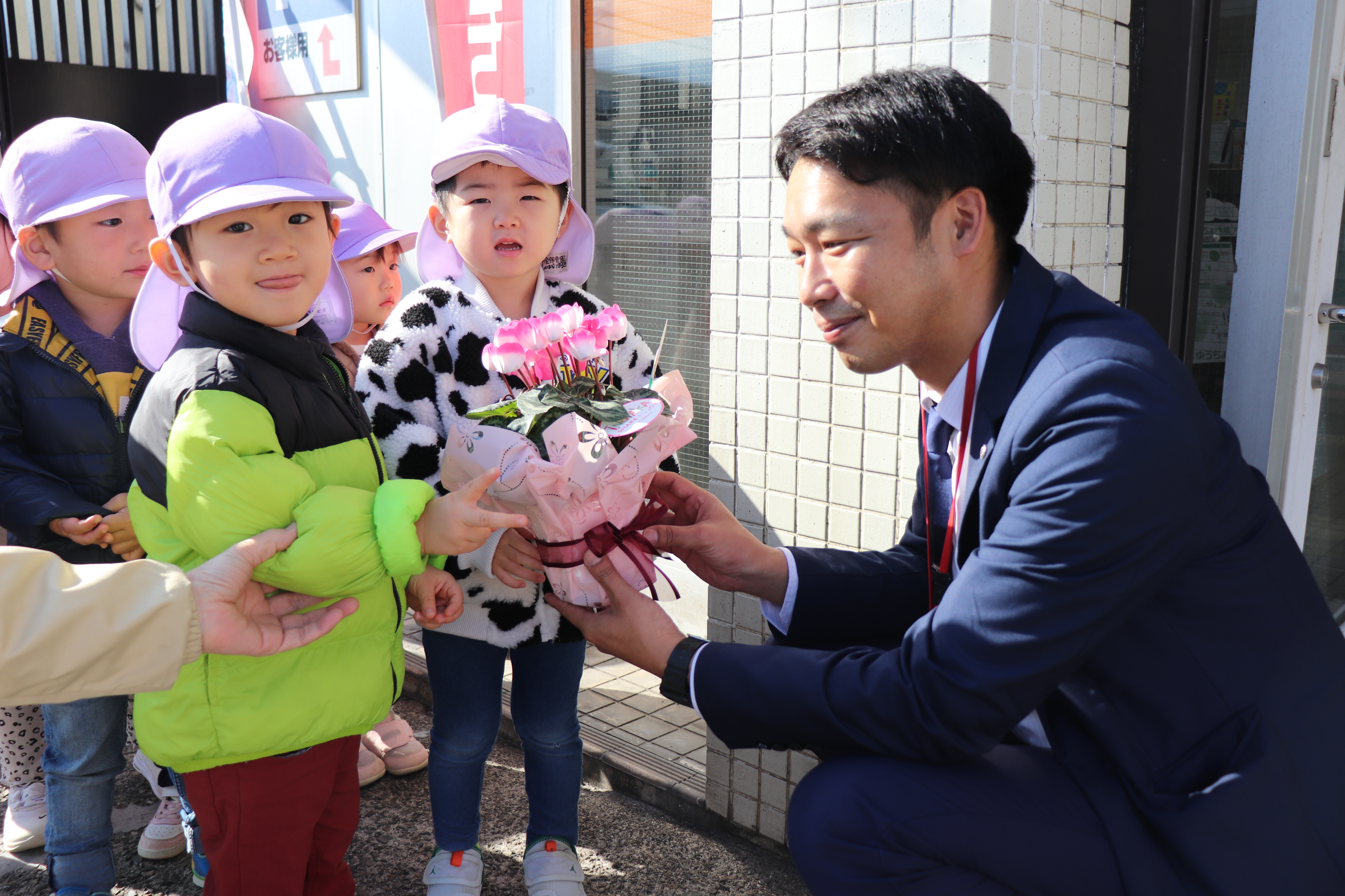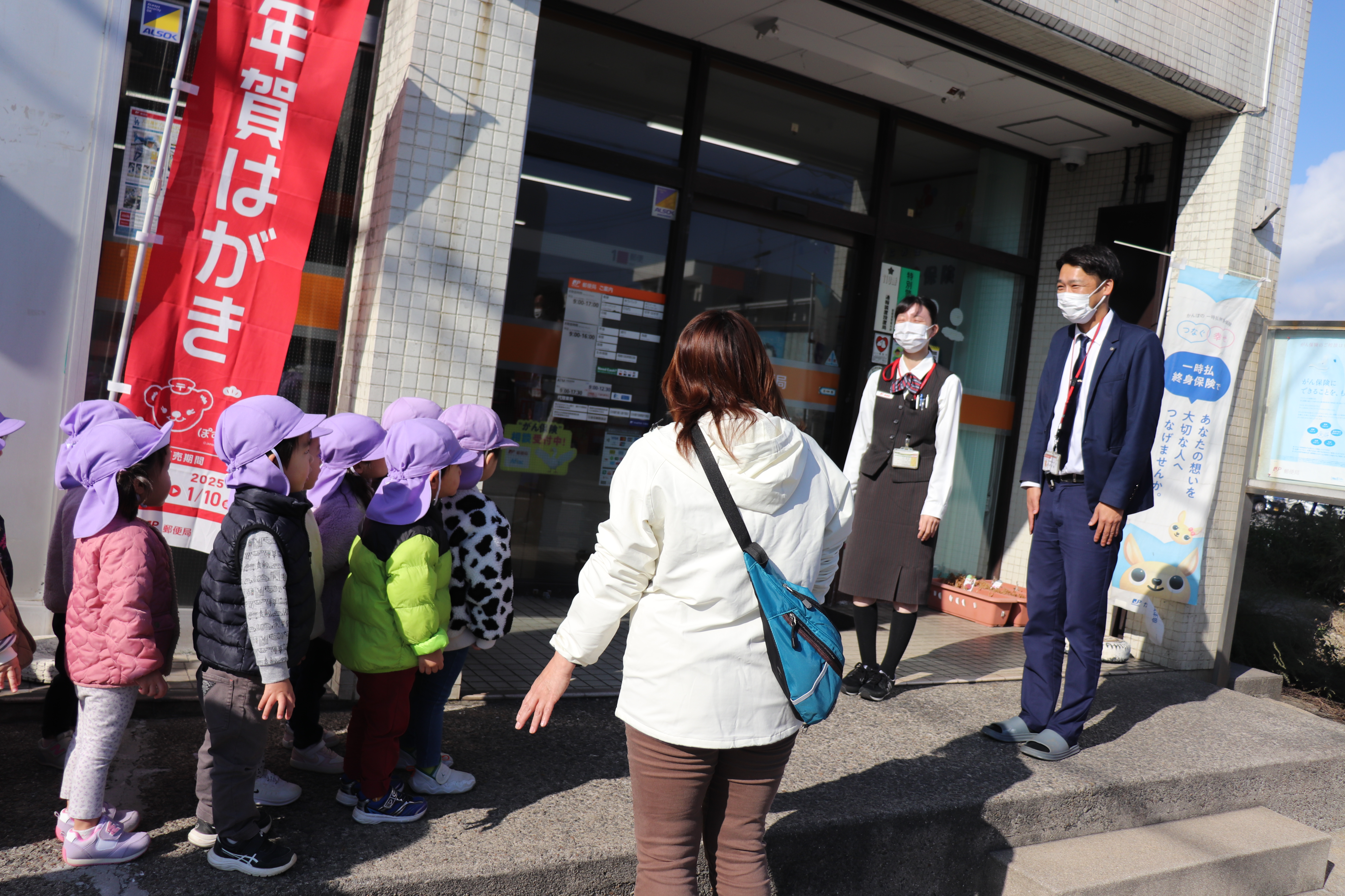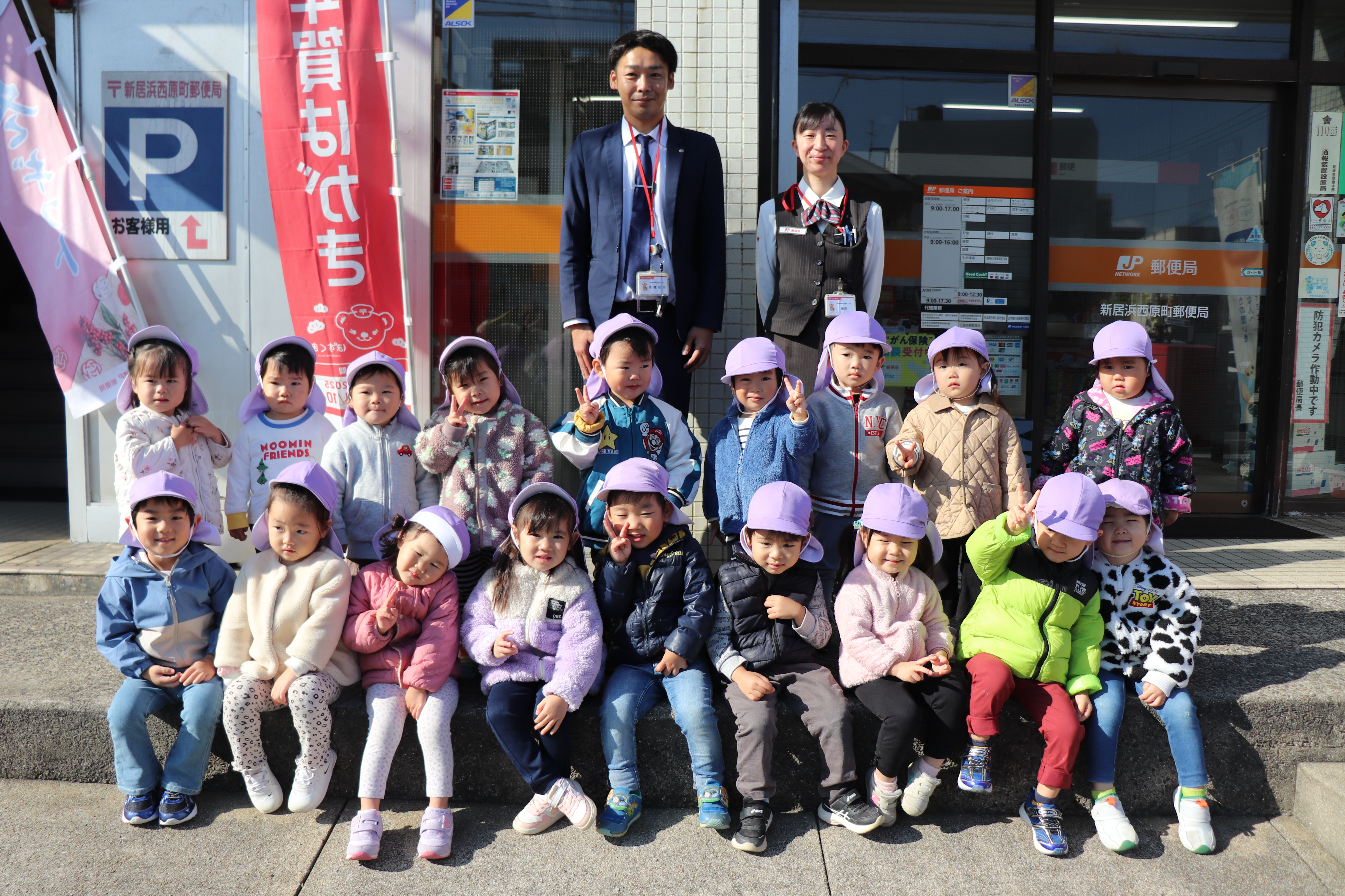 もうすぐ「勤労感謝の日」ということで、すみれ組さんたちが西原郵便局へ職場訪問してきました(*^_^*)子どもたちから、感謝の気持ちを込めて歌とお花のプレゼントをしてきました♪最後には、郵便局の方たちと記念撮影(*^_^*)