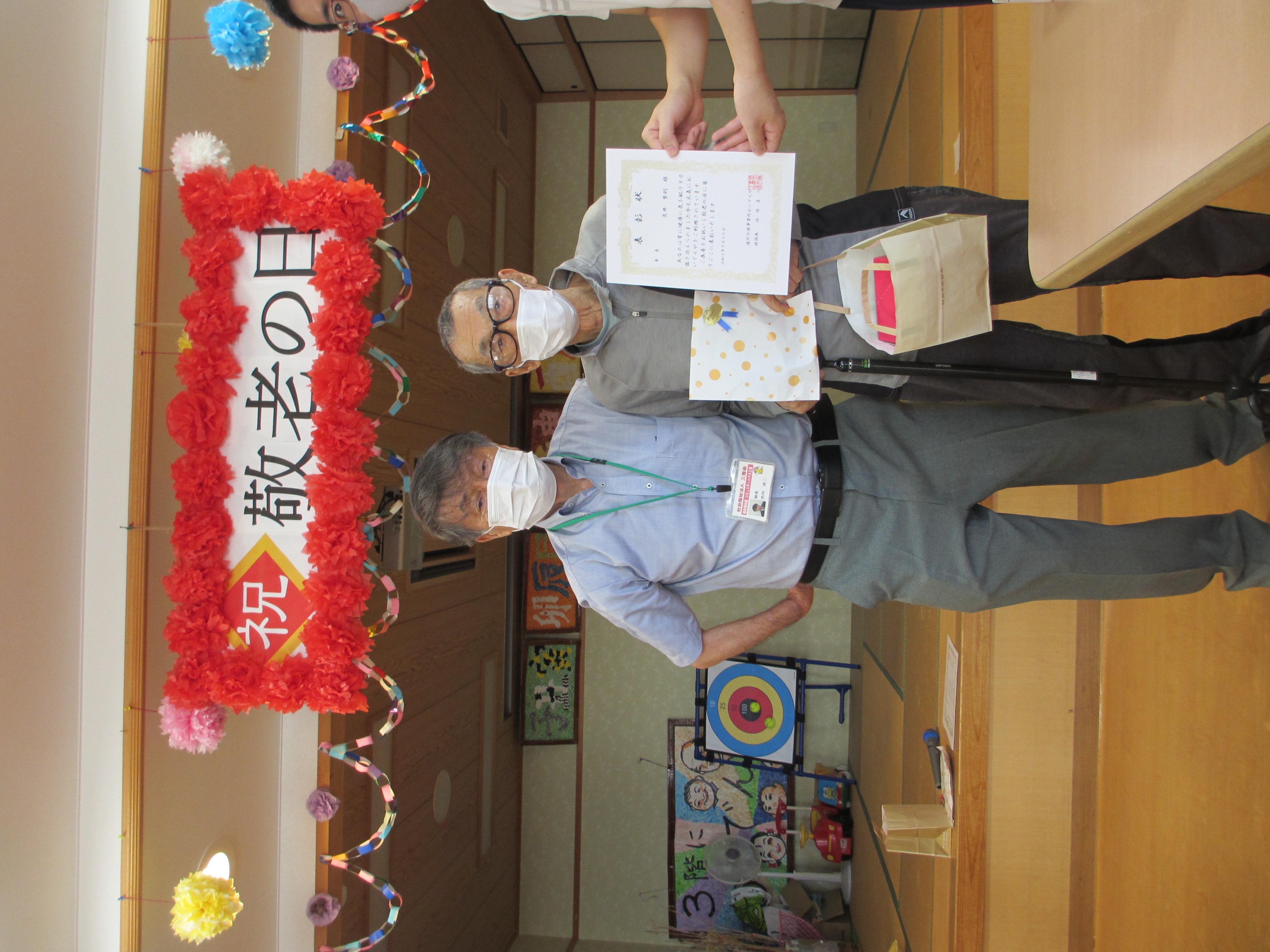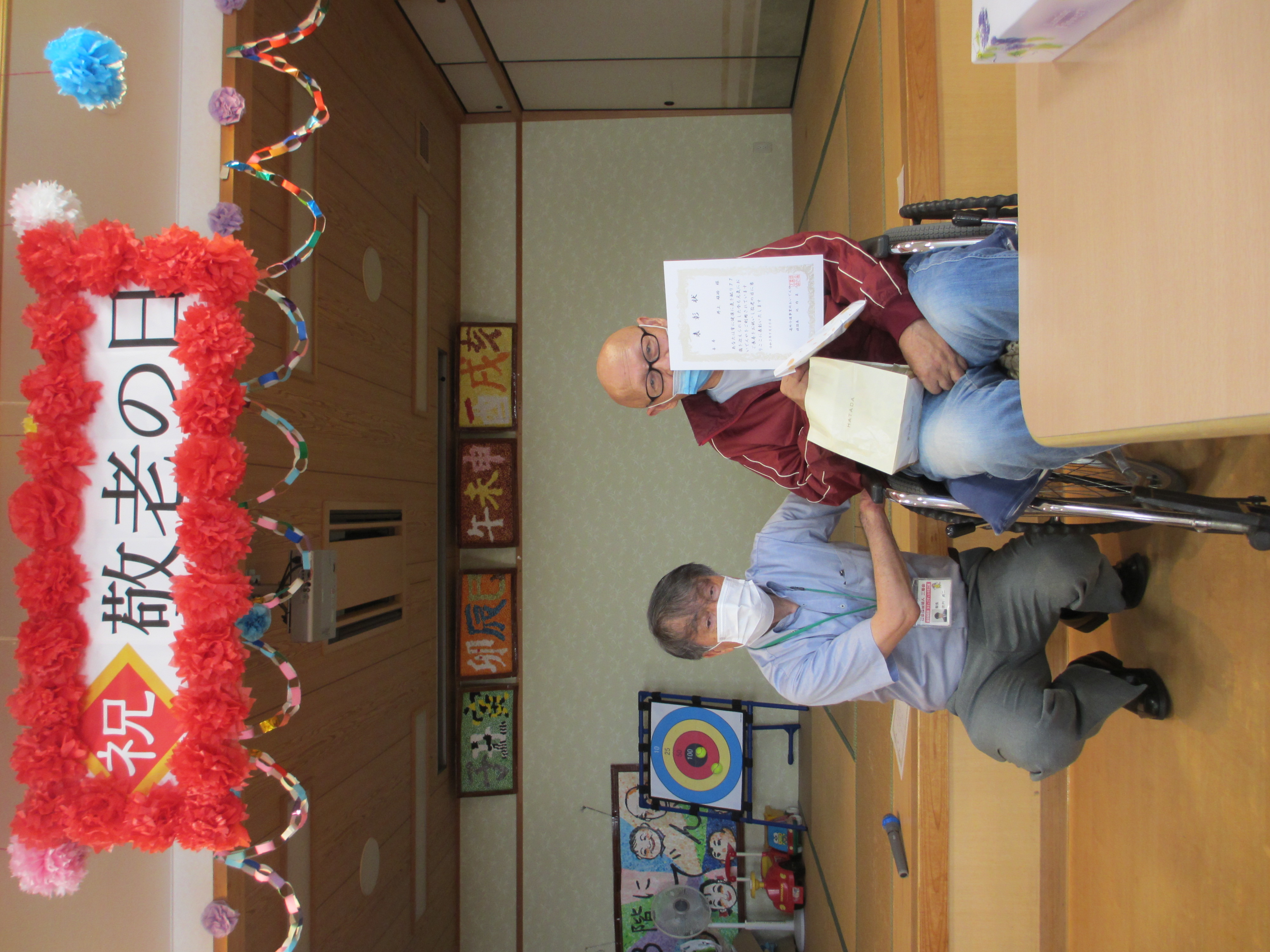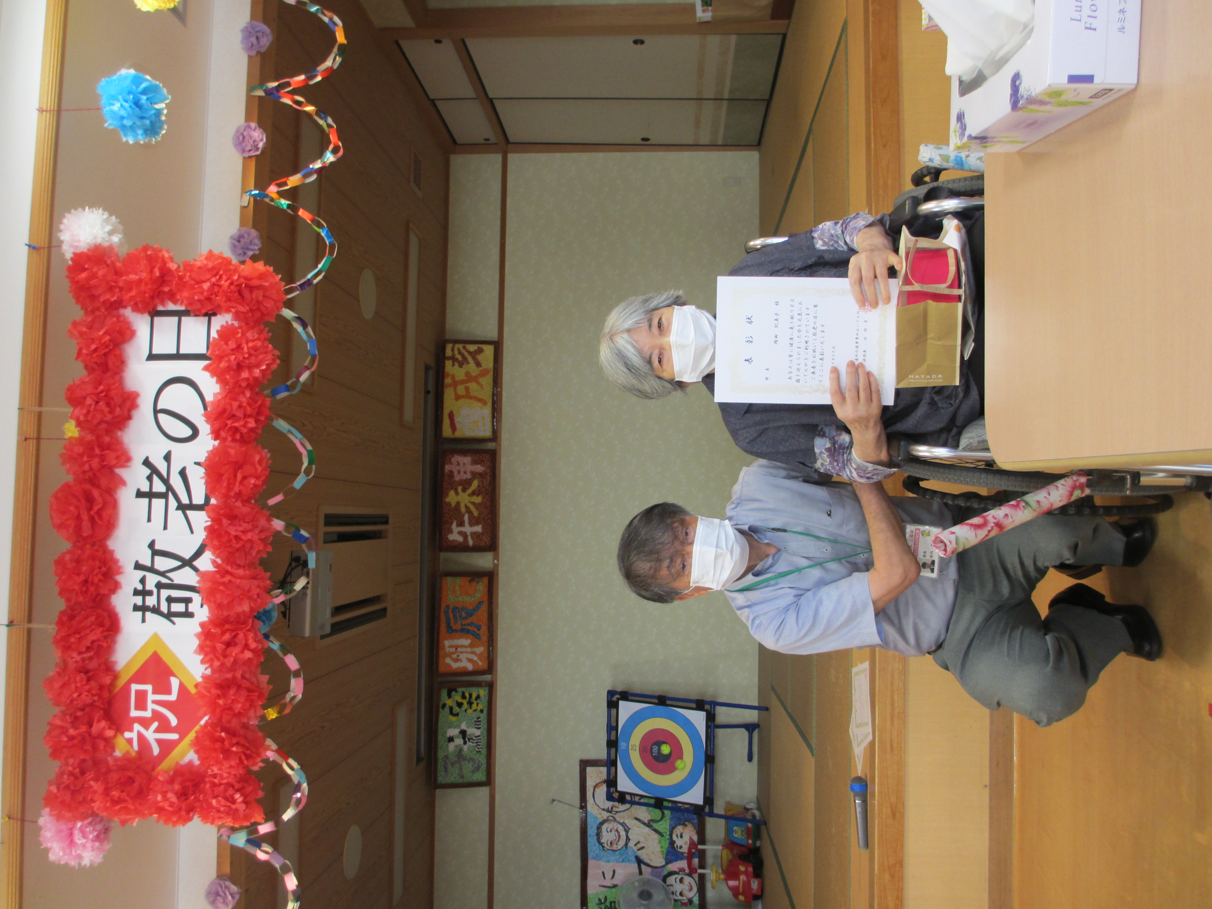 敬老のお祝い ヾ(≧▽≦)ノ2021年10月8日 卒寿 ・ 米寿 ・ 傘寿 ・ 喜寿 ・ 古希 のお祝いをしました。 施設長から直々に表彰状を渡してもらい、ビシッと引き締まりました。 皆さん おめでとうございました! 施設情報愛媛県新居浜市にある総合福祉施設コミュニティハウス三恵子どもから障がい者、高齢者が集う憩いの場コミュニティハウス三恵〒792-0893 愛媛県新居浜市多喜浜1-2-16TEL:0897-46-4545 FAX:0897-46-4811コミュニティハウス三恵WEBサイト最近の記事2025年10月7日10月のお誕生会総合福祉館 コミュニティハウス三恵2025年6月18日おやつ作り(ホットサンド)総合福祉館 コミュニティハウス三恵2025年6月18日レクレーション(ブーメラン)総合福祉館 コミュニティハウス三恵2025年6月18日個別外出総合福祉館 コミュニティハウス三恵2025年6月18日介護教室(血圧のお話)総合福祉館 コミュニティハウス三恵2025年4月21日節分総合福祉館 コミュニティハウス三恵コミュニティハウス三恵の記事一覧
