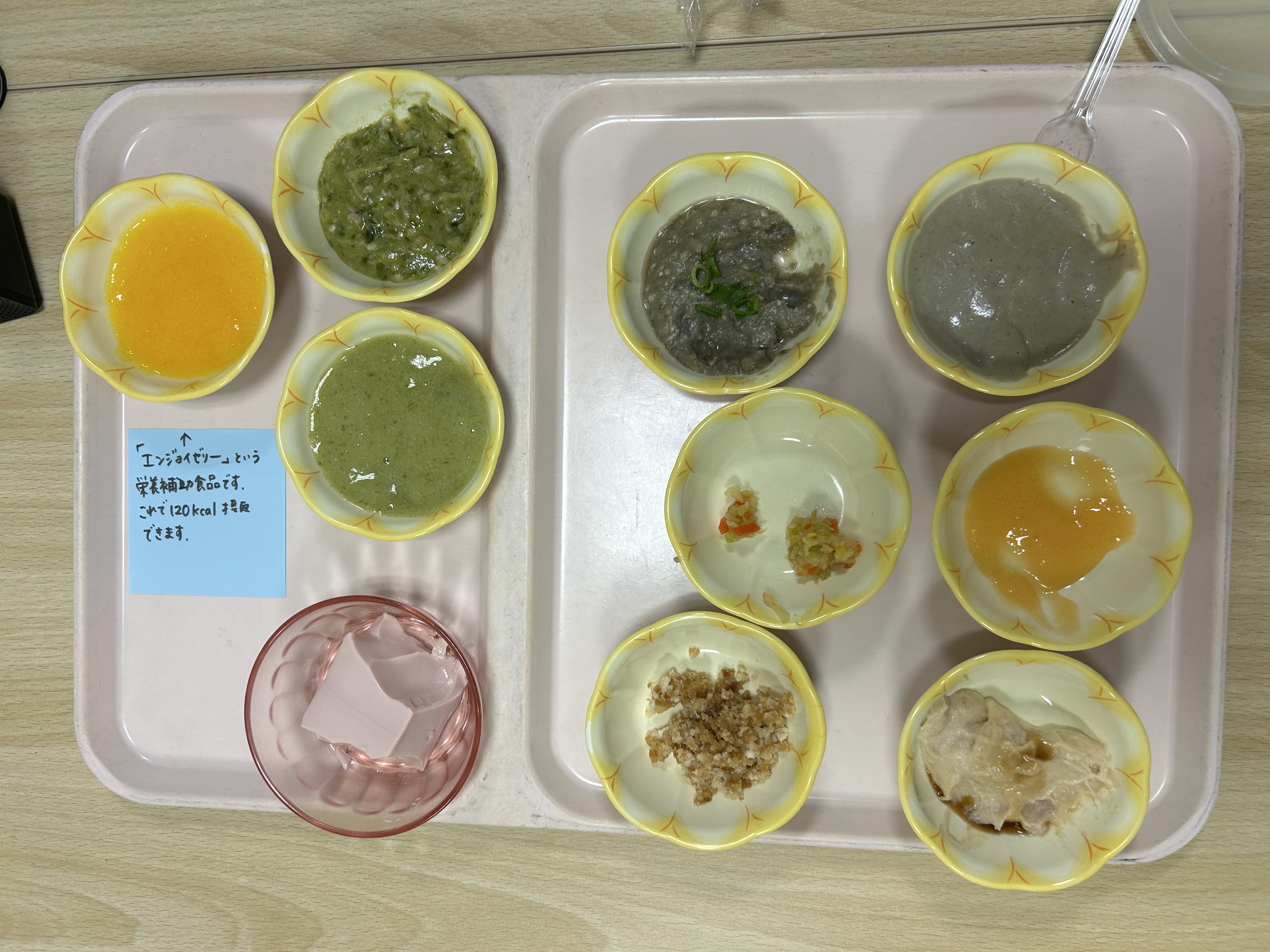 食事体験(普通食、キザミ食、ブレンダー食、高カロリーゼリー)を行いました。