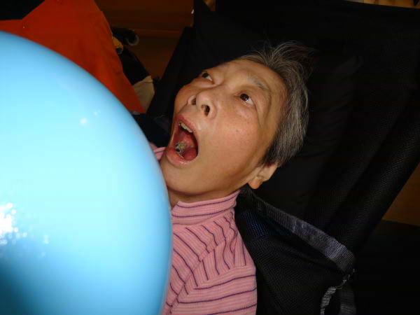 風船を打つのは顔じゃなく、手ですよ(^_^;)