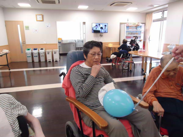 ふわふわ空飛ぶ風船めがけて、そーれぇー。 実力で頑張りますっ!!