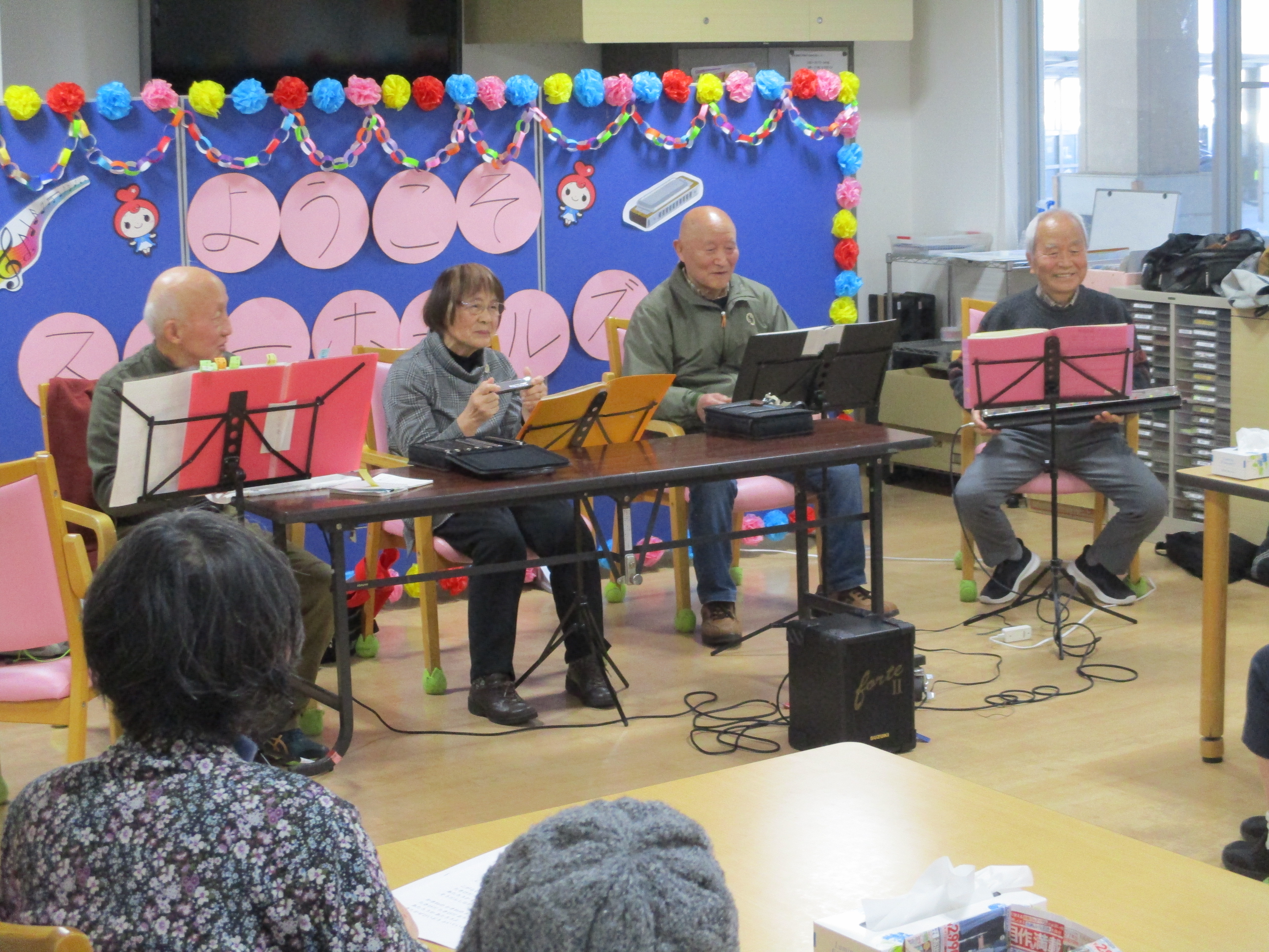 ハーモニカ♩2025年2月22日寒い日が続きますが、いかがお過ごしでしょうか。 今月もボランティアの方が来てくださいました♡♡ ハーモニカ奏者グループのスリーホールズさまです!! 4名の方がいらっしゃって、素敵なメロディーに聴きほれました。 四季の歌、バラが咲いたなど、演奏に合わせてみんなで歌い、笑顔あふれる時間でした(^v^)♪ また、楽器の紹介もしてくださり、大きなハーモニカなども見せていただきました。 是非、またお待ちしております! 素敵な時間をありがとうございます。 施設情報愛媛県新居浜市にある介護老人福祉施設ハートランド三恵手作りの愛あるホームで咲かそう、みんなの笑顔介護老人福祉施設 ハートランド三恵〒792-0050 愛媛県新居浜市萩生17TEL:0897-40-0006 FAX:0897-40-0007ハートランド三恵WEBサイト最近の記事2025年10月14日〖南館3階〗エッグタルト介護老人福祉施設 ハートランド三恵2025年10月11日〖南館3階〗星ユニット壁画介護老人福祉施設 ハートランド三恵2025年10月11日〖南館3階〗食事の風景介護老人福祉施設 ハートランド三恵2025年10月11日芸術の秋!食欲の秋!介護老人福祉施設 ハートランド三恵2025年10月10日〖南館3階〗カラフル♫介護老人福祉施設 ハートランド三恵2025年10月10日〖南館3階〗タコパ!介護老人福祉施設 ハートランド三恵ハートランド三恵の記事一覧
