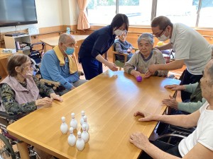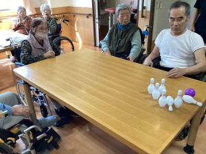 簡単なようで真っすぐ転がしてピンにボールを当てるのはなかなか難しいですね(;^_^A