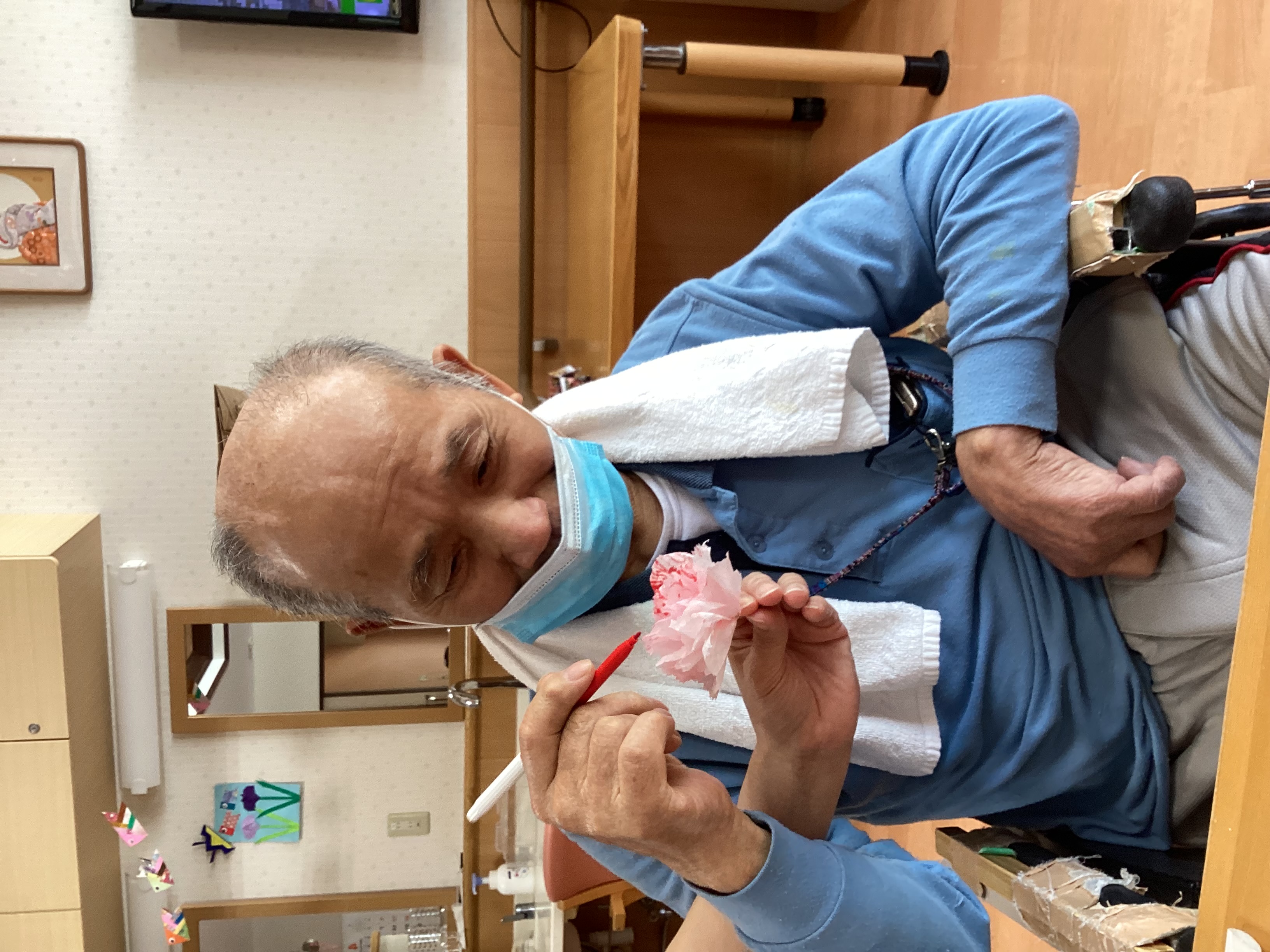 カーネーション2025年5月13日遅くなりましたが、母の日の作品でカーネーションを作成しました! 利用者のみなさんと一緒にきれいに作ることができました(^^)v きれいに色を付けてくださいました(*‘ω‘ *) 本物に負けないくらいのきれいなカーネーションができました!(^_-)-☆ 施設情報愛媛県新居浜市にある介護老人福祉施設ハートランド三恵手作りの愛あるホームで咲かそう、みんなの笑顔介護老人福祉施設 ハートランド三恵〒792-0050 愛媛県新居浜市萩生17TEL:0897-40-0006 FAX:0897-40-0007ハートランド三恵WEBサイト最近の記事2025年10月14日〖南館3階〗エッグタルト介護老人福祉施設 ハートランド三恵2025年10月11日〖南館3階〗星ユニット壁画介護老人福祉施設 ハートランド三恵2025年10月11日〖南館3階〗食事の風景介護老人福祉施設 ハートランド三恵2025年10月11日芸術の秋!食欲の秋!介護老人福祉施設 ハートランド三恵2025年10月10日〖南館3階〗カラフル♫介護老人福祉施設 ハートランド三恵2025年10月10日〖南館3階〗タコパ!介護老人福祉施設 ハートランド三恵ハートランド三恵の記事一覧