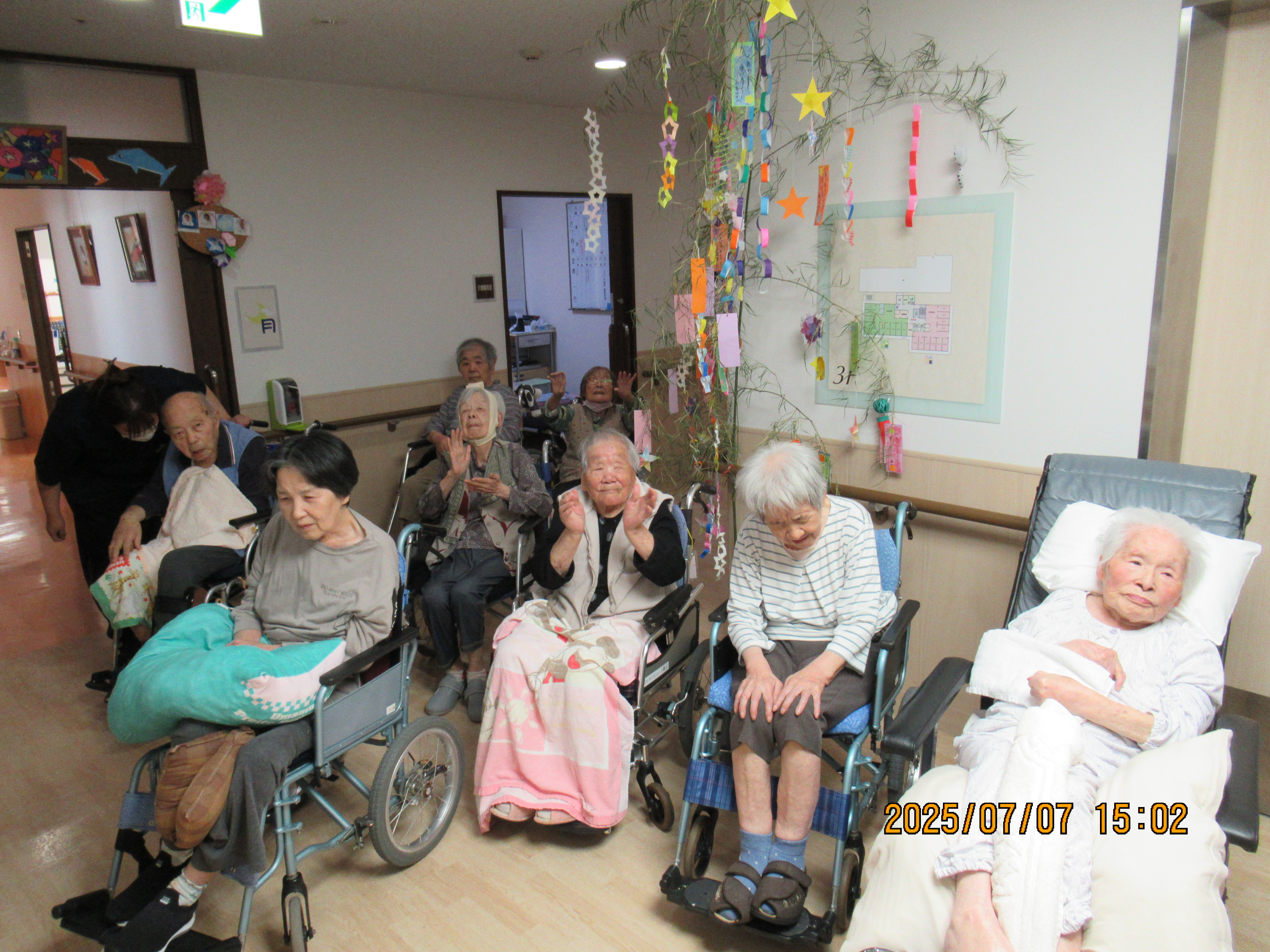 〖南館3階〗七夕☆彡2025年7月7日きょうは七夕なのでお願い事を短冊に書いて笹の葉に飾りを付けてみなさんで七夕の歌を歌ってお祝をしました♪ MVI_0519 ※動画ファイルになります 施設情報愛媛県新居浜市にある介護老人福祉施設ハートランド三恵手作りの愛あるホームで咲かそう、みんなの笑顔介護老人福祉施設 ハートランド三恵〒792-0050 愛媛県新居浜市萩生17TEL:0897-40-0006 FAX:0897-40-0007ハートランド三恵WEBサイト最近の記事2025年10月14日〖南館3階〗エッグタルト介護老人福祉施設 ハートランド三恵2025年10月11日〖南館3階〗星ユニット壁画介護老人福祉施設 ハートランド三恵2025年10月11日〖南館3階〗食事の風景介護老人福祉施設 ハートランド三恵2025年10月11日芸術の秋!食欲の秋!介護老人福祉施設 ハートランド三恵2025年10月10日〖南館3階〗カラフル♫介護老人福祉施設 ハートランド三恵2025年10月10日〖南館3階〗タコパ!介護老人福祉施設 ハートランド三恵ハートランド三恵の記事一覧