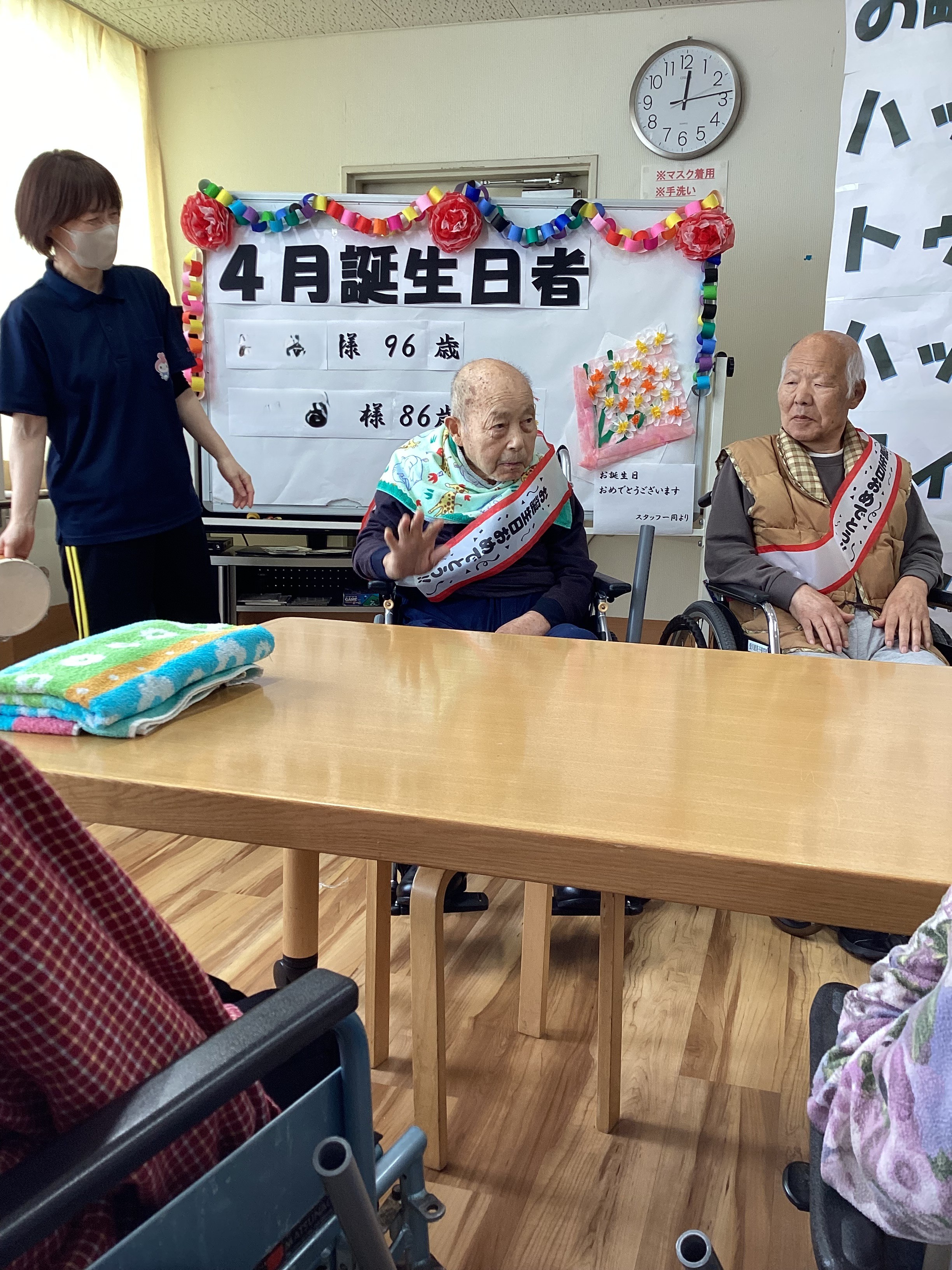 【北館】4月誕生日会2025年7月19日こんにちは 😆 ハートランド三恵 北館では 5月より毎月誕生日会を開くことになりました 😎 これは5月の誕生日会の様子になります‼ IMG_0386 IMG_0387 スッと立ち上がり皆さんにお礼を伝えて下さいました。 ありがとうよー(´;ω;`) 皆さんも元気で…( ノД`)シクシク… と号泣し入所者さま・スタッフまで涙ぐんでしまいました お誕生日っていいですね♡ 施設情報愛媛県新居浜市にある介護老人福祉施設ハートランド三恵手作りの愛あるホームで咲かそう、みんなの笑顔介護老人福祉施設 ハートランド三恵〒792-0050 愛媛県新居浜市萩生17TEL:0897-40-0006 FAX:0897-40-0007ハートランド三恵WEBサイト最近の記事2025年10月14日〖南館3階〗エッグタルト介護老人福祉施設 ハートランド三恵2025年10月11日〖南館3階〗星ユニット壁画介護老人福祉施設 ハートランド三恵2025年10月11日〖南館3階〗食事の風景介護老人福祉施設 ハートランド三恵2025年10月11日芸術の秋!食欲の秋!介護老人福祉施設 ハートランド三恵2025年10月10日〖南館3階〗カラフル♫介護老人福祉施設 ハートランド三恵2025年10月10日〖南館3階〗タコパ!介護老人福祉施設 ハートランド三恵ハートランド三恵の記事一覧