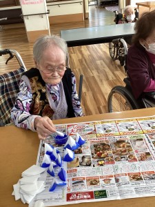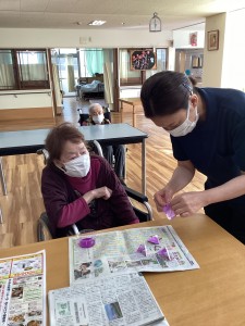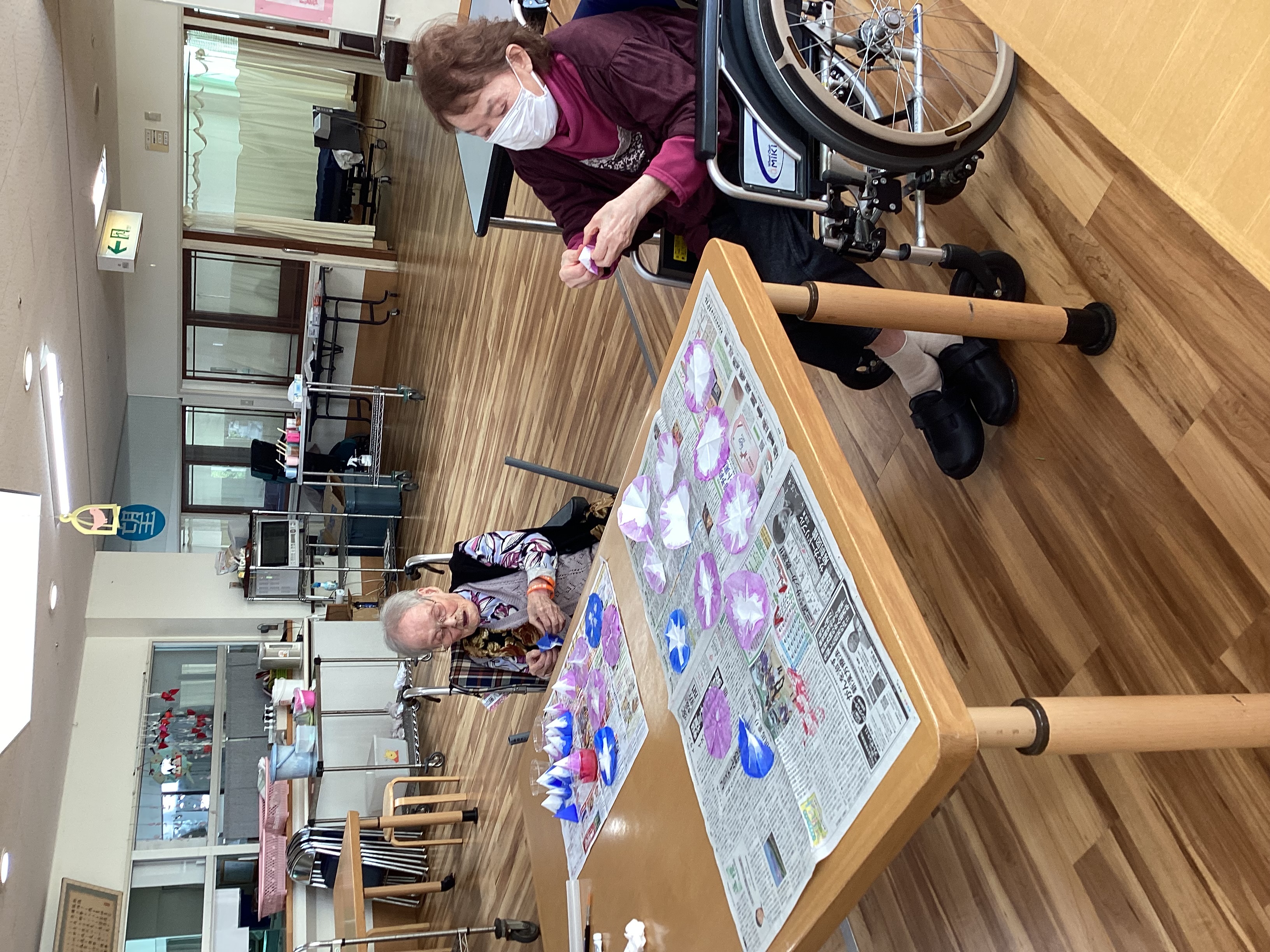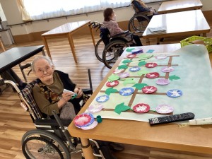 望ユニットでは季節にあった花などスタッフも一緒に作品作りをしています 😛