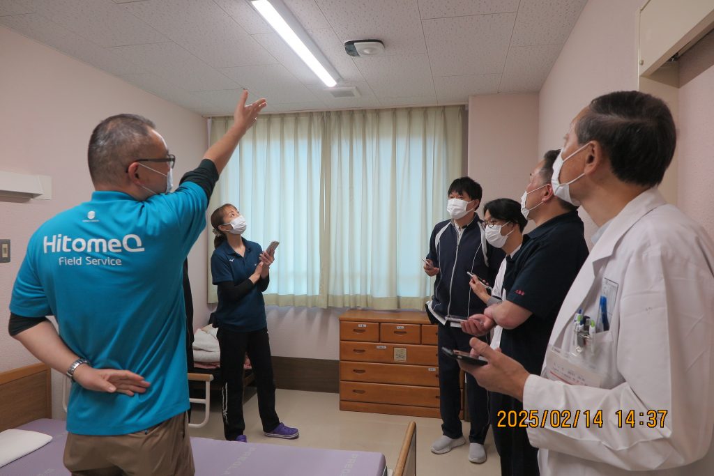 HitomeQの導入 ④2025年3月3日 コニカミノルタの方による研修が始まりました。 機能やiPhoneの操作説明、ケアモニター(設定用パソコン)の入力の仕方など 複数回にわたり研修を実施します。 HitomeQケアサポートは、令和7年3月3日から運用を開始です。 利用者登録を済ませて、ベッド位置の確認を行い 利用者毎の通知設定を行い 、センサーの通知が正しくiPhoneに表示されるか確認し いよいよスタートです!! 施設情報愛媛県東温市にある老人保健施設希望の館身の回りのお世話から心のケアまで、トータルなサポートを心がけています。介護老人保健施設 希望の館〒791-0311 愛媛県東温市則之内甲2783-1TEL:089-960-6336 FAX:089-966-1239希望の館WEBサイト最近の記事2025年10月9日空室状況のお知らせ(10月9日)介護老人保健施設 希望の館2025年10月8日地方祭のご案内介護老人保健施設 希望の館2025年9月26日空室状況のお知らせ(9月26日)介護老人保健施設 希望の館2025年9月22日やかた祭り 第4弾介護老人保健施設 希望の館2025年9月20日やかた祭り 第3弾介護老人保健施設 希望の館2025年9月18日やかた祭り 第2弾介護老人保健施設 希望の館希望の館の記事一覧