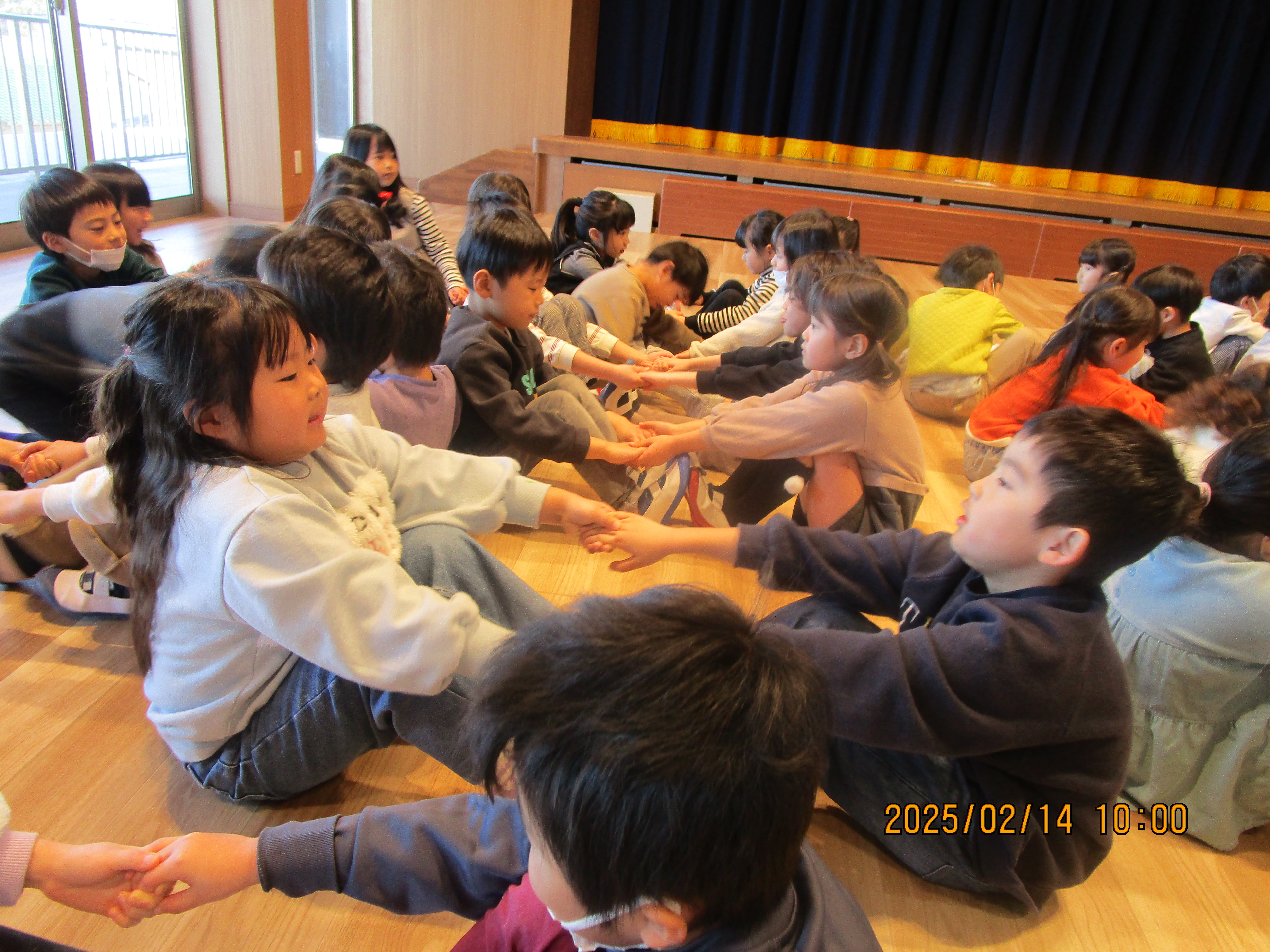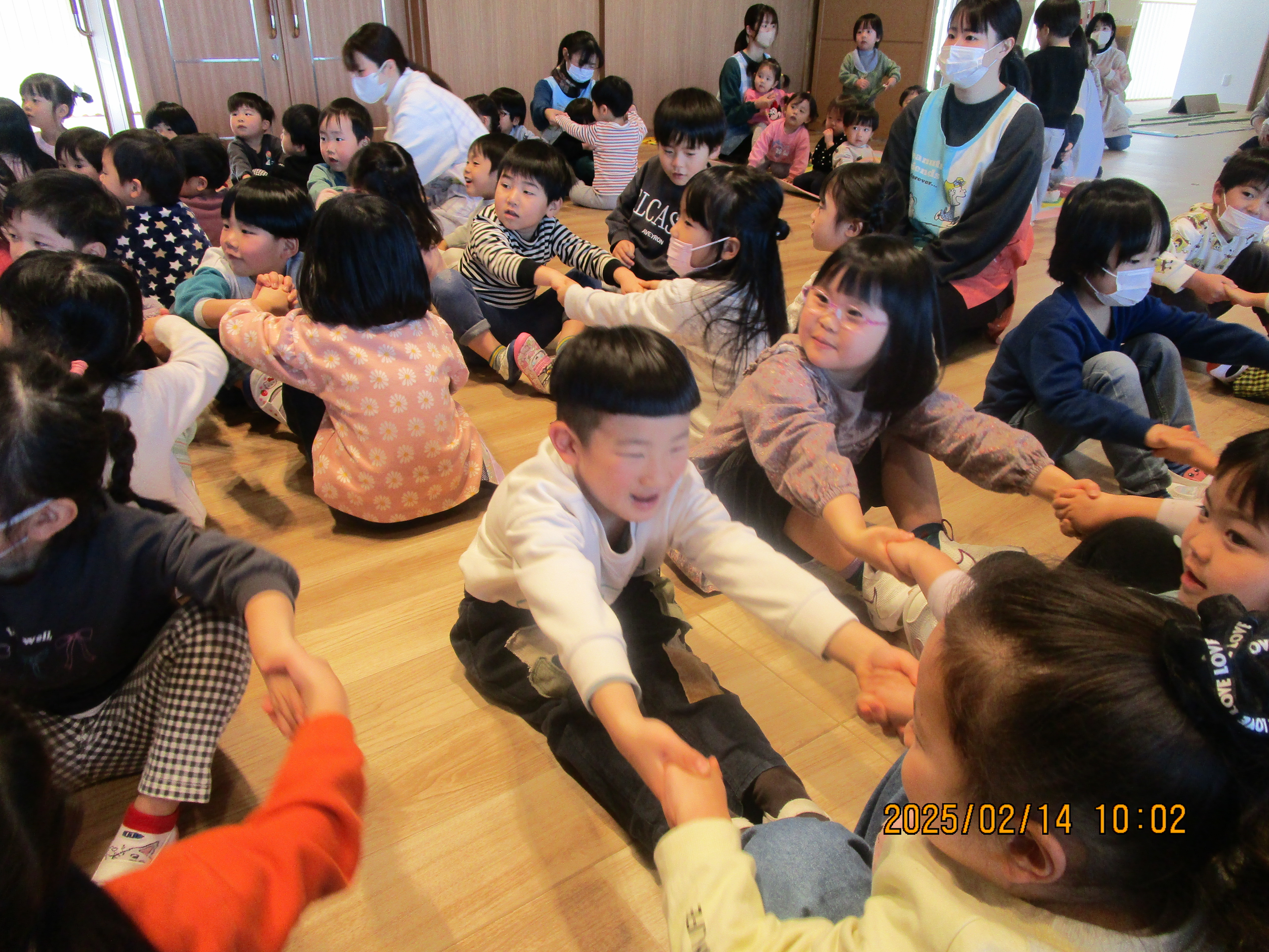 リズミカルな楽しい歌に合わせてお友達と手を繋いで楽しんでいましたよ。