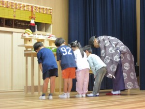 宮司さんの言葉を真剣に聞いている子どもたちです。