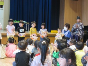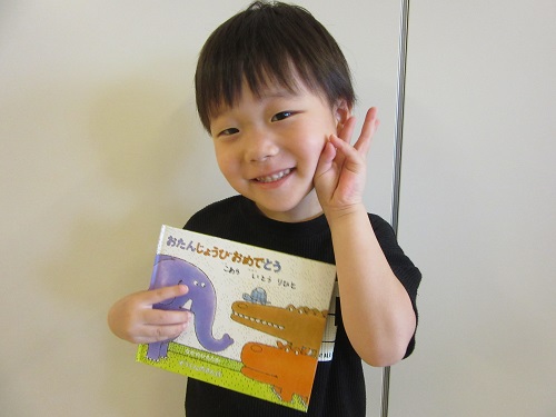 みんなに「ハッピーバースデー」を歌ってもらい、そしてお誕生カードをもらってにっこり☆