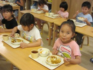 カレーにはどんな野菜が入っているのかな?「にんじん!!」「玉ねぎ~!!」