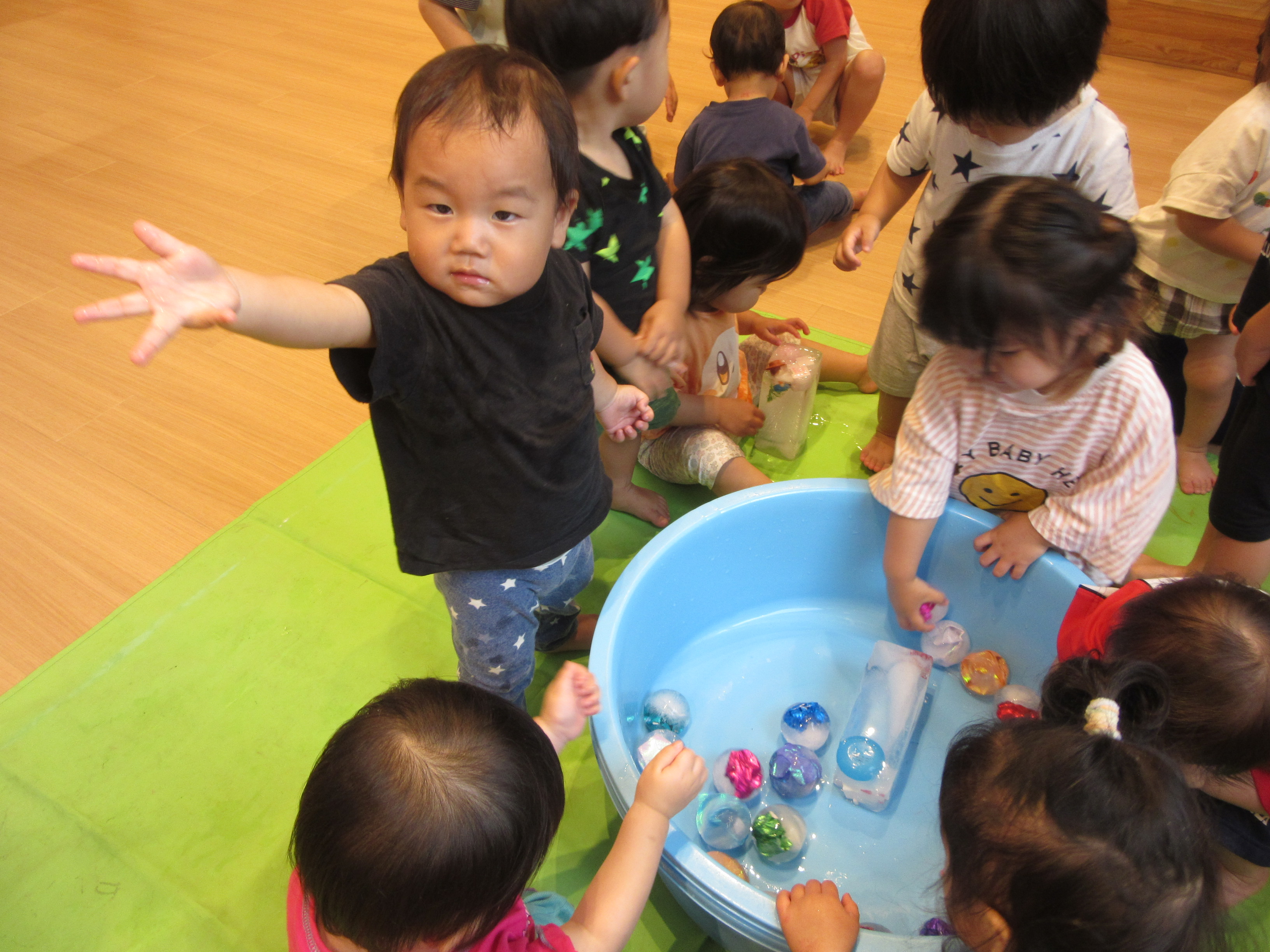 「つめた~い!」 「氷の中におもちゃが入っとるよ☆」