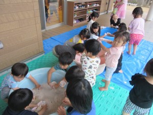 水を使ったいろいろなコーナー遊びを
