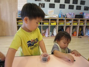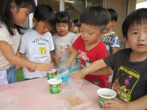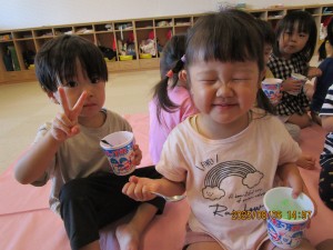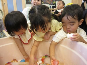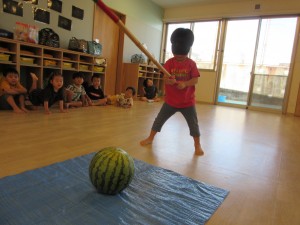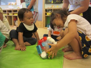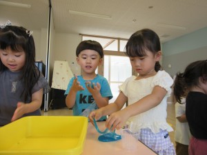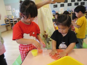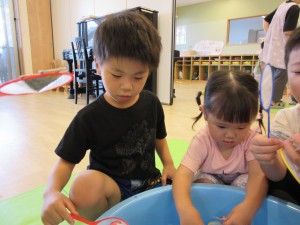 小さい子はお兄さん、お姉さんの真似をしてみたり、