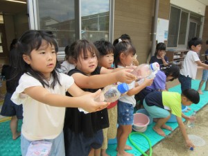 水しぶきをあげながら「キャ~☆」とはしゃぐ
