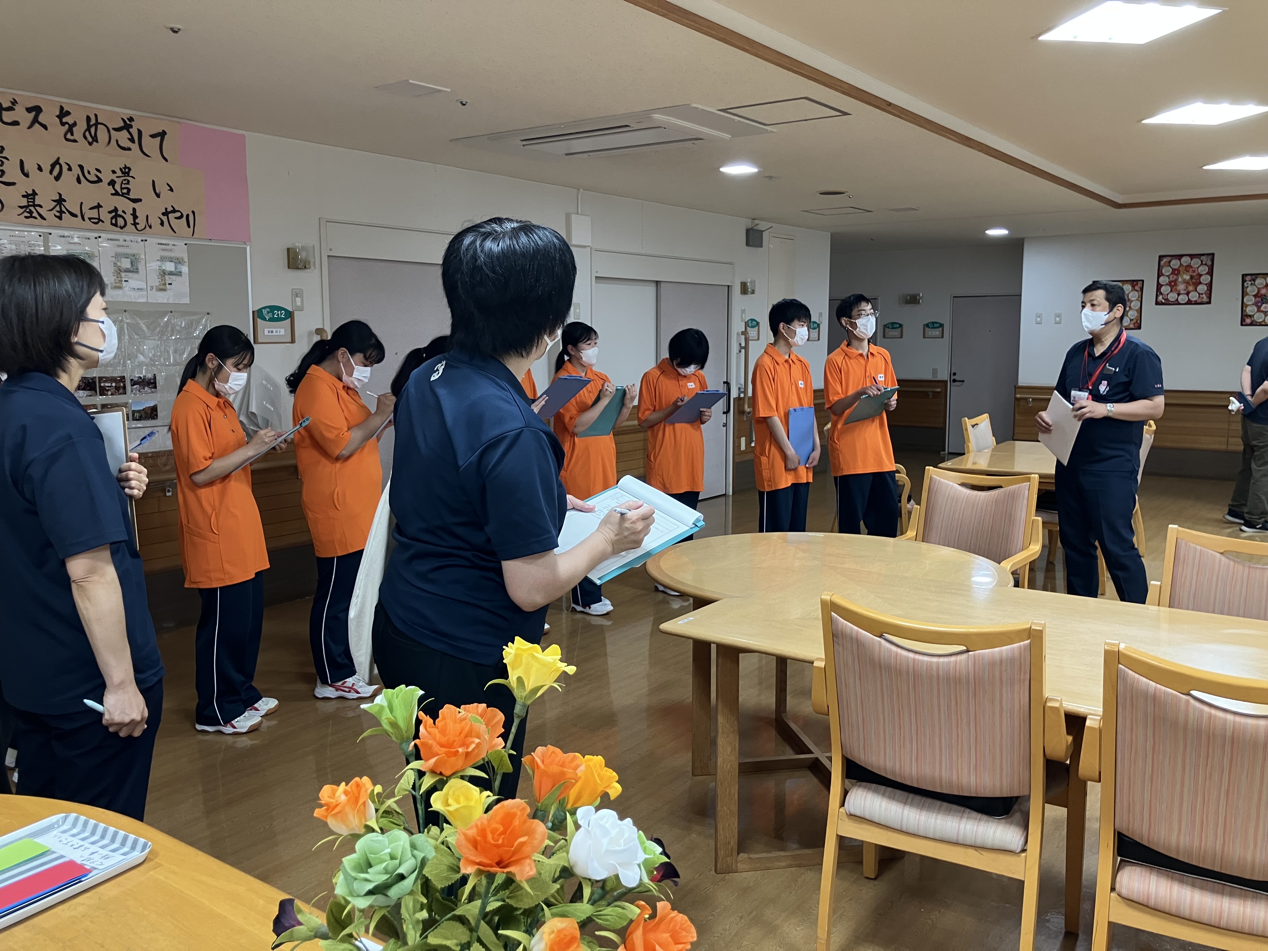 生徒の皆さんは、施設見学、介護体験、研修の間、耳を傾けしっかりメモを取り、真剣に取り組んでくれました!!