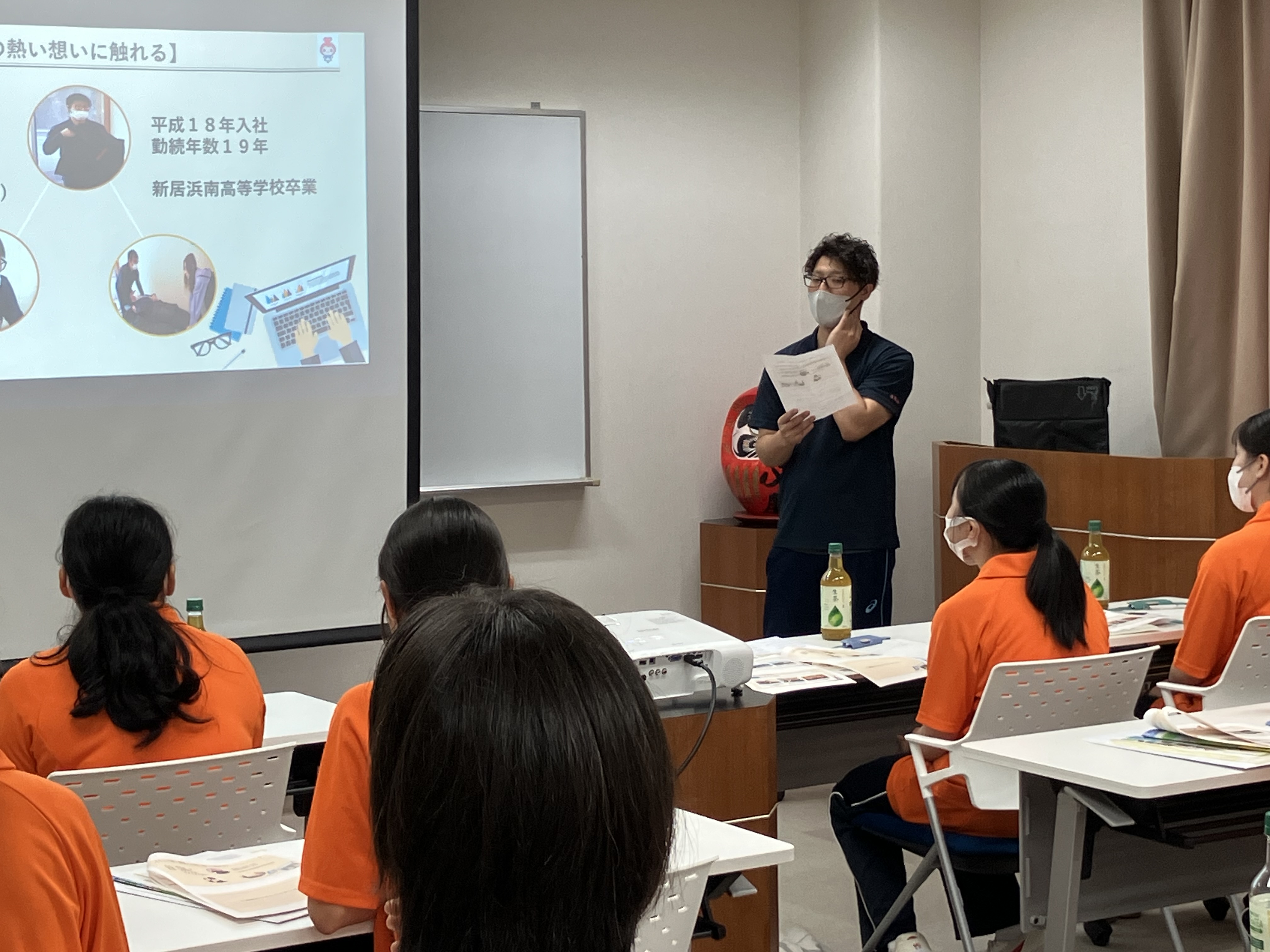 令和7年7月4日(金)みらいの学び地域産業育成事業の一環として、新居浜南高等学校生徒9名、引率の先生3名が総合福祉施設やすらぎの郷に施設訪問してくれました。