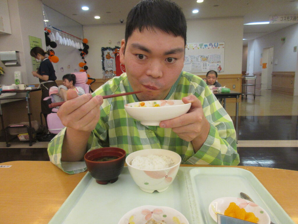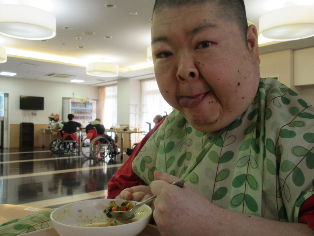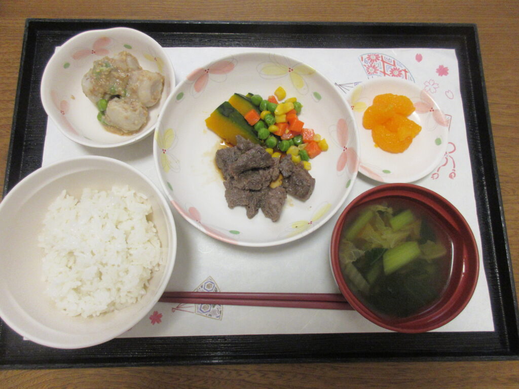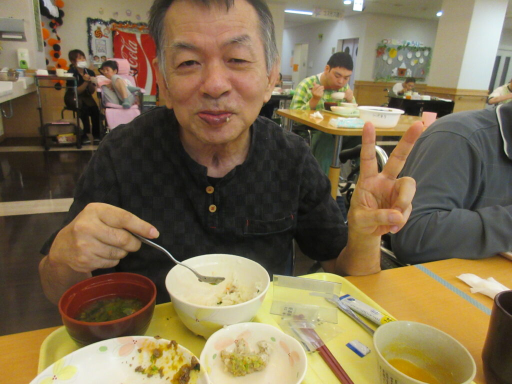 10/10 給食(ステーキの日)2025年10月14日 毎月、週に1回、お刺身、ステーキ、お刺身、選択食・・と週替わりで提供しております。 定期的にハレの日があると思うと待ち遠しいですね。 本日は、「ステーキの日」となります。 きのこエキスにつけて柔らかくし、さらに、食べやすいように一口サイズ、薄切りにしております。 付け合わせもたくさんあるので、お腹いっぱいになりそうですね。 来週も楽しみですね。 施設情報愛媛県東温市にある障害者支援施設三恵ホーム明るく楽しく元気よくみんないきいき三恵ホーム障害者支援施設 三恵ホーム〒791-0311 愛媛県東温市則之内甲2819TEL:089-966-3555 FAX:089-966-3571三恵ホームWEBサイト最近の記事2025年10月14日10/11 外気浴(3階)障害者支援施設 三恵ホーム2025年10月10日10/10 作品制作(2階)障害者支援施設 三恵ホーム2025年10月8日10/8 カラオケ(3階)障害者支援施設 三恵ホーム2025年10月7日10/4 作品制作(2階)障害者支援施設 三恵ホーム2025年9月23日9/23 魚釣りゲーム(3階)障害者支援施設 三恵ホーム2025年9月23日9/23 風船バレー(2階)障害者支援施設 三恵ホーム三恵ホームの記事一覧