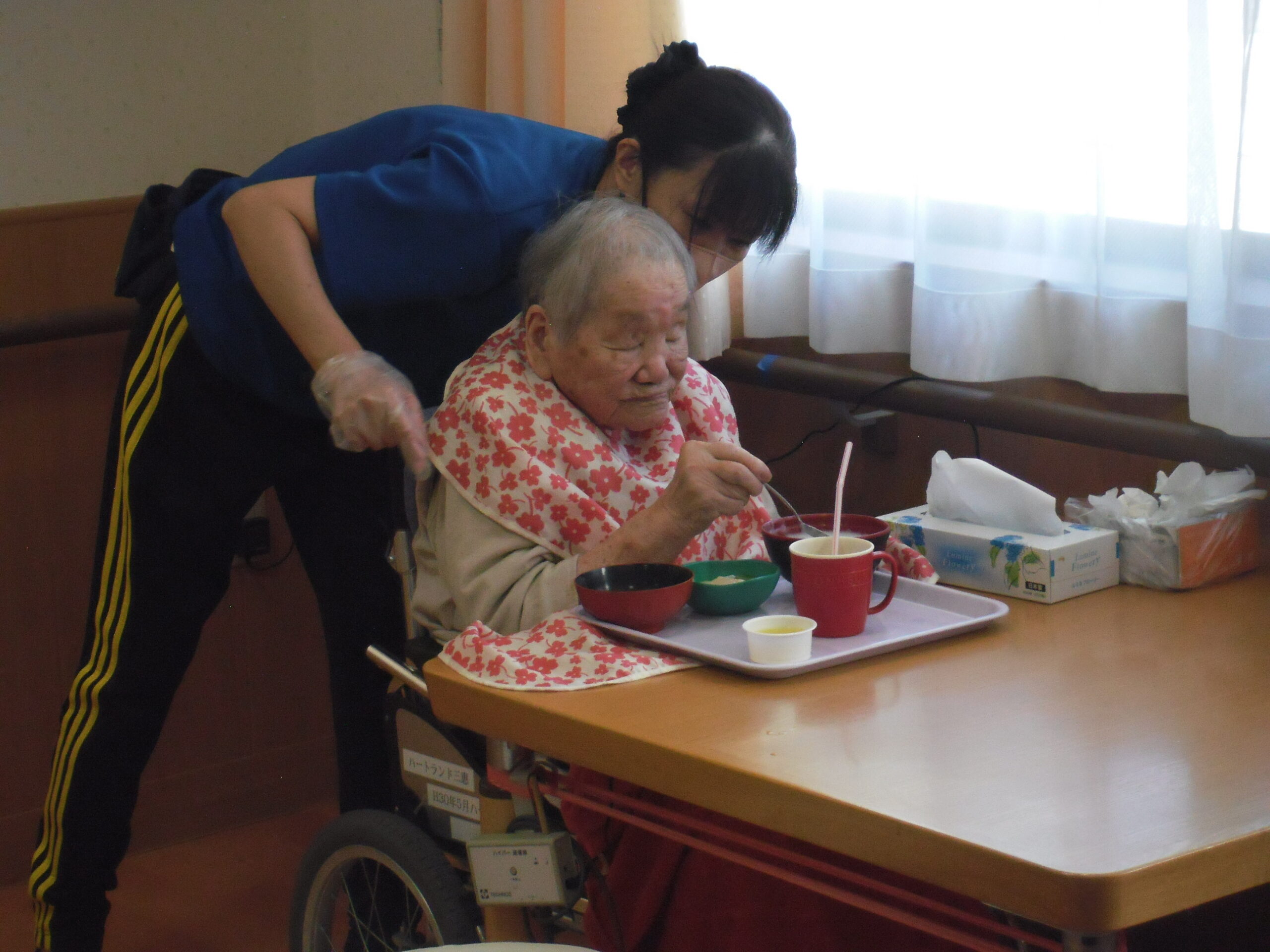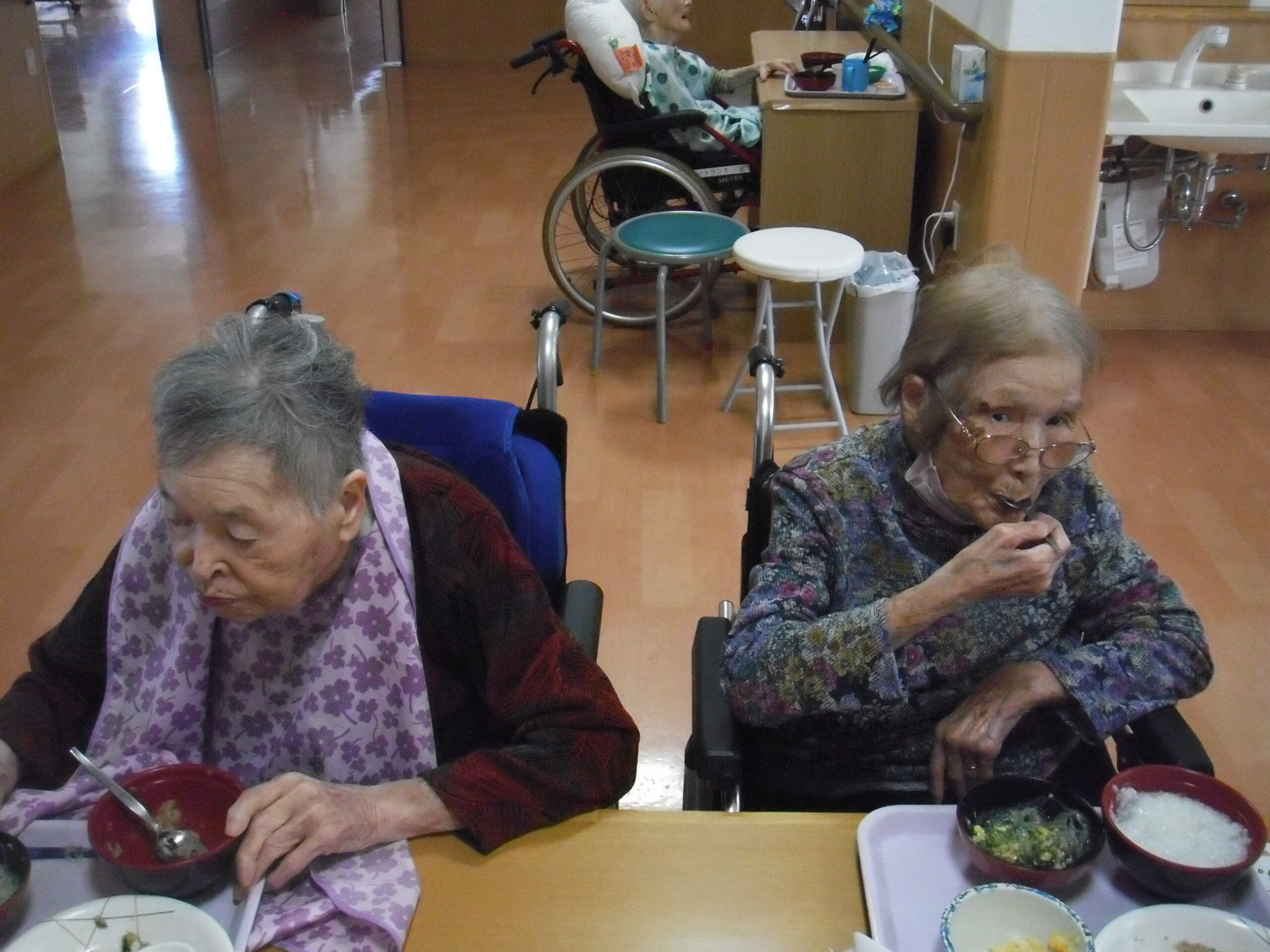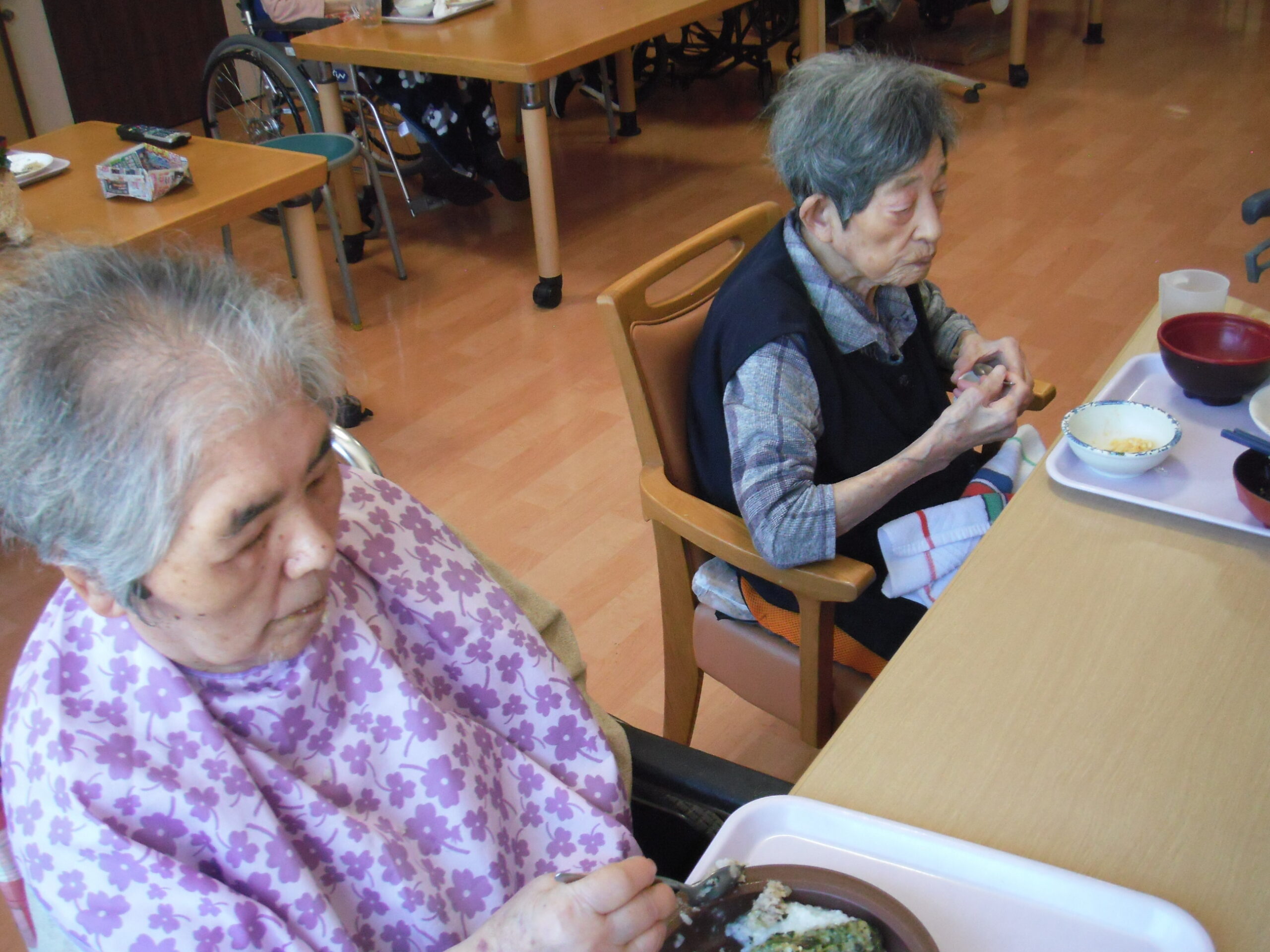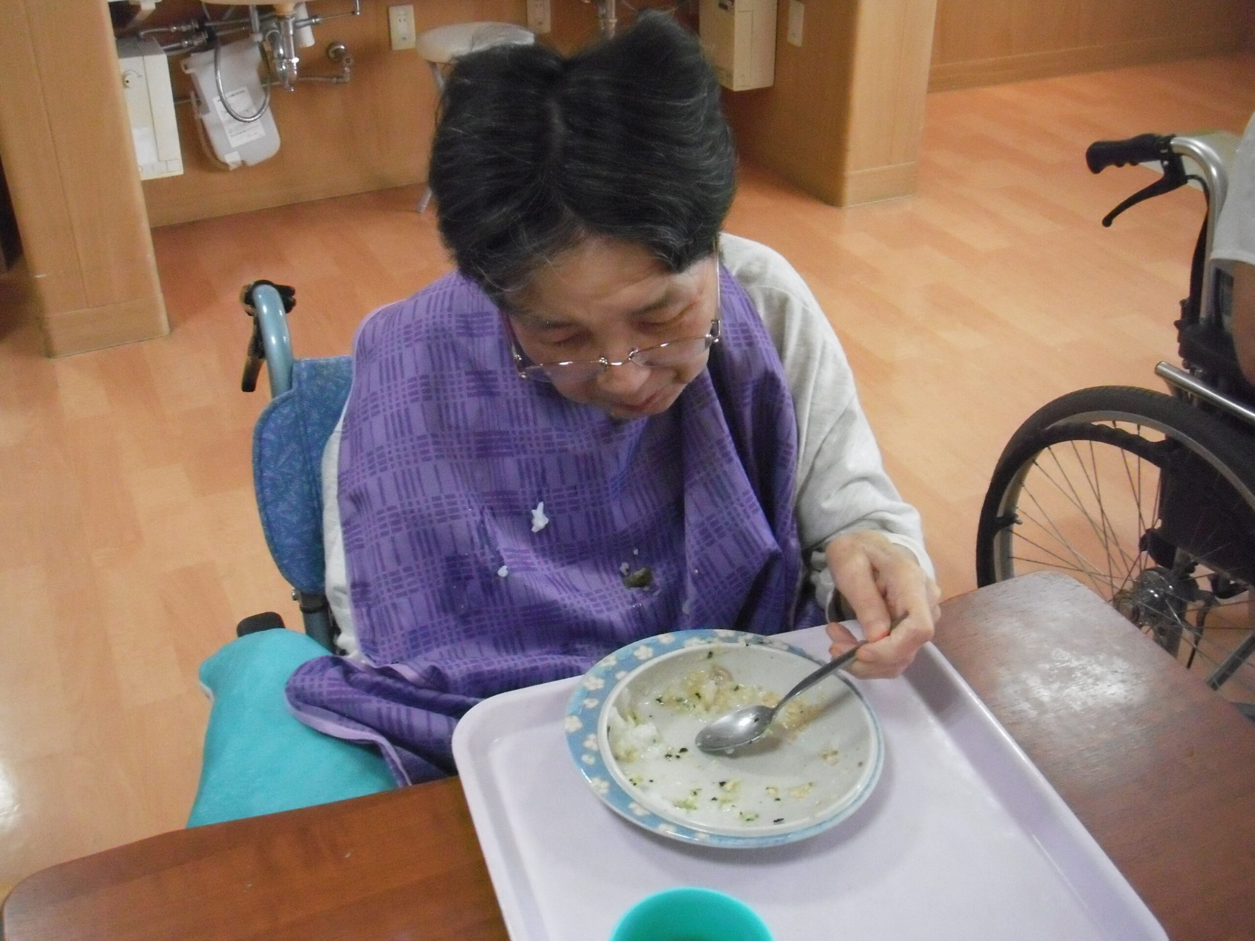 利用者様一人一人に合った食事の形態や介助方法を行い、おいしく食べていただいています(^O^)