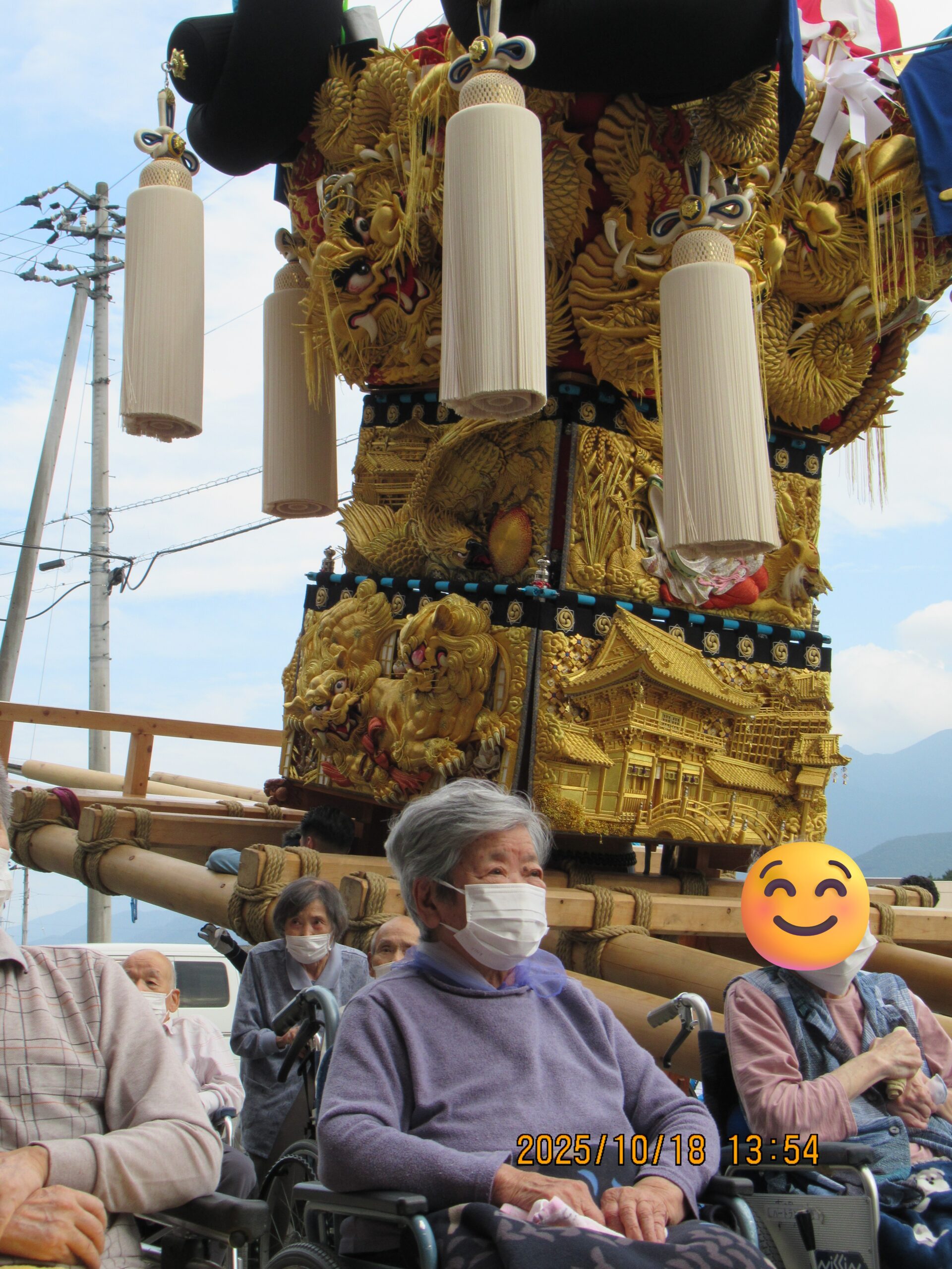 岸之下太鼓台!2025年10月24日 岸之下太鼓台がハートランドを訪問してくださいました!岸之下太鼓台は、今年開催された大阪・関西万博に萩生東太鼓台、口屋太鼓台と共に出場され、9月27日には大阪市のイズミヤで差し上げイベントにて出場する大活躍の太鼓台です!毎年お祭りにはハートランドを訪問してくださり、ご利用者の皆様に大迫力の太鼓を見せに来てくださいます!錦糸、銀糸の綺麗な飾りと大迫力の笛と太鼓の音!!みなさん岸之下太鼓台を観て聴いて太鼓台の迫力に太鼓祭りを体感されていました(((o(*゚▽゚*)o))) 施設情報愛媛県新居浜市にある介護老人福祉施設ハートランド三恵手作りの愛あるホームで咲かそう、みんなの笑顔介護老人福祉施設 ハートランド三恵〒792-0050 愛媛県新居浜市萩生17TEL:0897-40-0006 FAX:0897-40-0007ハートランド三恵WEBサイト最近の記事2025年12月13日〖南館3階〗忘年会①介護老人福祉施設 ハートランド三恵2025年12月9日〖南館3階〗ゆかいな仲間たち♬介護老人福祉施設 ハートランド三恵2025年12月8日〖南館3階〗夕方ですが介護老人福祉施設 ハートランド三恵2025年12月5日〖南館3階〗クレープ介護老人福祉施設 ハートランド三恵2025年11月29日〖南館3階〗百寿・喜寿介護老人福祉施設 ハートランド三恵2025年11月25日〖南館3階〗秋の味覚介護老人福祉施設 ハートランド三恵ハートランド三恵の記事一覧
