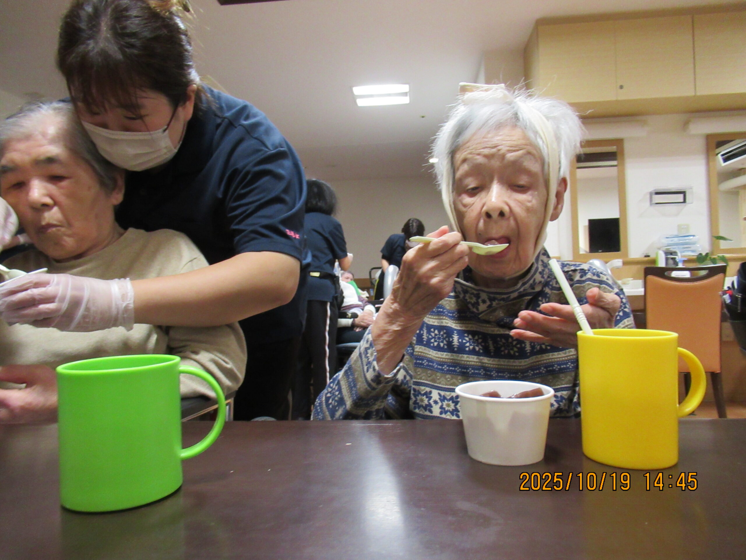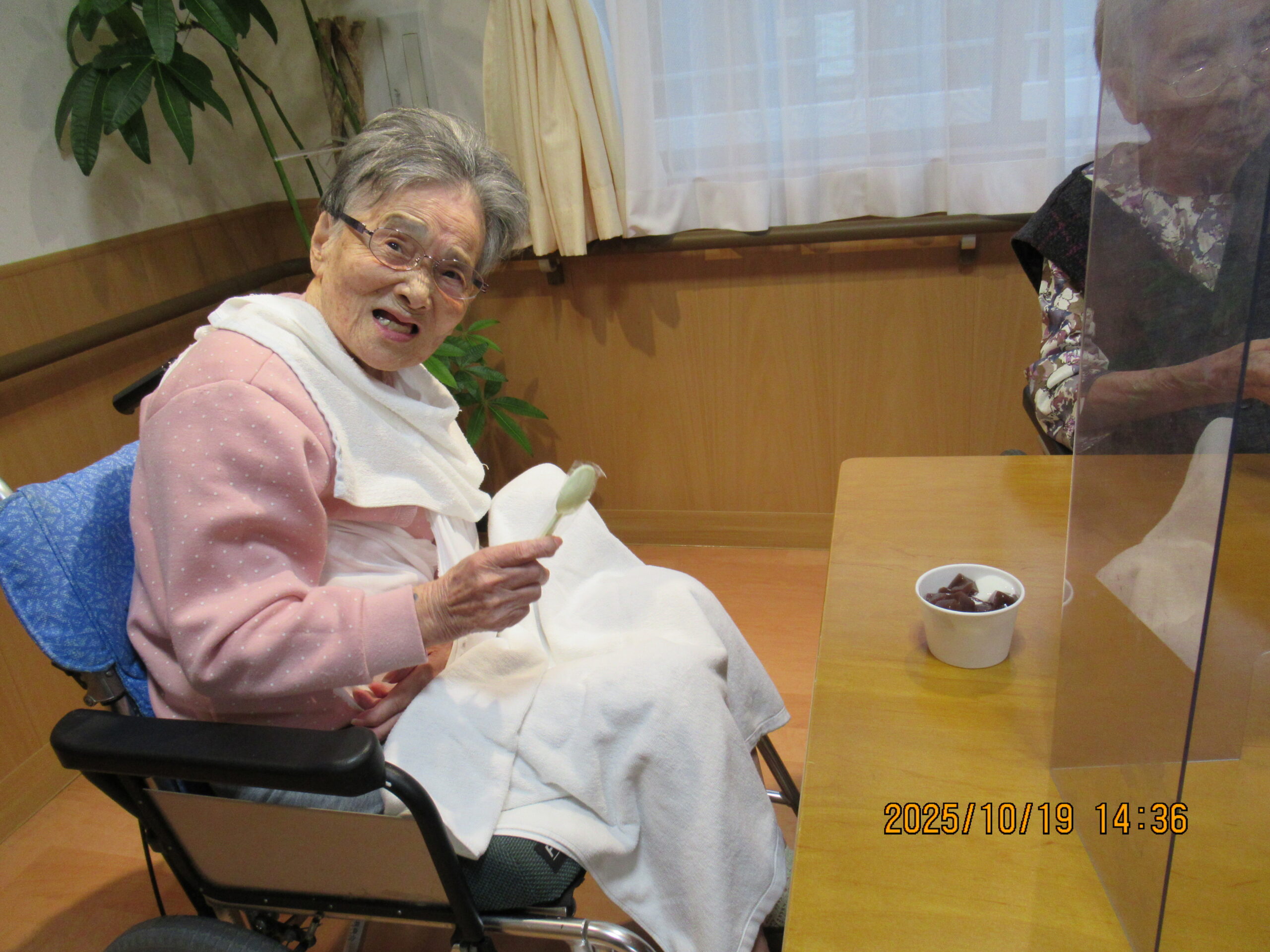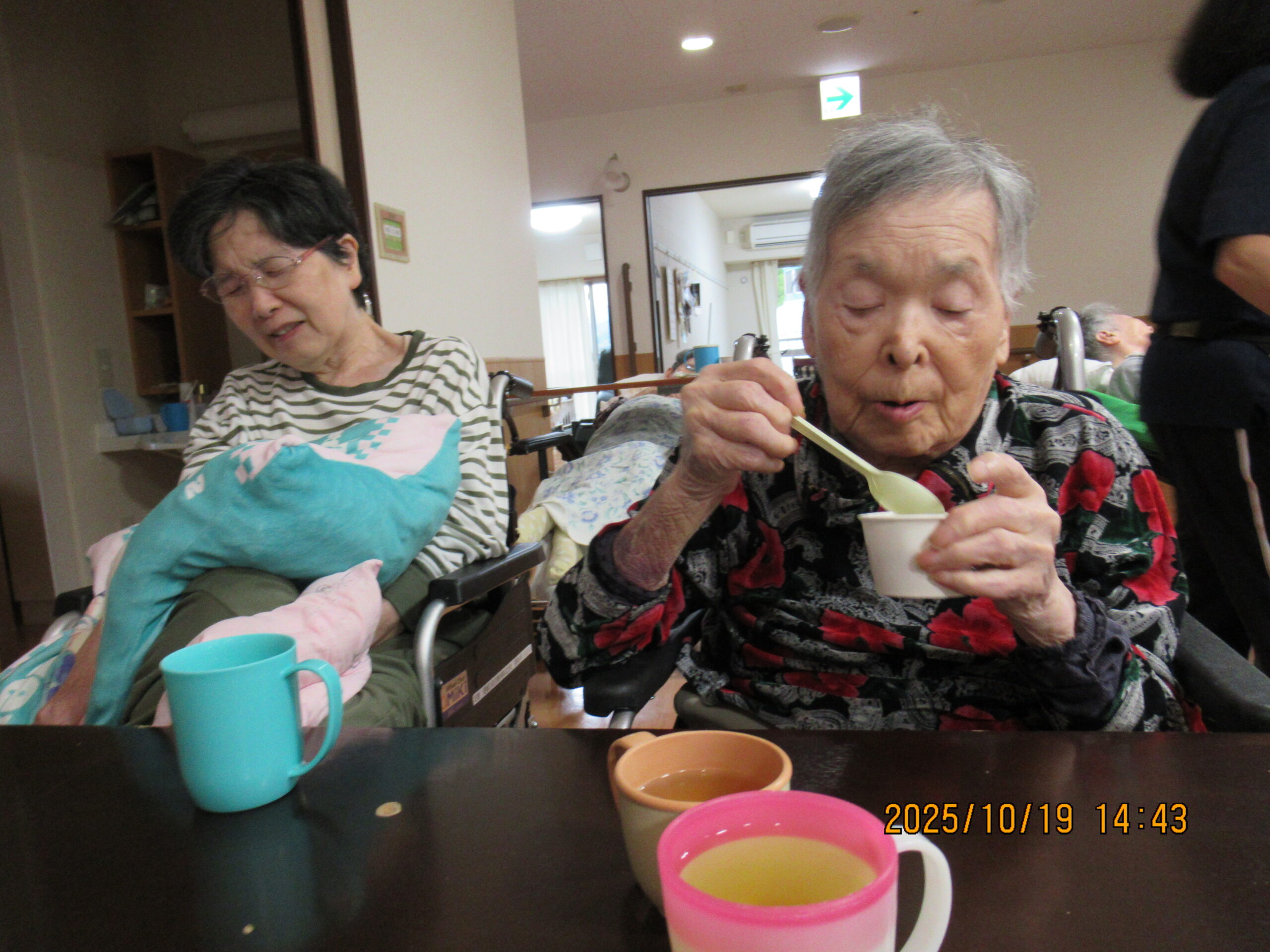 みなさんと一緒に食べるはずがとてもおいしそうなデザートにフライングをしてしまう利用者様も(笑)