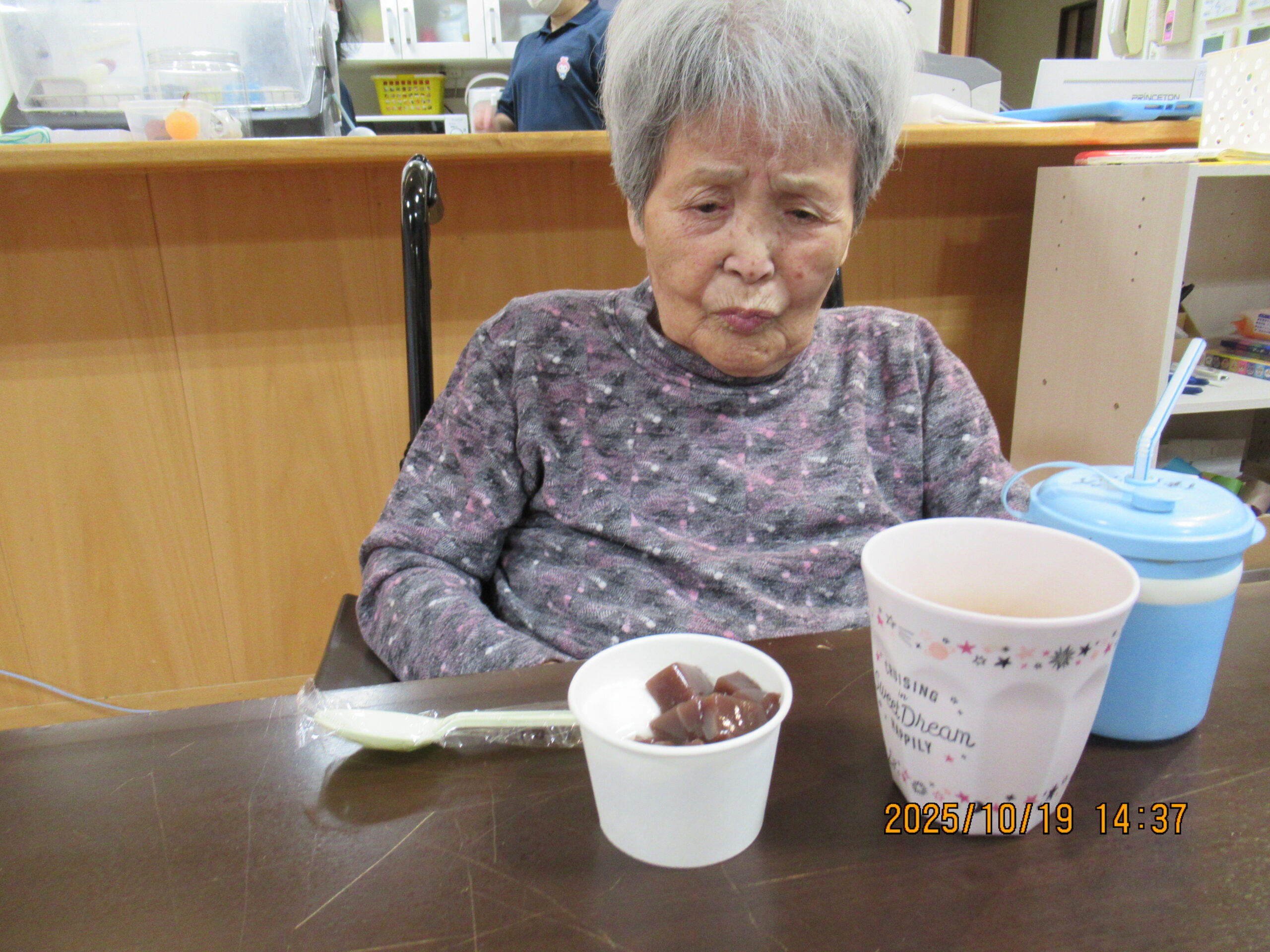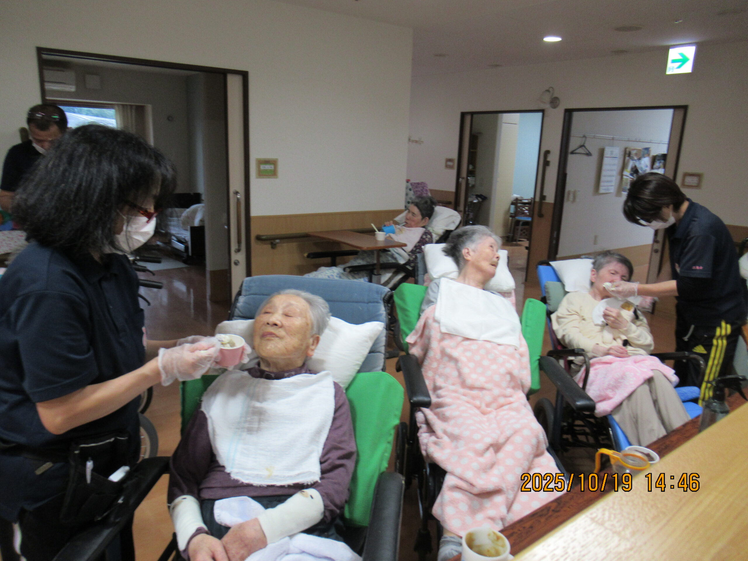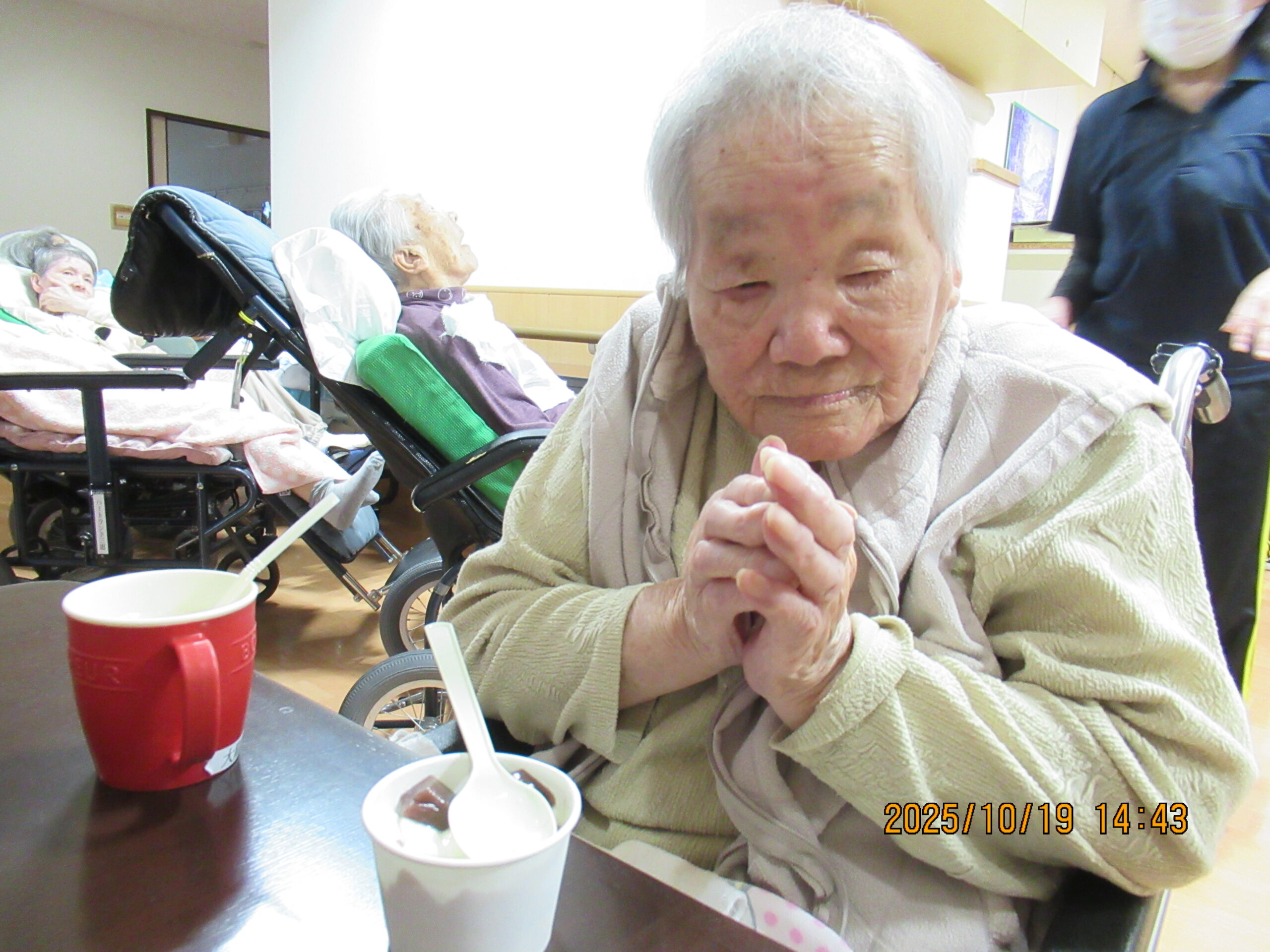 みなさんと一緒に食べるはずがとてもおいしそうなデザートにフライングをしてしまう利用者様も(笑)