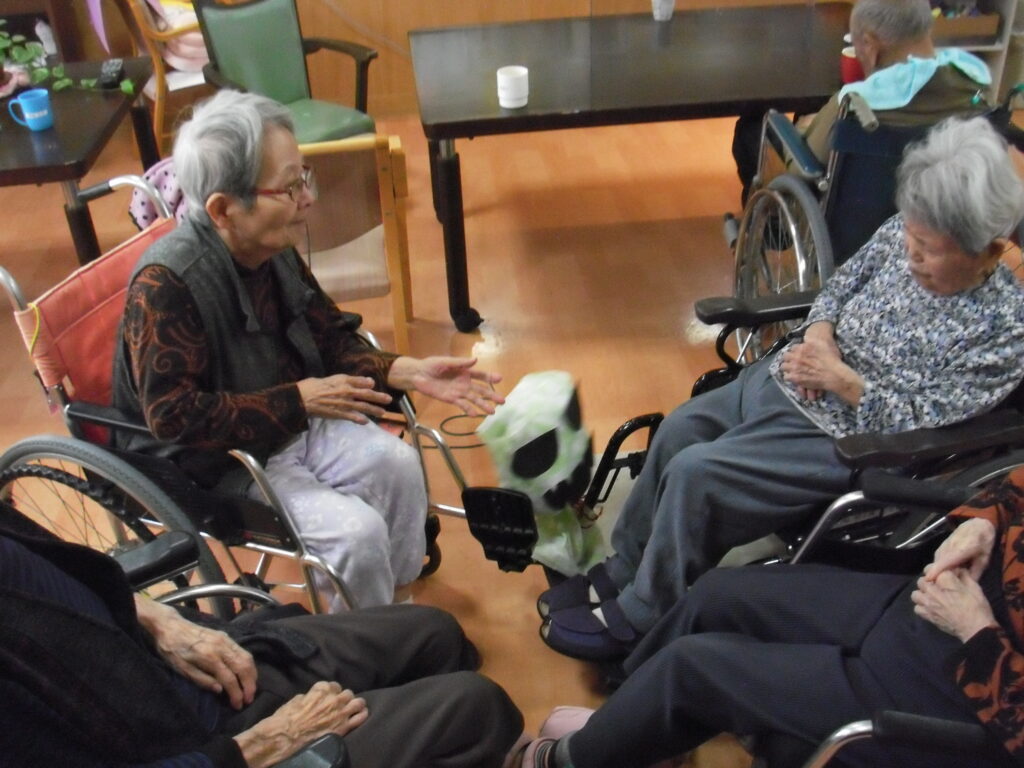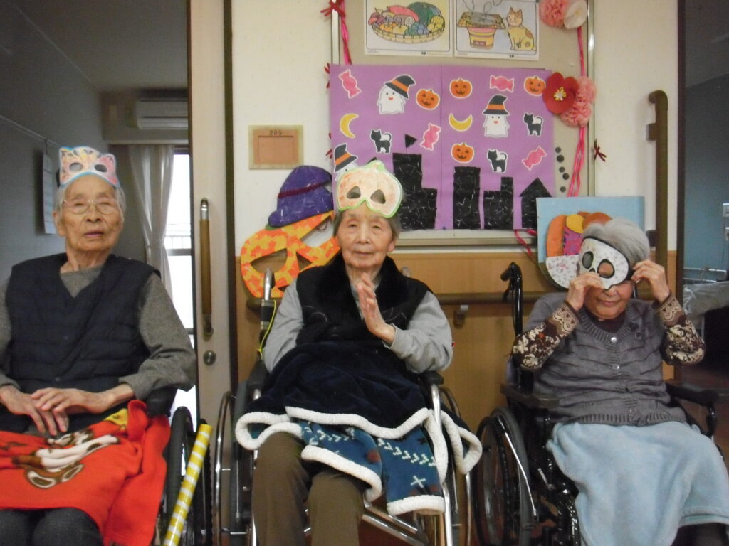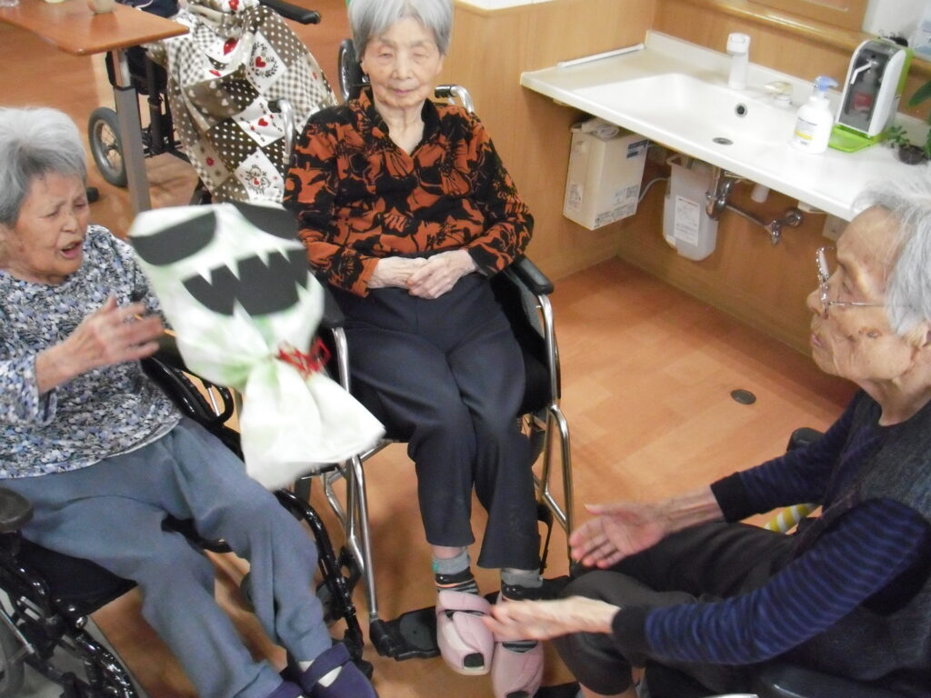 〖南館2階〗ハッピーハロウィン2025年11月1日 トリックオアトリート♪ ハロウィンということで利用者の皆様で、仮装のお面や飾りを作りちょっとした仮装大会を行いました。 ハロウィンの事はよくわからなくとも、皆さま互いの仮装を見ては楽しそうに大笑い。 そのまま少し散歩をしてみたり、にぎやかなひと時となりました。 体操でおばけでキャッチボールをしてみたり、 お菓子はもらえないけど、笑いをもらえた一日でした。 施設情報愛媛県新居浜市にある介護老人福祉施設ハートランド三恵手作りの愛あるホームで咲かそう、みんなの笑顔介護老人福祉施設 ハートランド三恵〒792-0050 愛媛県新居浜市萩生17TEL:0897-40-0006 FAX:0897-40-0007ハートランド三恵WEBサイト最近の記事2025年12月13日〖南館3階〗忘年会①介護老人福祉施設 ハートランド三恵2025年12月9日〖南館3階〗ゆかいな仲間たち♬介護老人福祉施設 ハートランド三恵2025年12月8日〖南館3階〗夕方ですが介護老人福祉施設 ハートランド三恵2025年12月5日〖南館3階〗クレープ介護老人福祉施設 ハートランド三恵2025年11月29日〖南館3階〗百寿・喜寿介護老人福祉施設 ハートランド三恵2025年11月25日〖南館3階〗秋の味覚介護老人福祉施設 ハートランド三恵ハートランド三恵の記事一覧