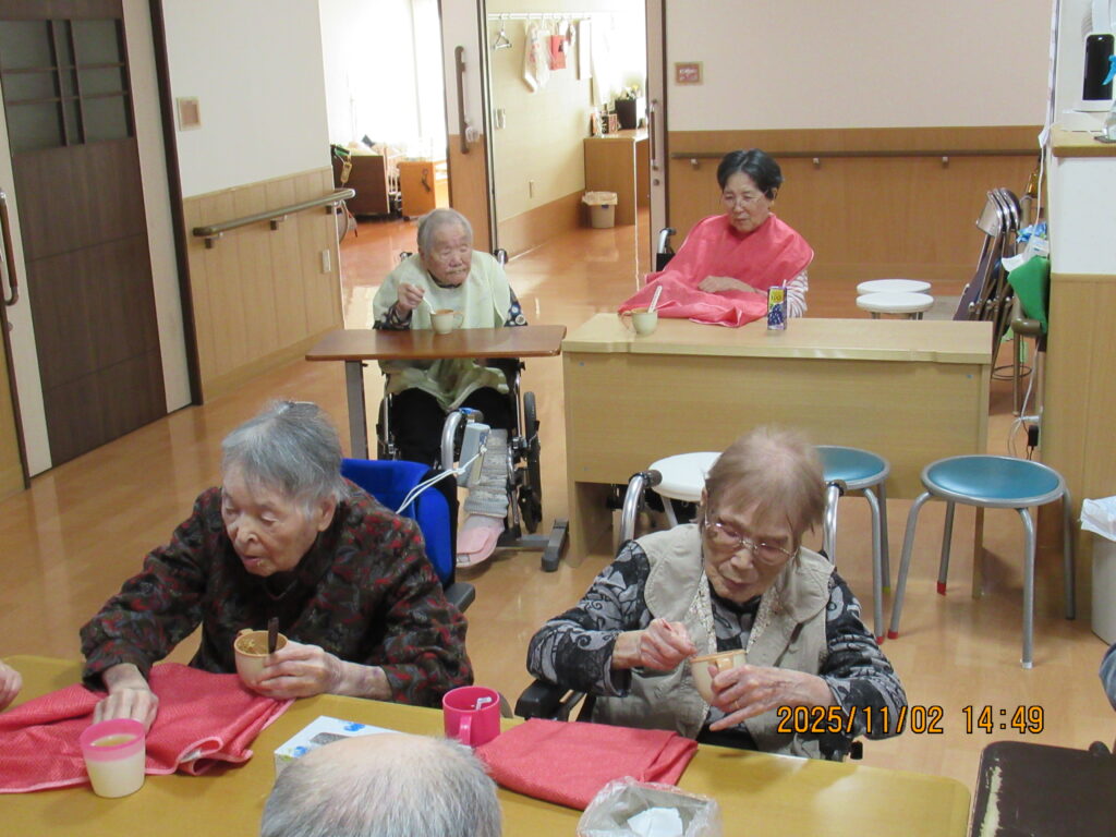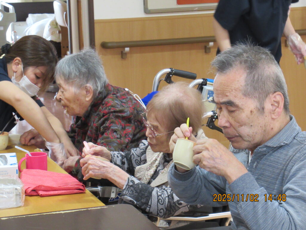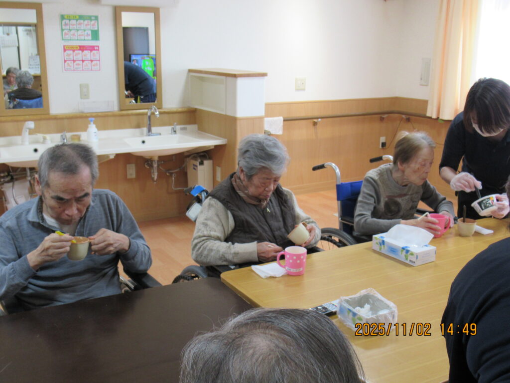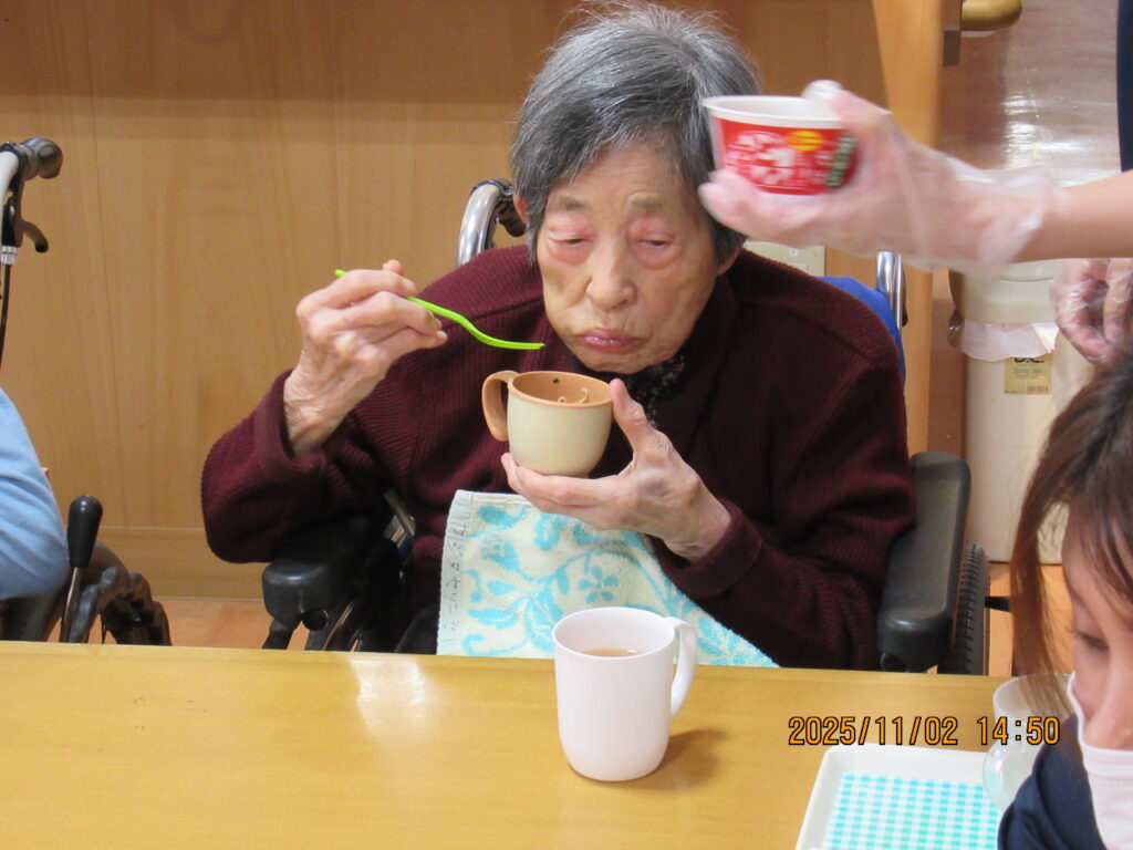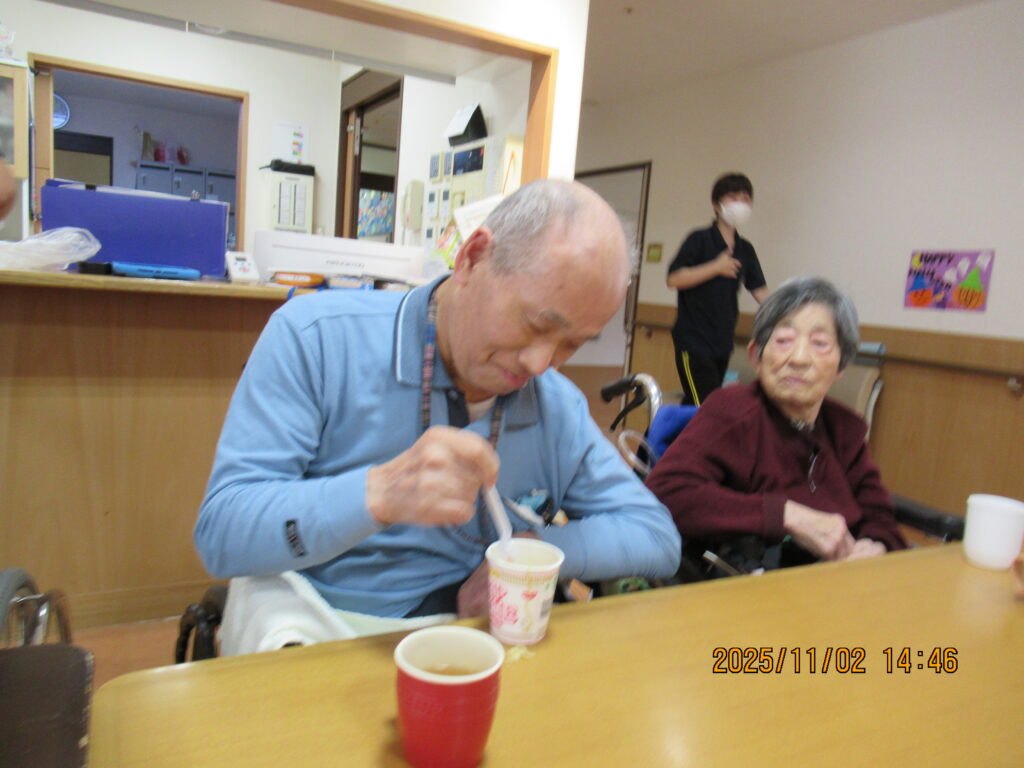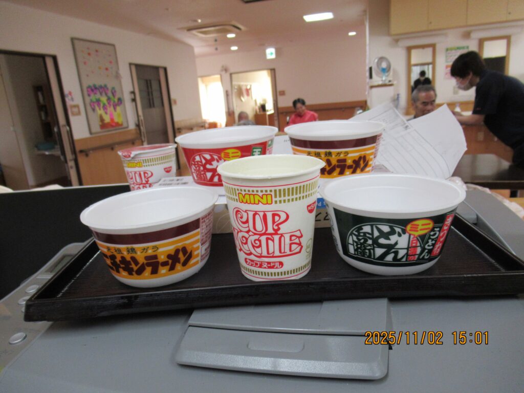 〖南館3階〗カップ麺を食べよう!2025年11月4日 カップ麺を利用者のみなさんに食べていただきました~(*’▽’)どん兵衛のうどんとそば、カップヌードルにチキンラーメンの4種類(#^^#)日清のミニカップ麺を用意してみなさんにそれぞれ食べたいカップ麺を選んで頂きました! 普段はカップラーメンを食べる事がないので「おいしい!」とみなさん喜んで召し上がっていましたよ~おかわりされた方もいて喜ばれていました! 施設情報愛媛県新居浜市にある介護老人福祉施設ハートランド三恵手作りの愛あるホームで咲かそう、みんなの笑顔介護老人福祉施設 ハートランド三恵〒792-0050 愛媛県新居浜市萩生17TEL:0897-40-0006 FAX:0897-40-0007ハートランド三恵WEBサイト最近の記事2025年12月13日〖南館3階〗忘年会①介護老人福祉施設 ハートランド三恵2025年12月9日〖南館3階〗ゆかいな仲間たち♬介護老人福祉施設 ハートランド三恵2025年12月8日〖南館3階〗夕方ですが介護老人福祉施設 ハートランド三恵2025年12月5日〖南館3階〗クレープ介護老人福祉施設 ハートランド三恵2025年11月29日〖南館3階〗百寿・喜寿介護老人福祉施設 ハートランド三恵2025年11月25日〖南館3階〗秋の味覚介護老人福祉施設 ハートランド三恵ハートランド三恵の記事一覧
