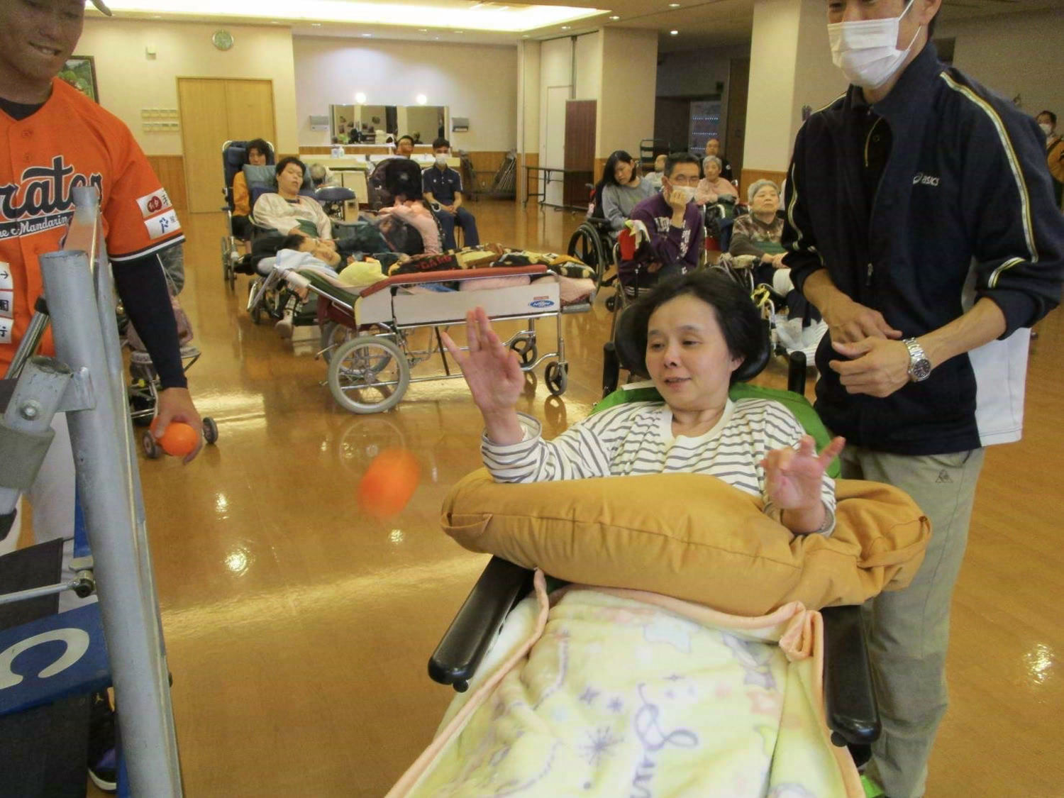 本日はマンダリンパイレーツの皆さんをお招きして、ストラックアウトに挑戦です!選手直々に手ほどきをしてもらうと見事に命中!このままスカウトされちゃうかも!?