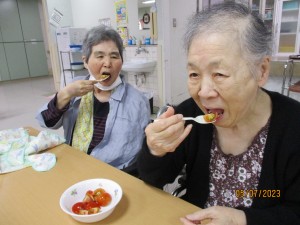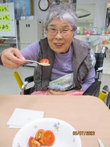 おいしくいただきました2023年7月6日いつも三恵荘ブログをご覧いただきありがとうございます(●´ω`●) 2階のトマトです。 美味しそう( *´艸`) ということで、植えた皆さんで食べちゃいました(^u^) みなさん美味しそうに食べてますね~ ( *´艸`) 合計で7個収穫できました。 施設情報愛媛県新居浜市にある介護老人保健施設三恵荘拡げよう繋がり深まる信頼、ともに歩む喜び・思いやり。温かい心でスマイルケア介護老人保健施設 リハビリステーション三恵荘 〒792-0050 愛媛県新居浜市萩生河の北67-60TEL:0897-40-3366 FAX:0897-40-3360三恵荘WEBサイト最近の記事2025年10月22日観月会☆リハビリステーション 三恵荘2025年10月7日指定居宅介護支援事業所 三恵 ケアマネ便りリハビリステーション 三恵荘2025年9月24日敬老会のお祝いリハビリステーション 三恵荘2025年9月17日敬老の日行事食☆リハビリステーション 三恵荘2025年9月11日長寿のお祝いリハビリステーション 三恵荘2025年9月3日指定居宅介護支援事業所 三恵 ケアマネ便りリハビリステーション 三恵荘三恵荘の記事一覧