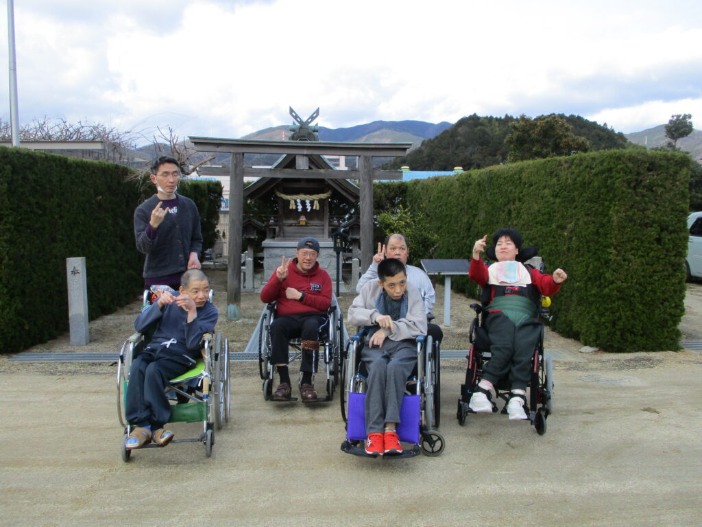 1/1初詣(2階)2026年1月5日 新年あけましておめでとうございます。蛭子神社に初詣に行き、記念に集合写真を撮りました。皆さんいい表情をしていますね。今年も元気に頑張りましょう! 施設情報愛媛県東温市にある障害者支援施設三恵ホーム明るく楽しく元気よくみんないきいき三恵ホーム障害者支援施設 三恵ホーム〒791-0311 愛媛県東温市則之内甲2819TEL:089-966-3555 FAX:089-966-3571三恵ホームWEBサイト最近の記事2026年1月27日1/27 オセロ将棋(3階)障害者支援施設 三恵ホーム2026年1月24日1/23給食(選択食)障害者支援施設 三恵ホーム2026年1月22日1/22 風船バレー(3階)障害者支援施設 三恵ホーム2026年1月21日1/19 ぬり絵(3階)障害者支援施設 三恵ホーム2026年1月21日1/16給食(まぐろのたたき丼)障害者支援施設 三恵ホーム2026年1月14日1/14 作品制作(2階)障害者支援施設 三恵ホーム三恵ホームの記事一覧