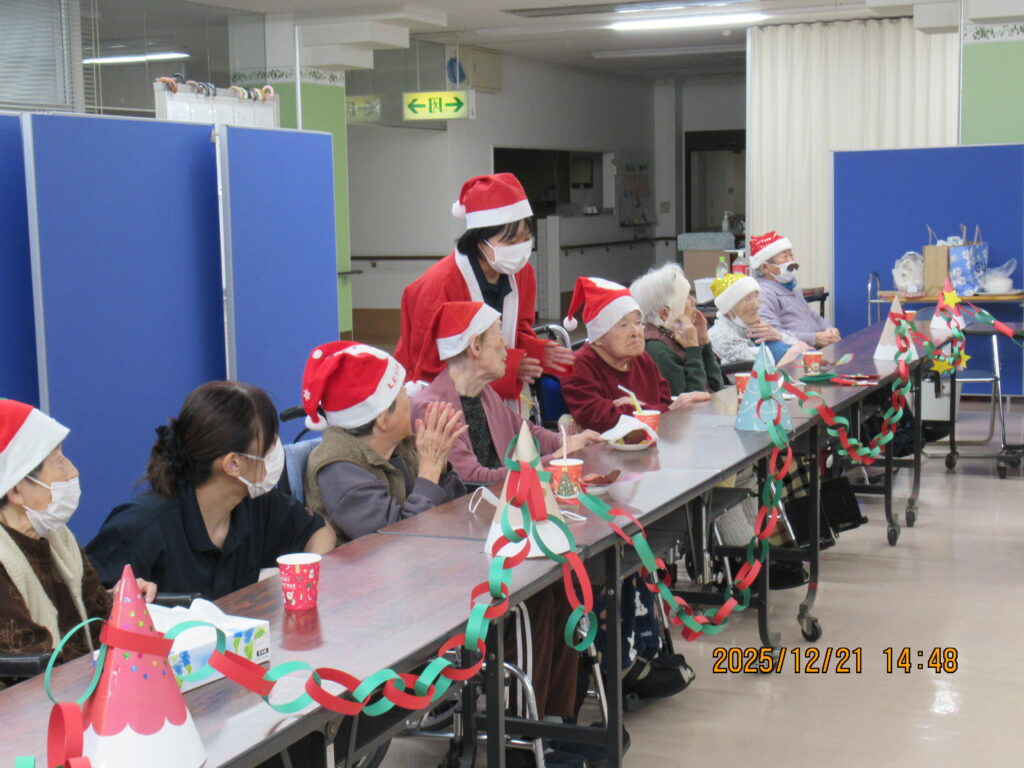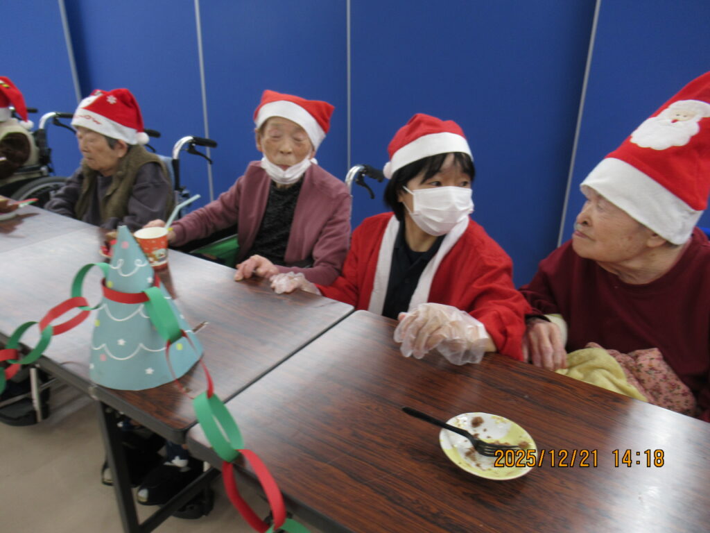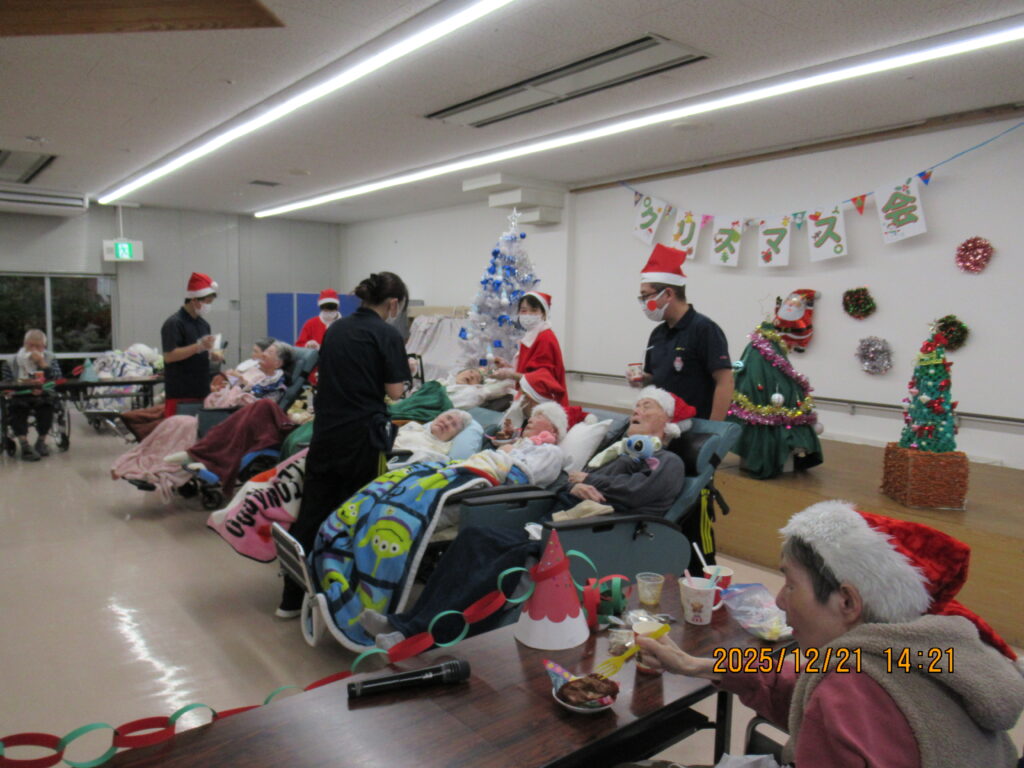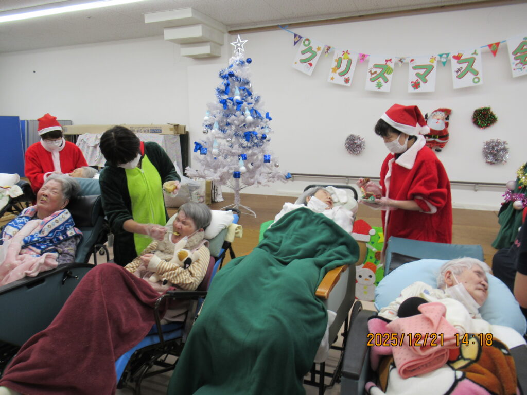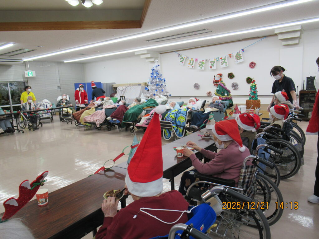 〖南館〗クリスマス会🎄🌟2025年12月25日 南館2階と3階の合同でクリスマス会を開催しました! フロアに全員集合です! サンタの帽子をかっぶってクリスマス会を楽しむ準備万端です(*´∀`) 最初にみんなで甘いショートケーキを喫食(*‘ω‘ *)♬おいしそうに召し上がっていますね~ クリスマスプレゼントをもらってみなさん大喜び(^^♪ 2階の職員はハンドベルの演奏を🔔 3階の職員は髭ダンスをして盛り上がりました♬«٩(*^∀^*)۶»♬ 施設情報愛媛県新居浜市にある介護老人福祉施設ハートランド三恵手作りの愛あるホームで咲かそう、みんなの笑顔介護老人福祉施設 ハートランド三恵〒792-0050 愛媛県新居浜市萩生17TEL:0897-40-0006 FAX:0897-40-0007ハートランド三恵WEBサイト最近の記事2025年12月28日ちょっとオシャレに介護老人福祉施設 ハートランド三恵2025年12月28日【北館】クリスマス会介護老人福祉施設 ハートランド三恵2025年12月26日【デイ】✨忘年会✨介護老人福祉施設 ハートランド三恵2025年12月24日〖南館3階〗忘年会 おまけ介護老人福祉施設 ハートランド三恵2025年12月20日〖南館3階〗忘年会③介護老人福祉施設 ハートランド三恵2025年12月18日〖南館3階〗忘年会②介護老人福祉施設 ハートランド三恵ハートランド三恵の記事一覧