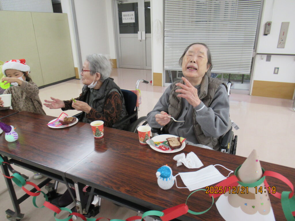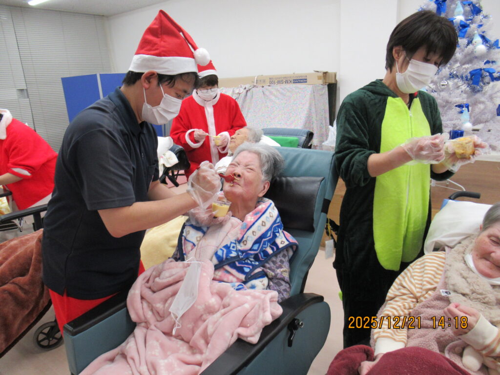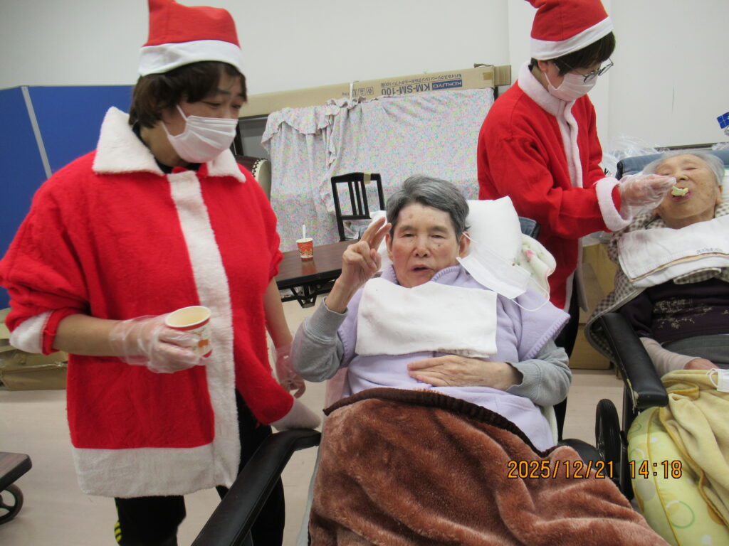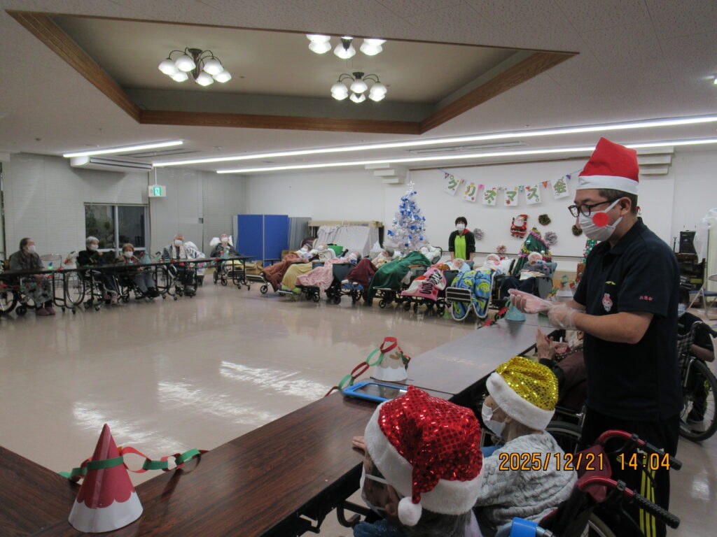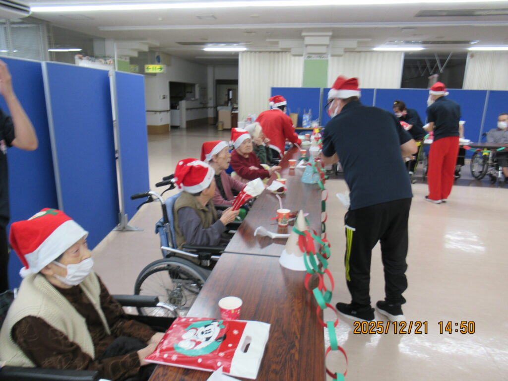 〖南館〗クリスマス会🎄🌟2025年12月25日 南館2階と3階の合同でクリスマス会を開催しました! フロアに全員集合です! サンタの帽子をかっぶってクリスマス会を楽しむ準備万端です(*´∀`) 最初にみんなで甘いショートケーキを喫食(*‘ω‘ *)♬おいしそうに召し上がっていますね~ クリスマスプレゼントをもらってみなさん大喜び(^^♪ 2階の職員はハンドベルの演奏を🔔 3階の職員は髭ダンスをして盛り上がりました♬«٩(*^∀^*)۶»♬ 施設情報愛媛県新居浜市にある介護老人福祉施設ハートランド三恵手作りの愛あるホームで咲かそう、みんなの笑顔介護老人福祉施設 ハートランド三恵〒792-0050 愛媛県新居浜市萩生17TEL:0897-40-0006 FAX:0897-40-0007ハートランド三恵WEBサイト最近の記事2025年12月28日ちょっとオシャレに介護老人福祉施設 ハートランド三恵2025年12月28日【北館】クリスマス会介護老人福祉施設 ハートランド三恵2025年12月26日【デイ】✨忘年会✨介護老人福祉施設 ハートランド三恵2025年12月24日〖南館3階〗忘年会 おまけ介護老人福祉施設 ハートランド三恵2025年12月20日〖南館3階〗忘年会③介護老人福祉施設 ハートランド三恵2025年12月18日〖南館3階〗忘年会②介護老人福祉施設 ハートランド三恵ハートランド三恵の記事一覧