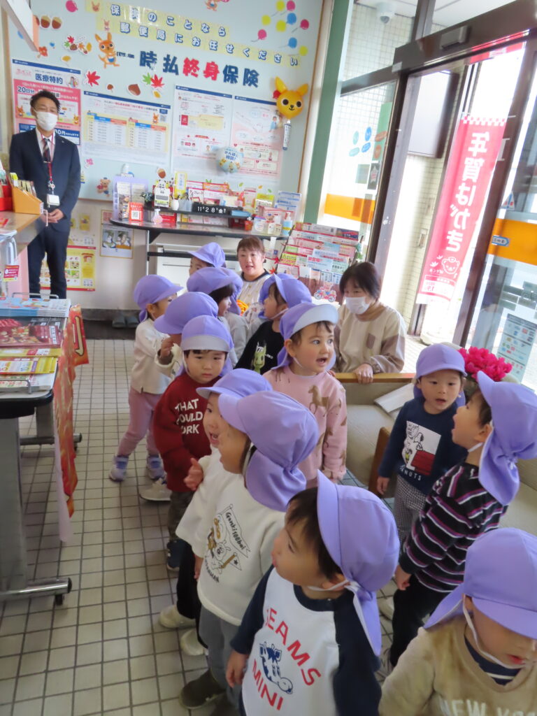 職場訪問~すみれ組編~2025年12月24日 2歳児クラス、すみれ組さんが近くの西原郵便局へ職場訪問に行ってきました。そして、やぎさんゆうびんの歌をプレゼントしてきました(*^_^*)職員さんたちにも、とっても喜んでもらって、子ども達も嬉しそうでした♪お忙しい中、時間を作っていただきありがとうございました(*^_^*) 施設情報愛媛県新居浜市にある児童福祉施設十全保育園げんきな子 がんばる子 やさしい子 楽しく食べるげんきな子児童福祉施設 十全保育園〒792-0011愛媛県新居浜市西原町2-3-12TEL:0897-33-3055 FAX:0897-33-3078十全保育園WEBサイト最近の記事2025年12月26日クリスマス会♪(12月25日)児童福祉施設 十全保育園2025年12月26日クリスマスコンサート♪児童福祉施設 十全保育園2025年12月26日クリスマスケーキを作ったよ♪(12月23日実施)児童福祉施設 十全保育園2025年12月26日今、夢中なの♪児童福祉施設 十全保育園2025年12月26日お箸練習頑張ってます!!児童福祉施設 十全保育園2025年12月26日寒さなんてへっちゃらだいっ!!児童福祉施設 十全保育園十全保育園の記事一覧