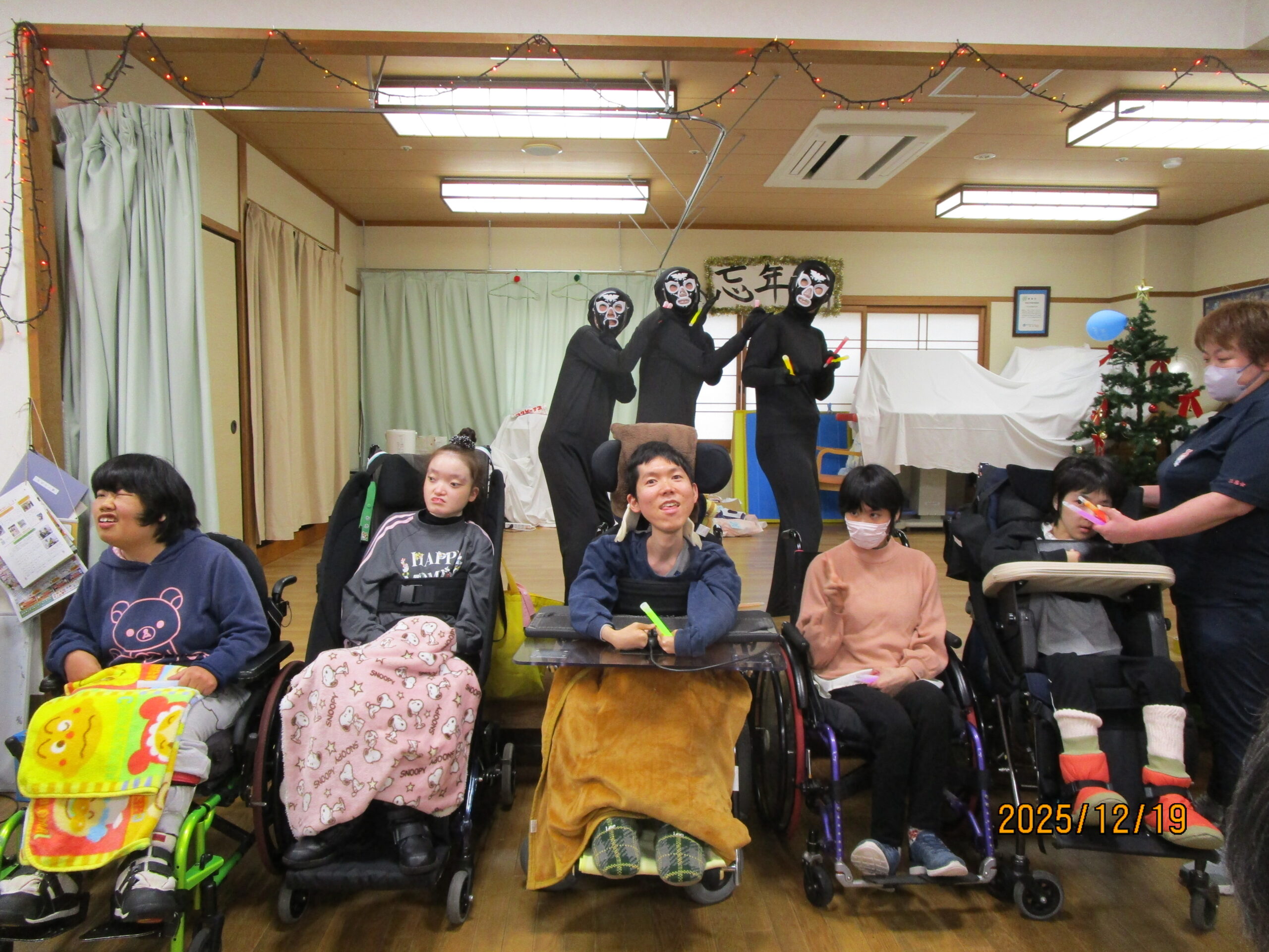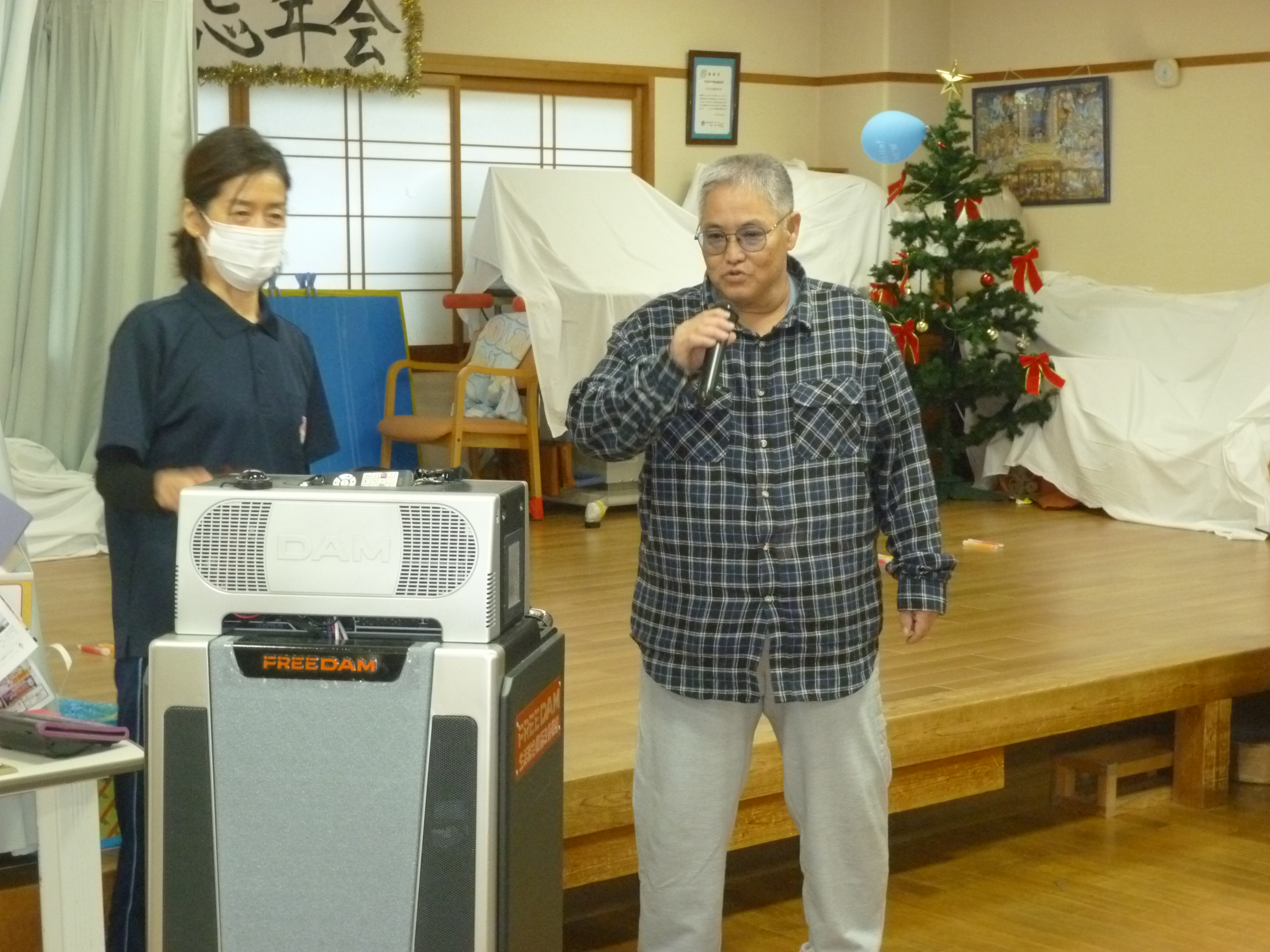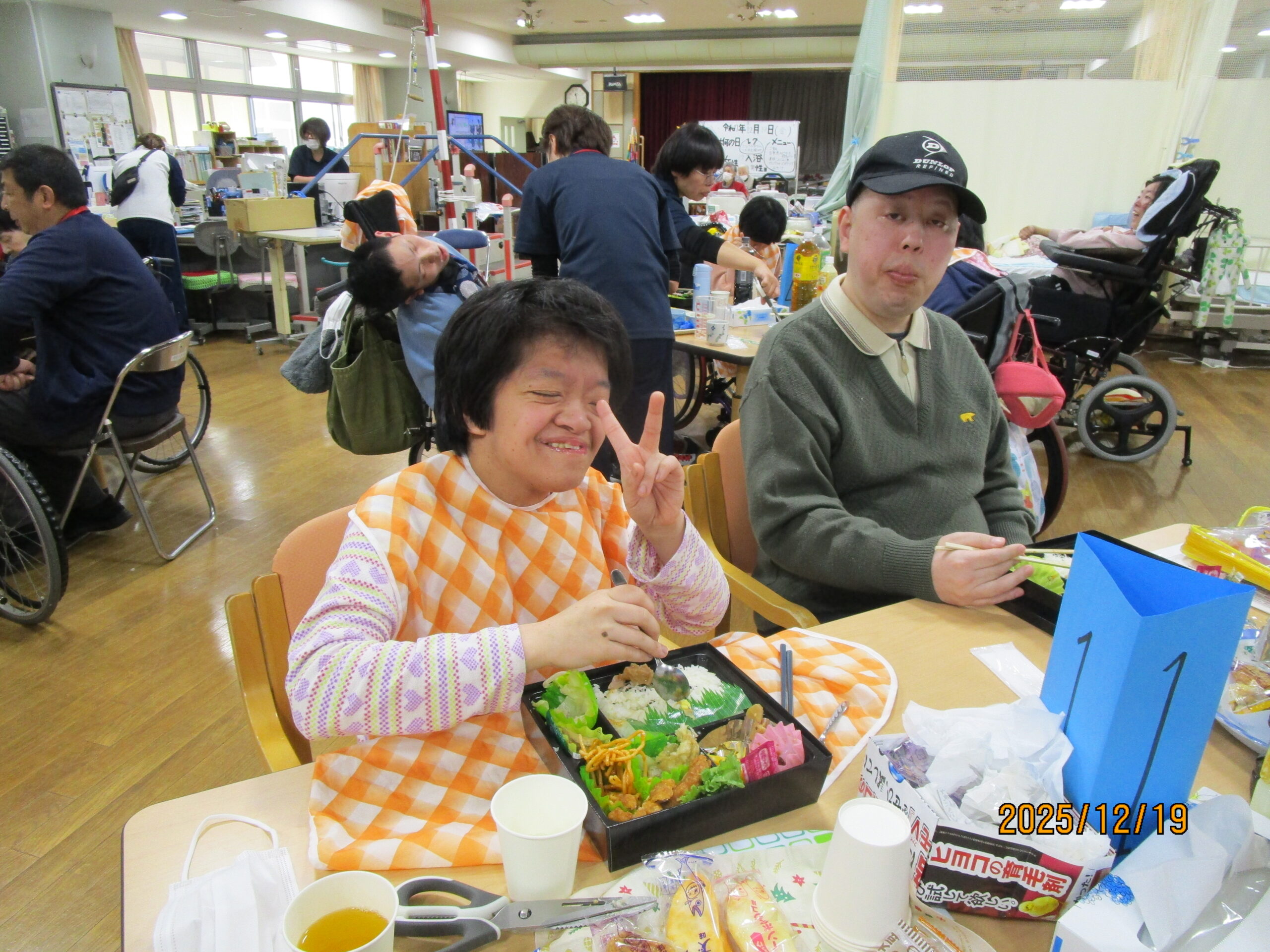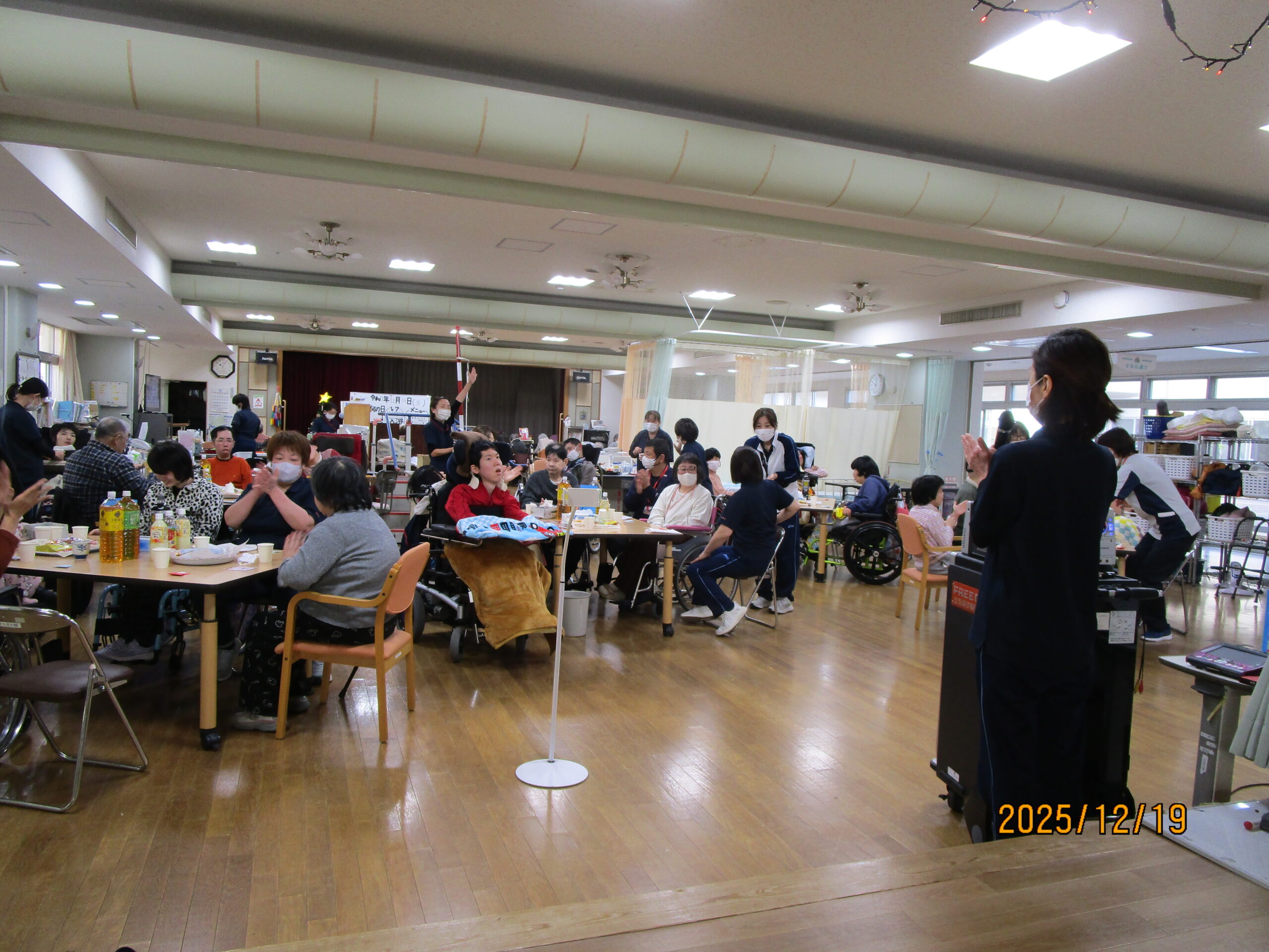 生活介護 忘年会 20252026年1月6日 こんにちは、あゆみ苑生活介護です。19日(金)の忘年会の様子をご紹介します^^ 開会の挨拶、施設長の乾杯で始まりです(≧▽≦) 続いては恒例のビンゴゲーム! ビンゴになった方から景品の選択です。(`・ω・´) 昼食 (●´ω`●) 食後はカラオケをしたり、 職員も頑張ります(∩´∀`)∩ ケーキはラポール( *´艸`)カワイイ 利用者さん・職員の笑いが絶えない一日となりました。 2026年も楽しく行きましょう(∩´∀`)∩ 施設情報愛媛県新居浜市にある総合福祉施設やすらぎの郷ゆったりとした安らぎが得られ、安心と信頼感をもって何度でも気軽に利用できる施設を目指します。総合福祉施設 やすらぎの郷〒792-0035 愛媛県新居浜市西の土居町2-8-12TEL:0897-33-4477 FAX:0897-33-4400やすらぎの郷WEBサイト最近の記事2026年1月27日新年会総合福祉施設 やすらぎの郷2026年1月26日🌅新年会🌅総合福祉施設 やすらぎの郷2026年1月21日🎍初 詣🎍総合福祉施設 やすらぎの郷2026年1月20日初詣総合福祉施設 やすらぎの郷2026年1月16日初詣総合福祉施設 やすらぎの郷2026年1月15日☆お正月のお食事☆総合福祉施設 やすらぎの郷やすらぎの郷の記事一覧