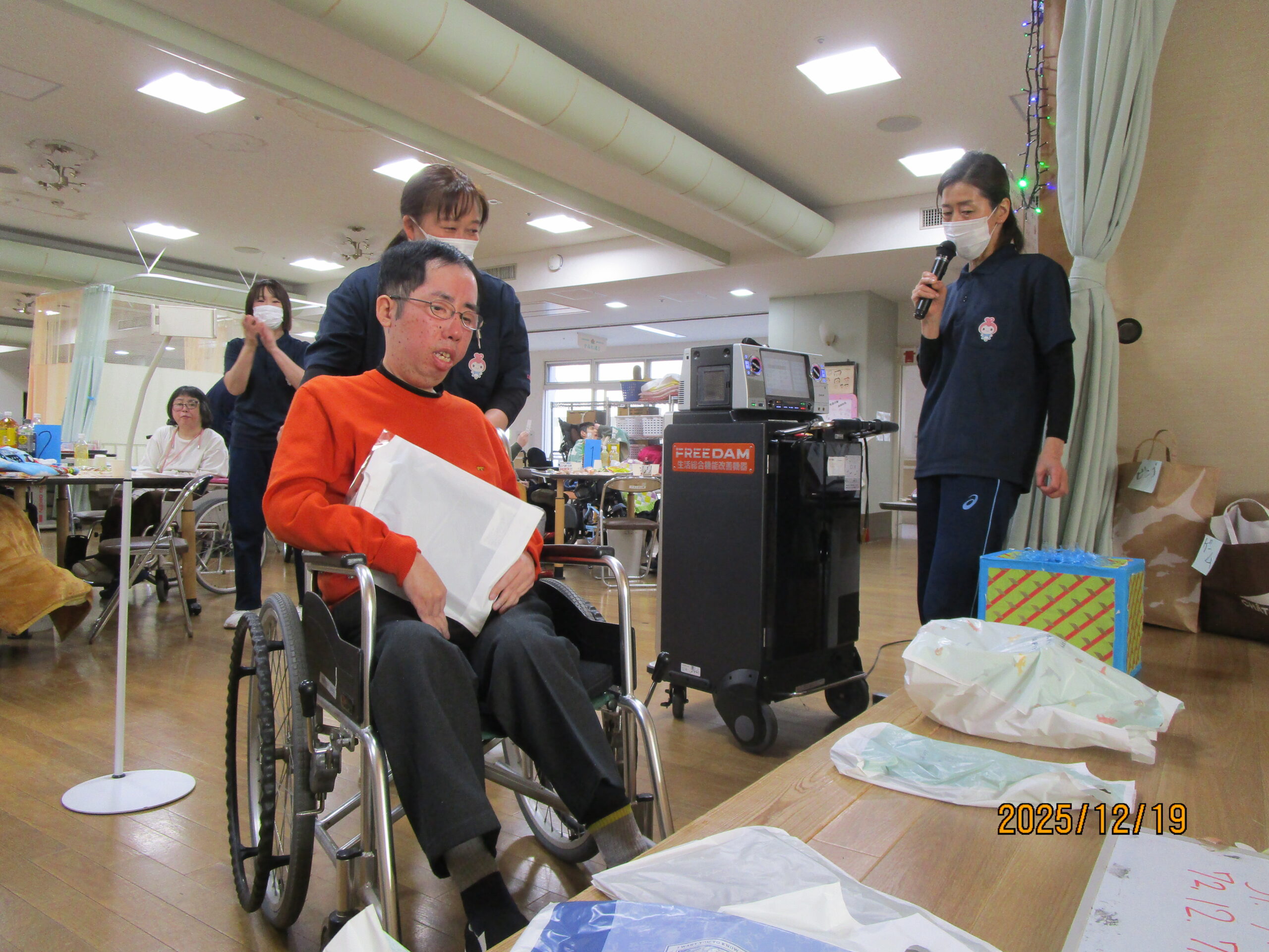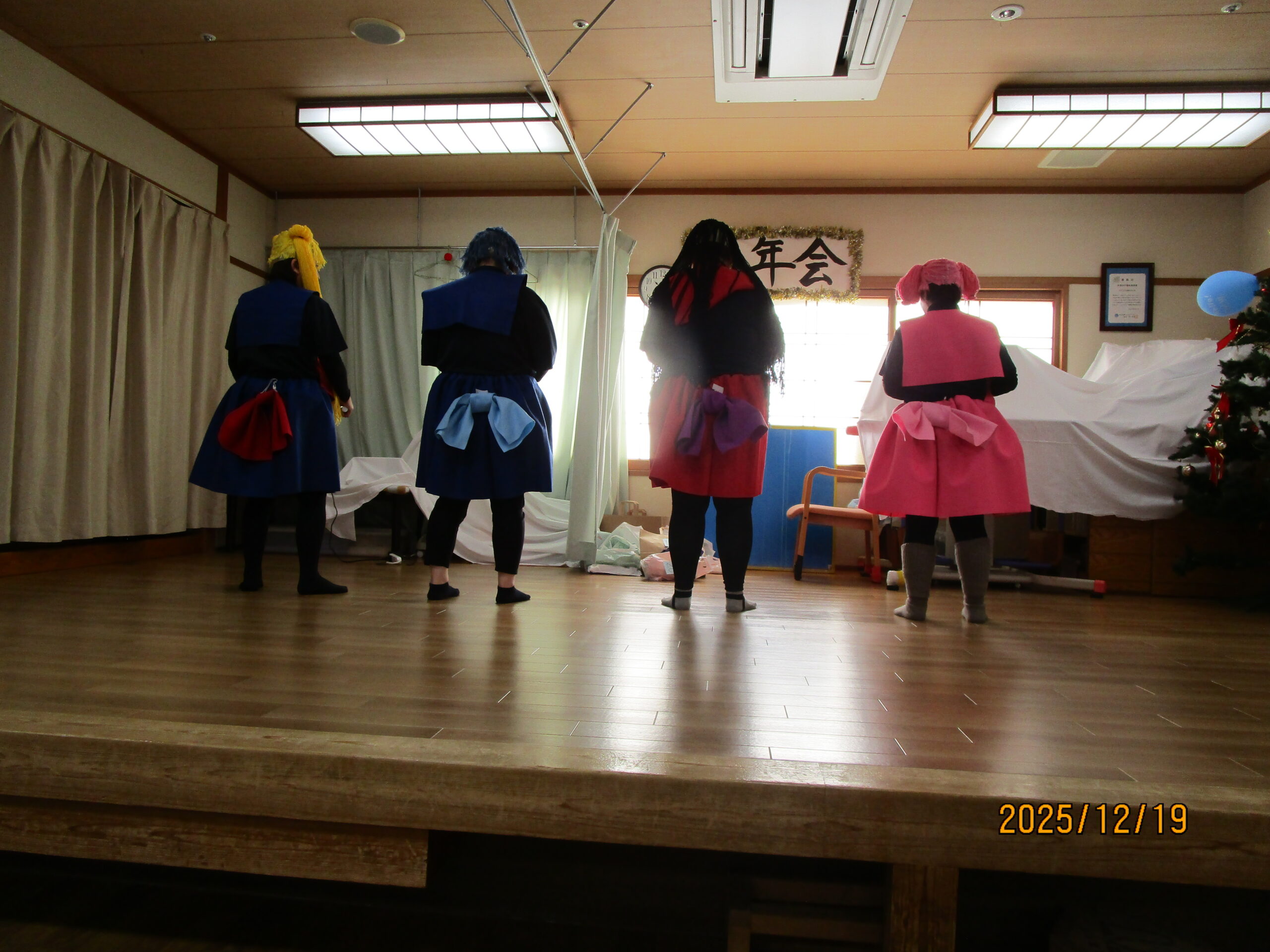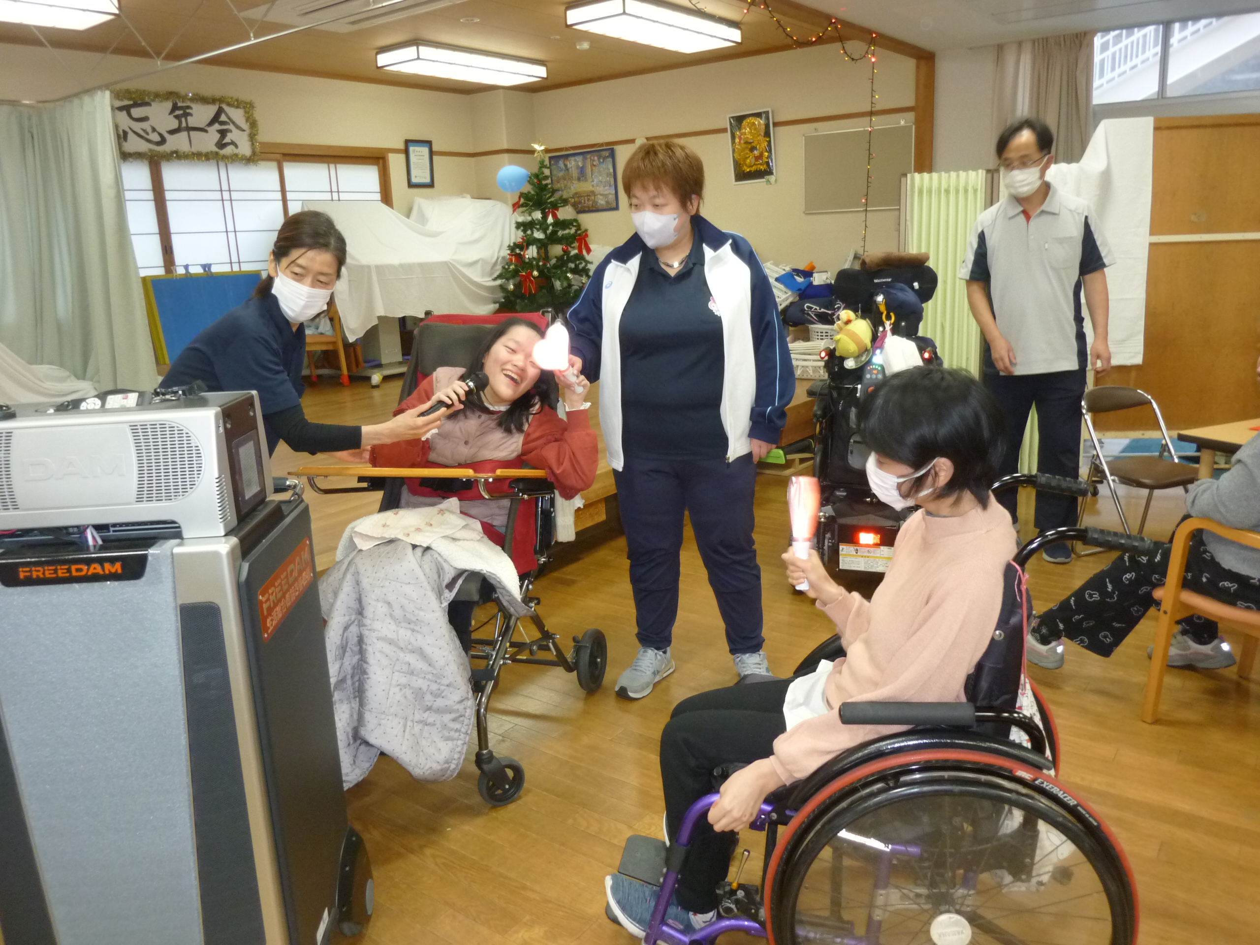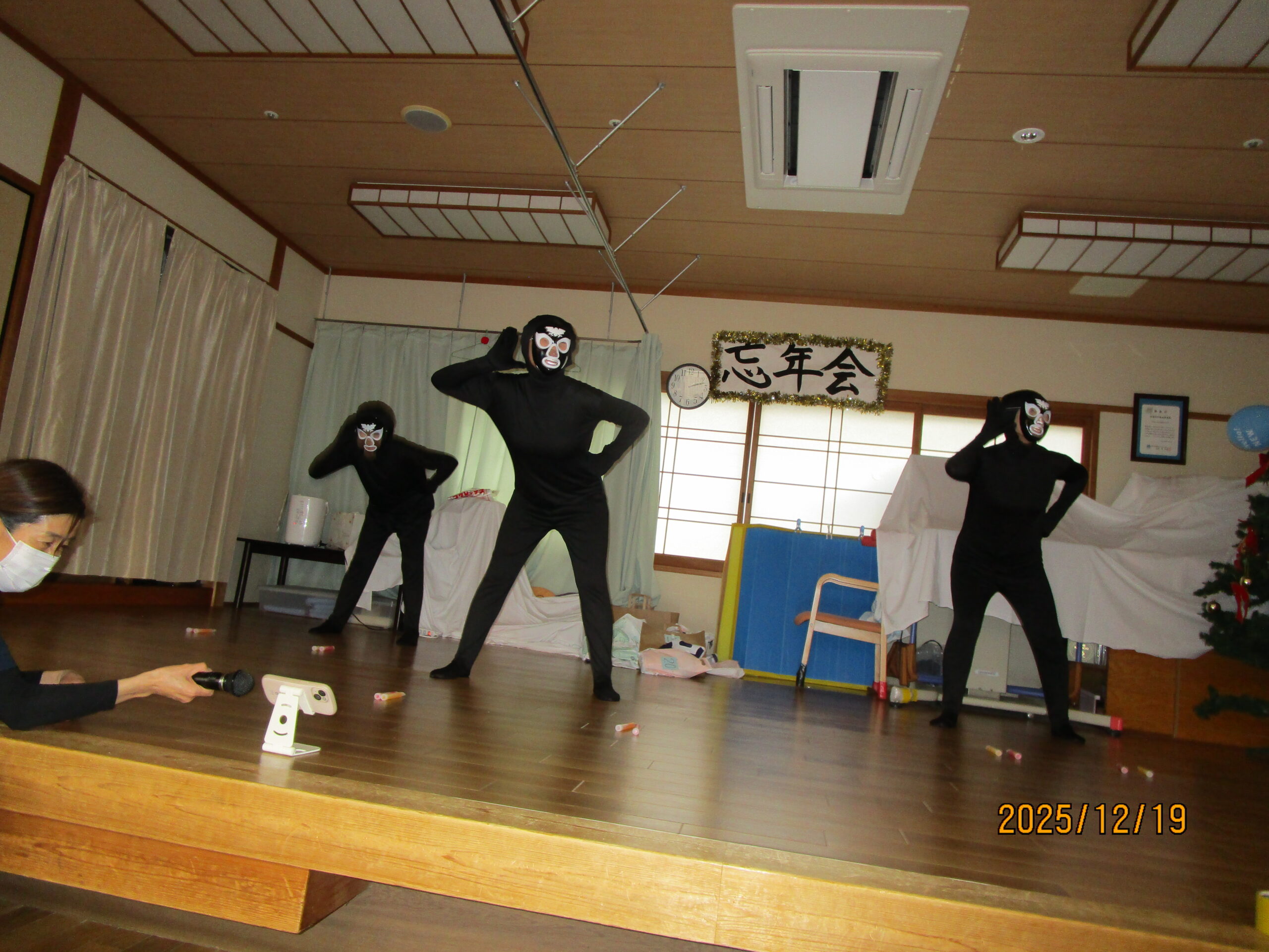 生活介護 忘年会 20252026年1月6日 こんにちは、あゆみ苑生活介護です。19日(金)の忘年会の様子をご紹介します^^ 開会の挨拶、施設長の乾杯で始まりです(≧▽≦) 続いては恒例のビンゴゲーム! ビンゴになった方から景品の選択です。(`・ω・´) 昼食 (●´ω`●) 食後はカラオケをしたり、 職員も頑張ります(∩´∀`)∩ ケーキはラポール( *´艸`)カワイイ 利用者さん・職員の笑いが絶えない一日となりました。 2026年も楽しく行きましょう(∩´∀`)∩ 施設情報愛媛県新居浜市にある総合福祉施設やすらぎの郷ゆったりとした安らぎが得られ、安心と信頼感をもって何度でも気軽に利用できる施設を目指します。総合福祉施設 やすらぎの郷〒792-0035 愛媛県新居浜市西の土居町2-8-12TEL:0897-33-4477 FAX:0897-33-4400やすらぎの郷WEBサイト最近の記事2026年1月27日新年会総合福祉施設 やすらぎの郷2026年1月26日🌅新年会🌅総合福祉施設 やすらぎの郷2026年1月21日🎍初 詣🎍総合福祉施設 やすらぎの郷2026年1月20日初詣総合福祉施設 やすらぎの郷2026年1月16日初詣総合福祉施設 やすらぎの郷2026年1月15日☆お正月のお食事☆総合福祉施設 やすらぎの郷やすらぎの郷の記事一覧