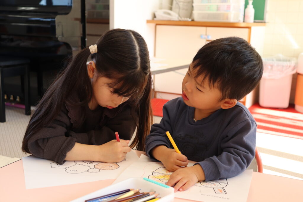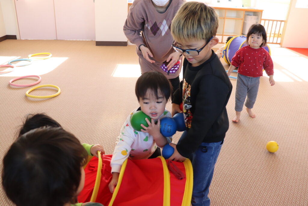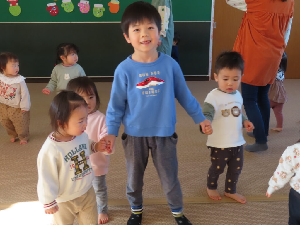 仲良しの日(12月19日実施)2025年12月26日 縦割り保育「仲良しの日」を行いました。今回は、乳児クラスへ年長児さんたちがそれぞれに分かれてお邪魔しました♪小さい子への接し方も少しずつ慣れてきて、年長児さんたちから積極的に関わろうとする姿がたくさん見られ、ゲームを一緒にしたり、着脱を手伝ってあげたり、小さいお友だちもとても嬉しそうに過ごしていました(*^_^*) こんな姿をみると、やっぱり気持ちがホッコリ♡しますね♡ 施設情報愛媛県新居浜市にある児童福祉施設十全保育園げんきな子 がんばる子 やさしい子 楽しく食べるげんきな子児童福祉施設 十全保育園〒792-0011愛媛県新居浜市西原町2-3-12TEL:0897-33-3055 FAX:0897-33-3078十全保育園WEBサイト最近の記事2025年12月26日クリスマス会♪(12月25日)児童福祉施設 十全保育園2025年12月26日クリスマスコンサート♪児童福祉施設 十全保育園2025年12月26日クリスマスケーキを作ったよ♪(12月23日実施)児童福祉施設 十全保育園2025年12月26日今、夢中なの♪児童福祉施設 十全保育園2025年12月26日お箸練習頑張ってます!!児童福祉施設 十全保育園2025年12月26日寒さなんてへっちゃらだいっ!!児童福祉施設 十全保育園十全保育園の記事一覧