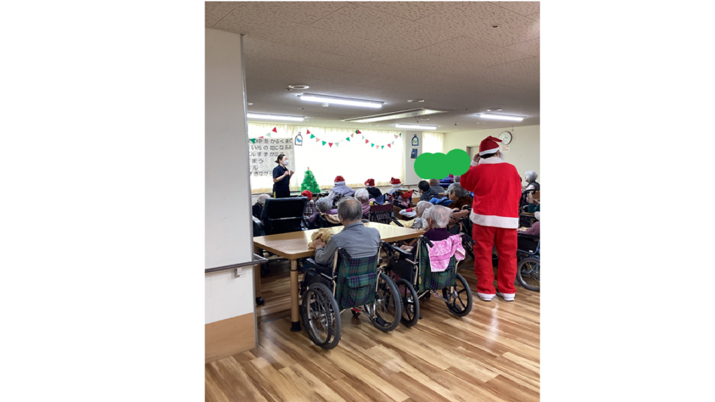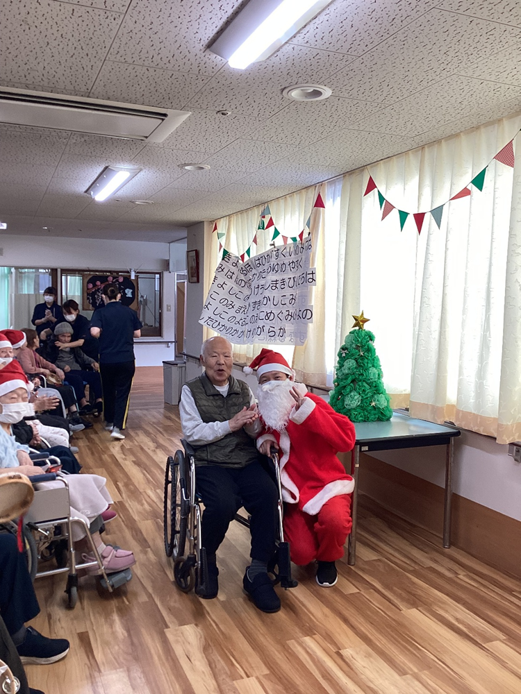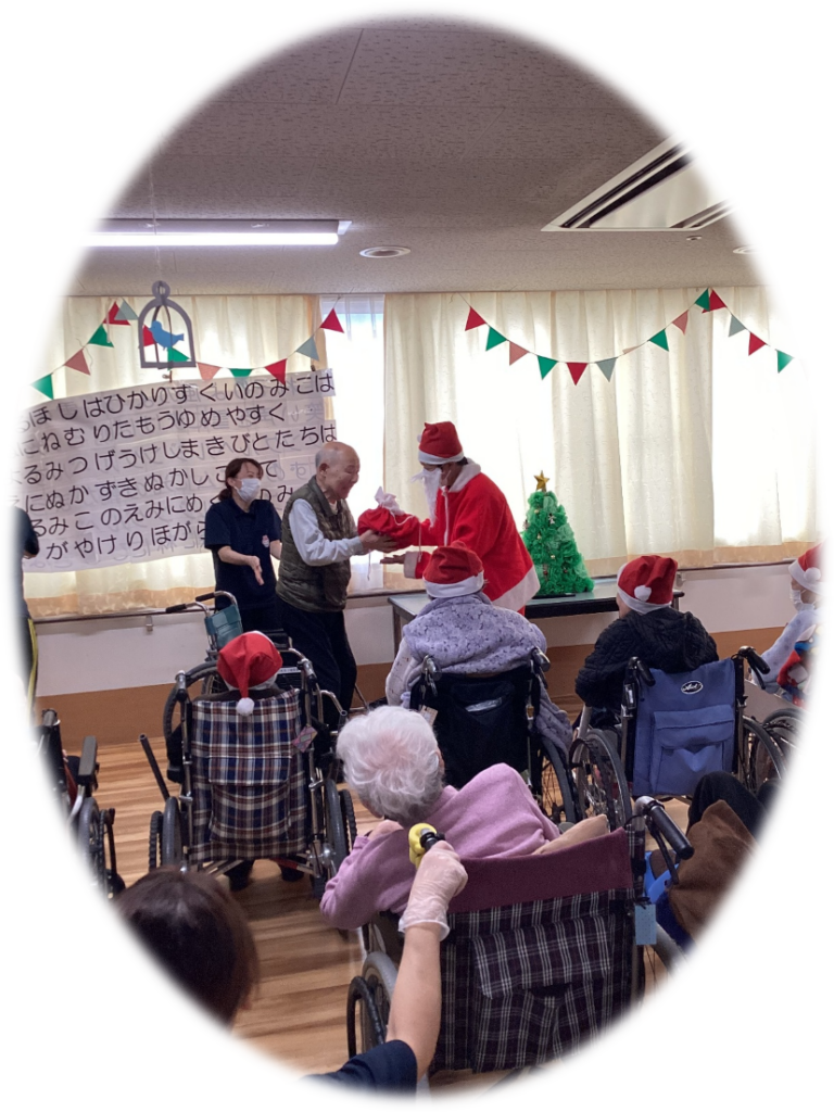 【北館】クリスマス会2025年12月28日 北館入所者、ショートステイ利用者がデイルームに集まり…盛大にクリスマス会を行いました!!!! ジングルベルときよしこの夜を合奏したり歌ったり 曲に合わせて体を動かしました🎵 皆さんとてもいい声がでていましたね♡♥ 入所者代表でサンタクロースよりプレゼントを受けっとてもらいました(*^^) ひとりひとりにあわせてお菓子の詰め合わせ・クリスマスカード付きをプレゼントしました!(^^)! そのあとはクリスマスケーキやプリンを食べました🍰 施設情報愛媛県新居浜市にある介護老人福祉施設ハートランド三恵手作りの愛あるホームで咲かそう、みんなの笑顔介護老人福祉施設 ハートランド三恵〒792-0050 愛媛県新居浜市萩生17TEL:0897-40-0006 FAX:0897-40-0007ハートランド三恵WEBサイト最近の記事2025年12月28日ちょっとオシャレに介護老人福祉施設 ハートランド三恵2025年12月26日【デイ】✨忘年会✨介護老人福祉施設 ハートランド三恵2025年12月25日〖南館〗クリスマス会🎄🌟介護老人福祉施設 ハートランド三恵2025年12月24日〖南館3階〗忘年会 おまけ介護老人福祉施設 ハートランド三恵2025年12月20日〖南館3階〗忘年会③介護老人福祉施設 ハートランド三恵2025年12月18日〖南館3階〗忘年会②介護老人福祉施設 ハートランド三恵ハートランド三恵の記事一覧