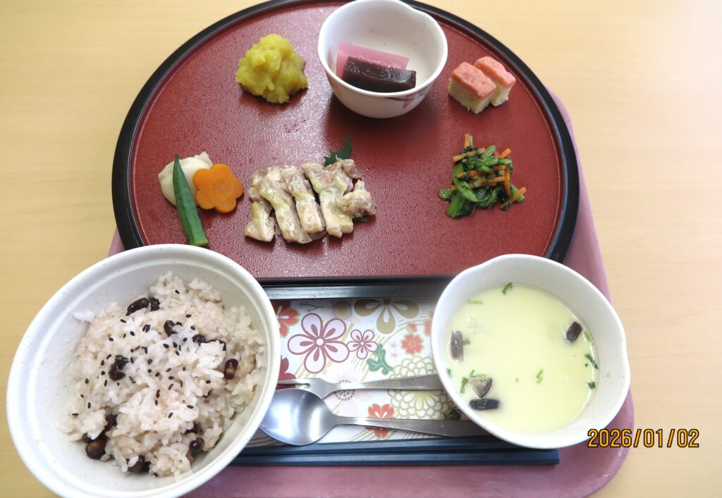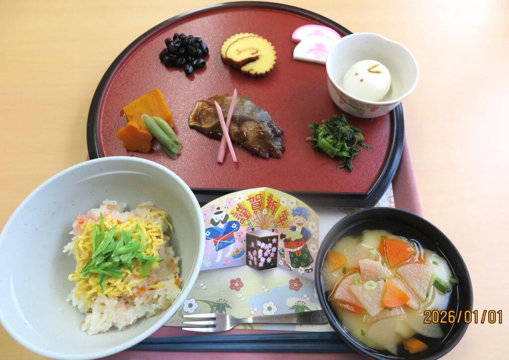 おせち料理2026年1月5日 明けましておめでとうございます 本年もどうぞよろしくお願いいたします やかたの布袋さんもお正月仕様になりました😄 お正月にかかせないおせち料理!1日、2日と利用者様に食べていただきました。皆様が1年間健康で過ごせるよう、職員一同頑張りますのでどうぞよろしくお願いいたします。 施設情報愛媛県東温市にある老人保健施設希望の館身の回りのお世話から心のケアまで、トータルなサポートを心がけています。介護老人保健施設 希望の館〒791-0311 愛媛県東温市則之内甲2783-1TEL:089-960-6336 FAX:089-966-1239希望の館WEBサイト最近の記事2026年1月21日空室状況のお知らせ(1月21日)介護老人保健施設 希望の館2026年1月16日福笑い介護老人保健施設 希望の館2026年1月10日空室状況のお知らせ(1月10日)介護老人保健施設 希望の館2026年1月5日書初め介護老人保健施設 希望の館2025年12月27日生け花教室介護老人保健施設 希望の館2025年12月27日クリスマス会♪介護老人保健施設 希望の館希望の館の記事一覧
