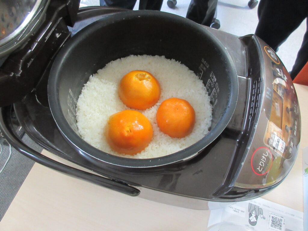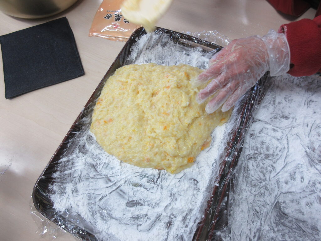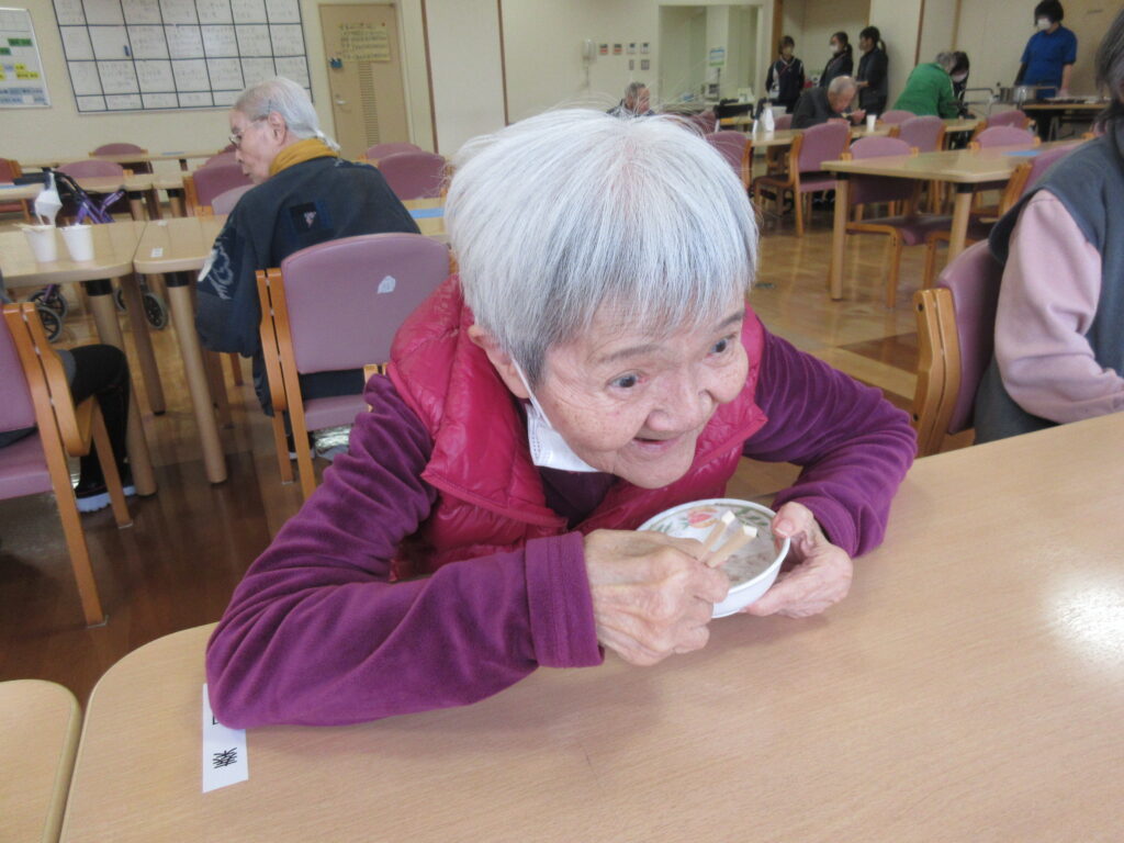 今年一回目のふれあい喫茶は「ぜんざいとみかんもち」です。入園者さんの笑顔で美味しさが伝わります。