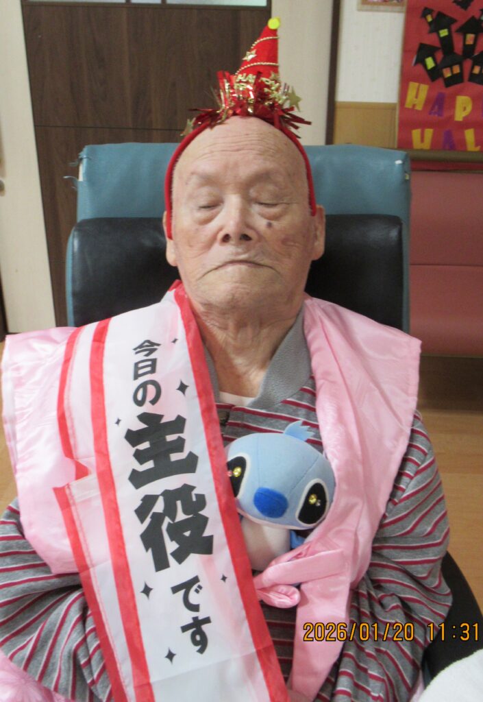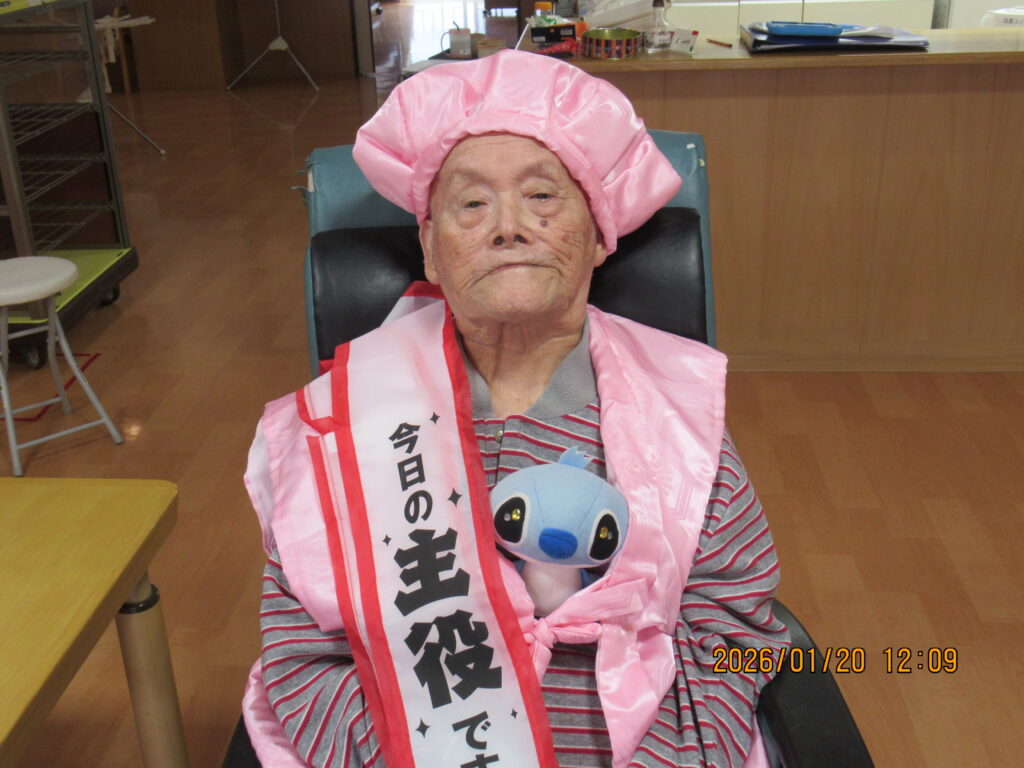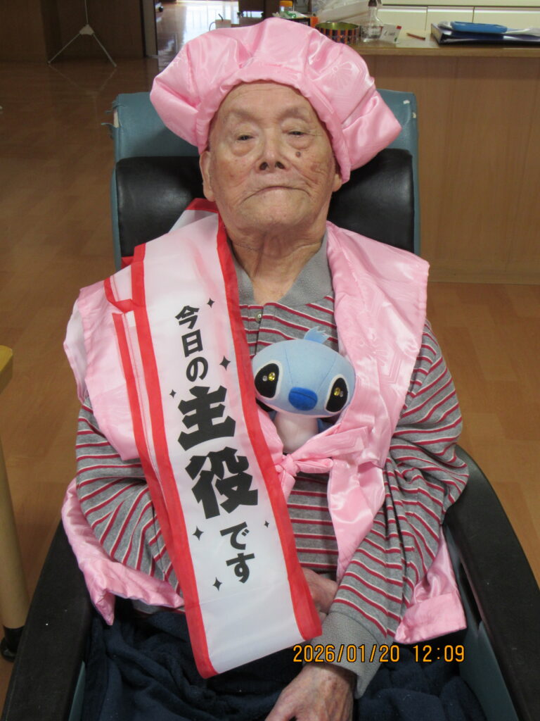 〖南館3階〗祝・100歳2026年1月23日 1月20日に100歳のお誕生日迎えられましたI様!お誕生日おめでとうございます!これからもお元気にお過ごしください。 スティッチと一緒に記念撮影! 施設情報愛媛県新居浜市にある介護老人福祉施設ハートランド三恵手作りの愛あるホームで咲かそう、みんなの笑顔介護老人福祉施設 ハートランド三恵〒792-0050 愛媛県新居浜市萩生17TEL:0897-40-0006 FAX:0897-40-0007ハートランド三恵WEBサイト最近の記事2026年1月27日ハートランドからの景色介護老人福祉施設 ハートランド三恵2026年1月24日〖南館3階〗初釜介護老人福祉施設 ハートランド三恵2026年1月23日〖南館2階〗初釜介護老人福祉施設 ハートランド三恵2026年1月23日〖南館3階〗毛糸を使ってグルグル介護老人福祉施設 ハートランド三恵2026年1月23日〖南館〗サンバ♫ビバ・サンバ♬介護老人福祉施設 ハートランド三恵2026年1月21日【北館】1月誕生日会・芋掘りレクリエーション介護老人福祉施設 ハートランド三恵ハートランド三恵の記事一覧