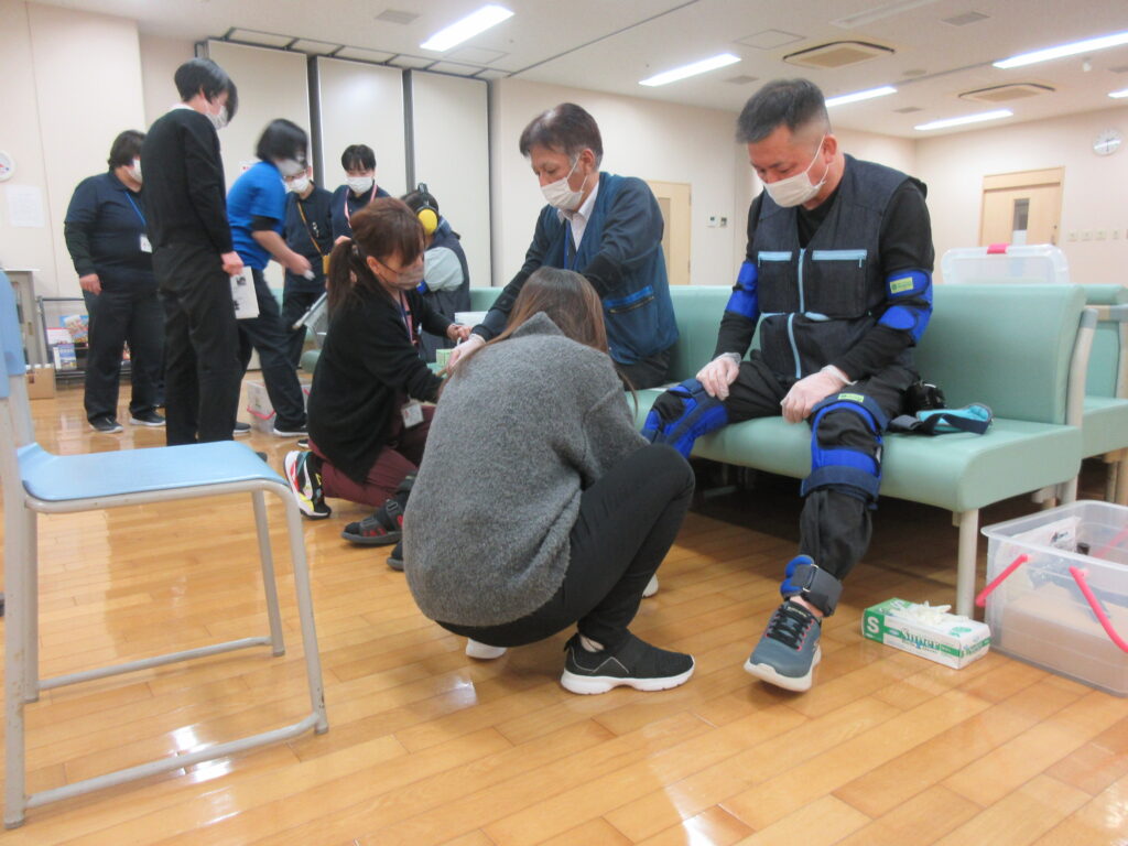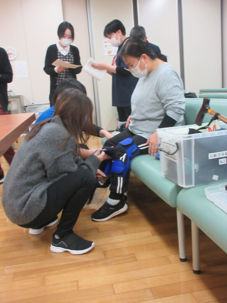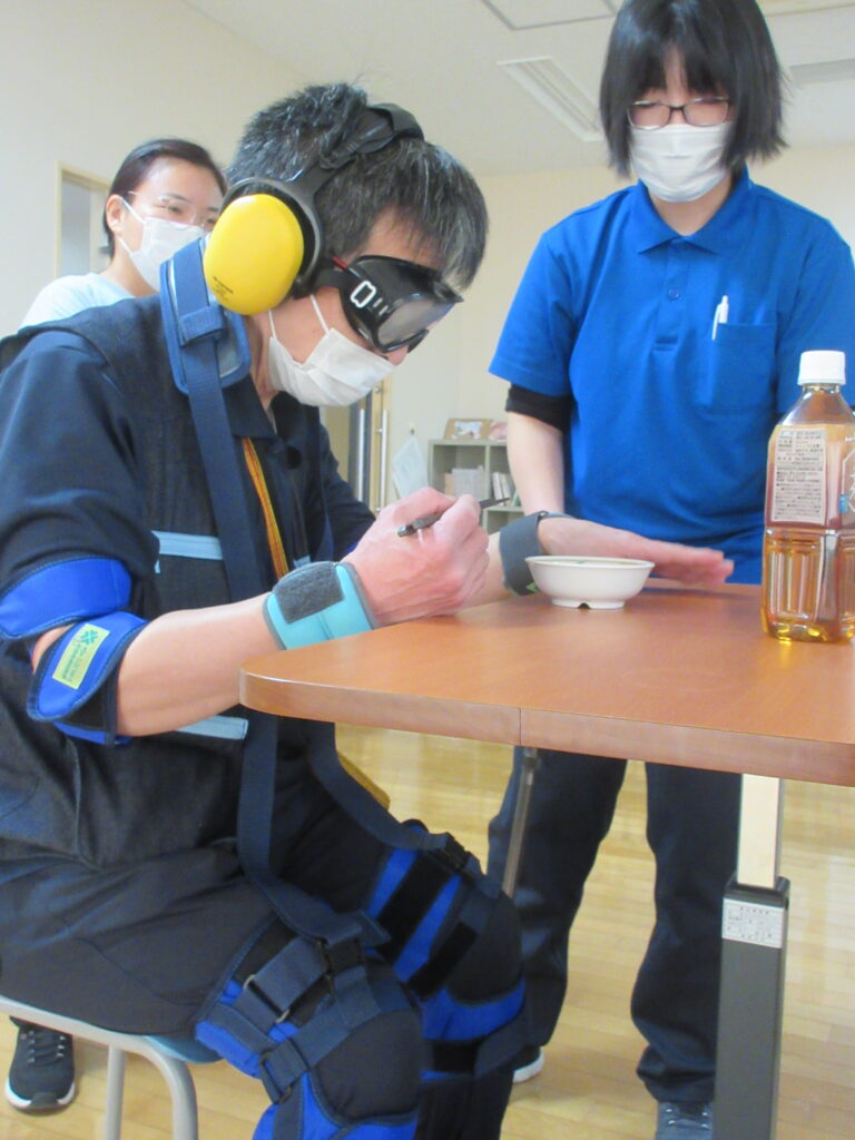 参加した職員は高齢者疑似体験セットの各装具を装着しました。体験をしてあらためて入園者のことが分かりました。