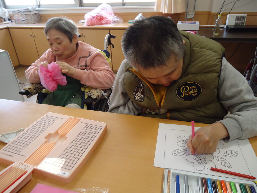 節分行事を終えた皆さんは、次の行事に向けて作品制作に取り組んでいます。どうやら2月14日のバレンタインデーに向けての作品のようですが、さて、一体何が出来上がるのでしょうか?…完成披露のときが今から楽しみですね!