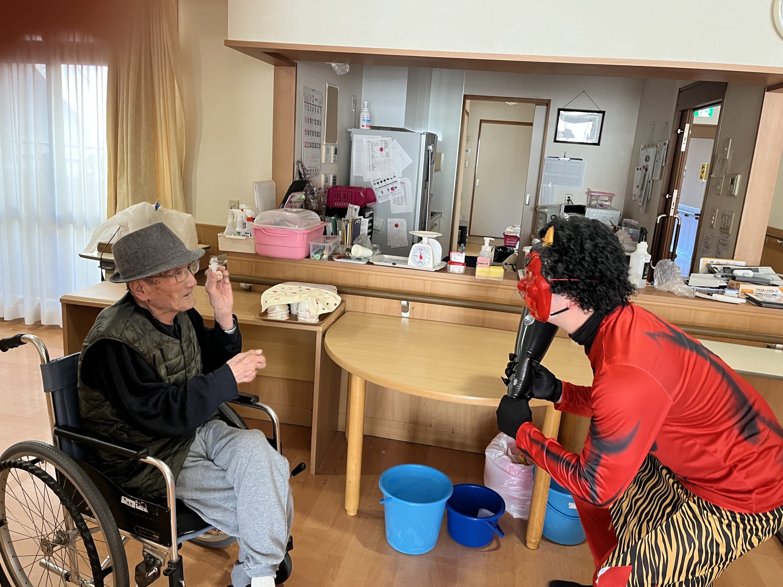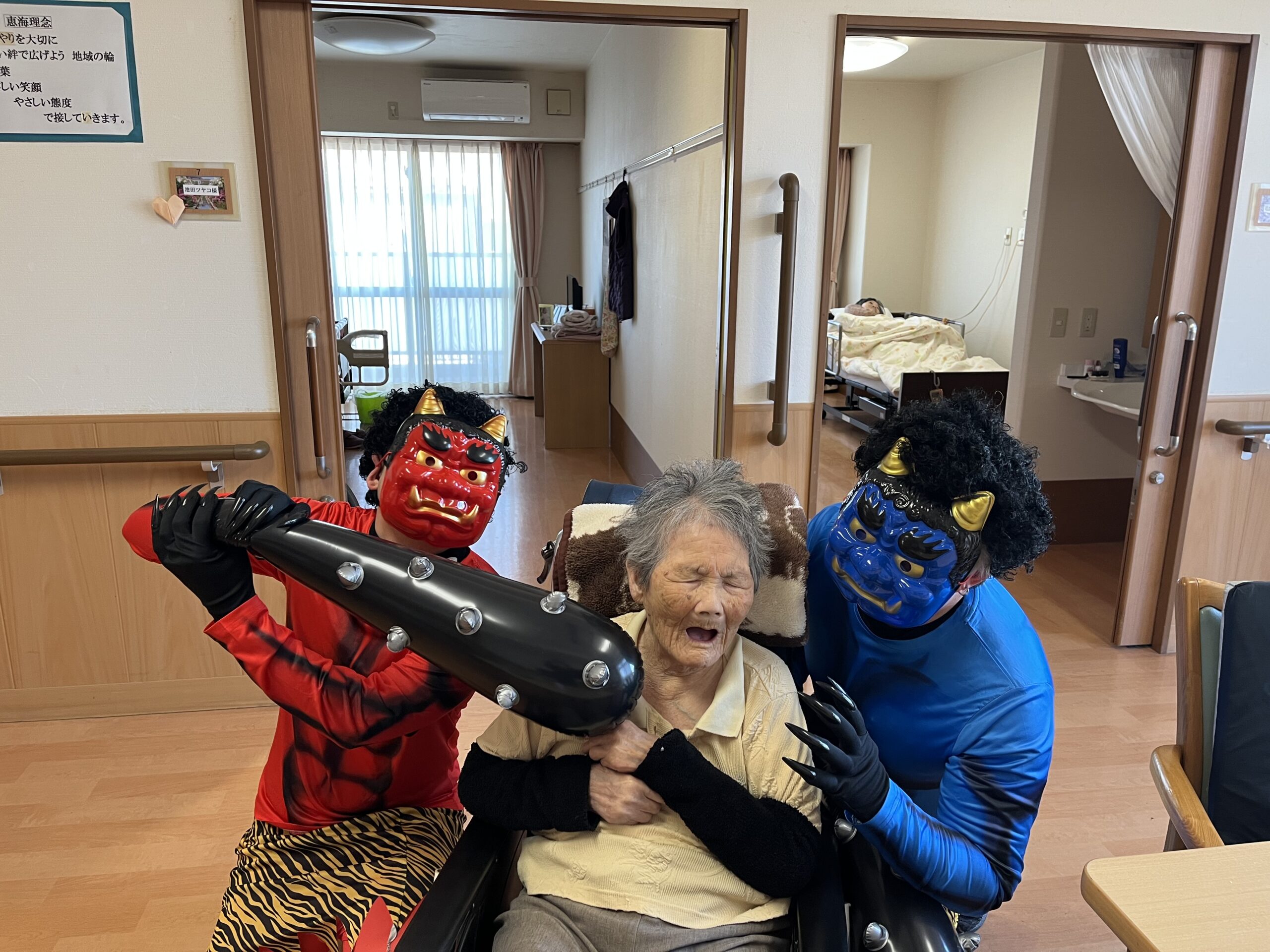 鬼は外~~♪福は内~~♪2026年2月5日 昨年とはくらべものにならないクオリティアップな豆まきの様子をお楽しみください・・・ 豆まき、、、それは己との闘い👹 鬼さんもご利用者さんもお疲れさまでした(*^-^*) 施設情報愛媛県新居浜市にある地域密着型介護老人福祉施設、グループホーム恵海笑顔と思いやりを大切に、あたたかい絆で広げよう地域の輪福祉館 恵海(めぐみ)〒792-0896 愛媛県新居浜市阿島1-7-20TEL:0897-67-1100 FAX:0897-67-1102惠海WEBサイト最近の記事2026年2月5日GH最近のこと福祉館 恵海2026年2月5日いつ来るか分からない・・・福祉館 恵海2026年1月20日実は・・・福祉館 恵海2026年1月19日「海ほたる、珊瑚」ユニット活動風景(*’ω’*)福祉館 恵海2026年1月18日新年ということで・・・福祉館 恵海2025年12月26日今年も一年お世話になりました( 一一)福祉館 恵海恵海の記事一覧