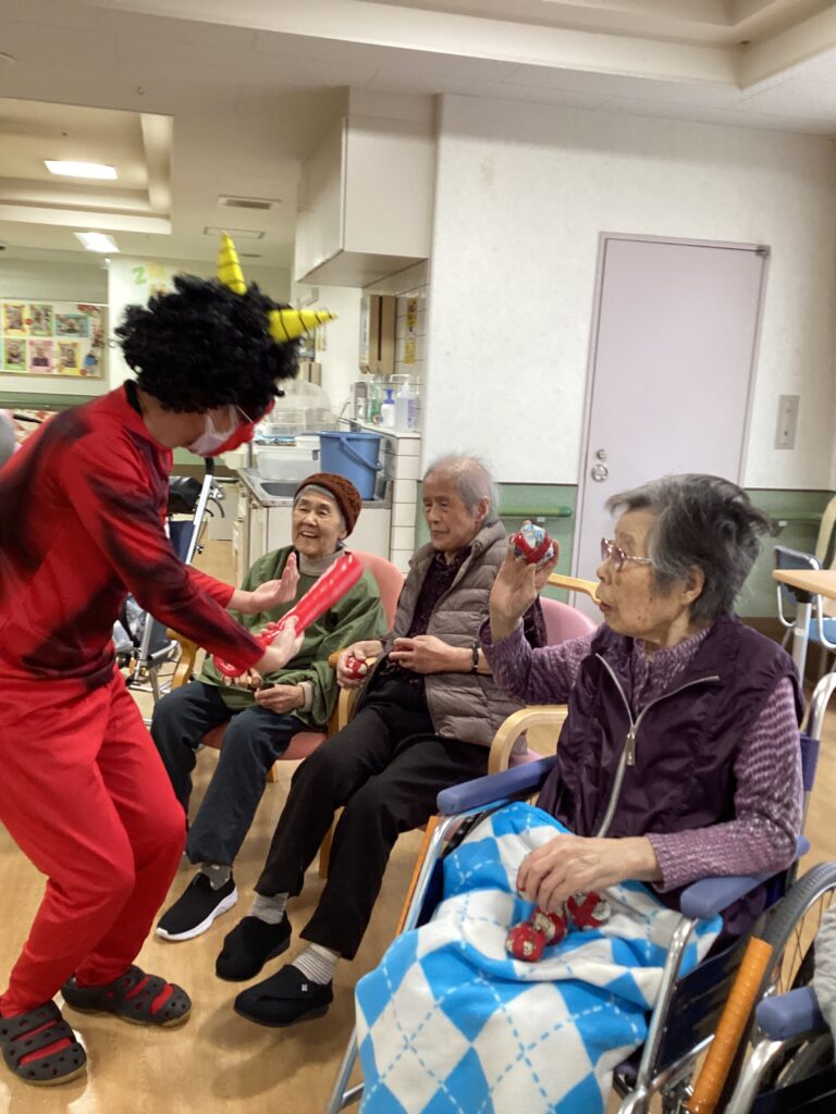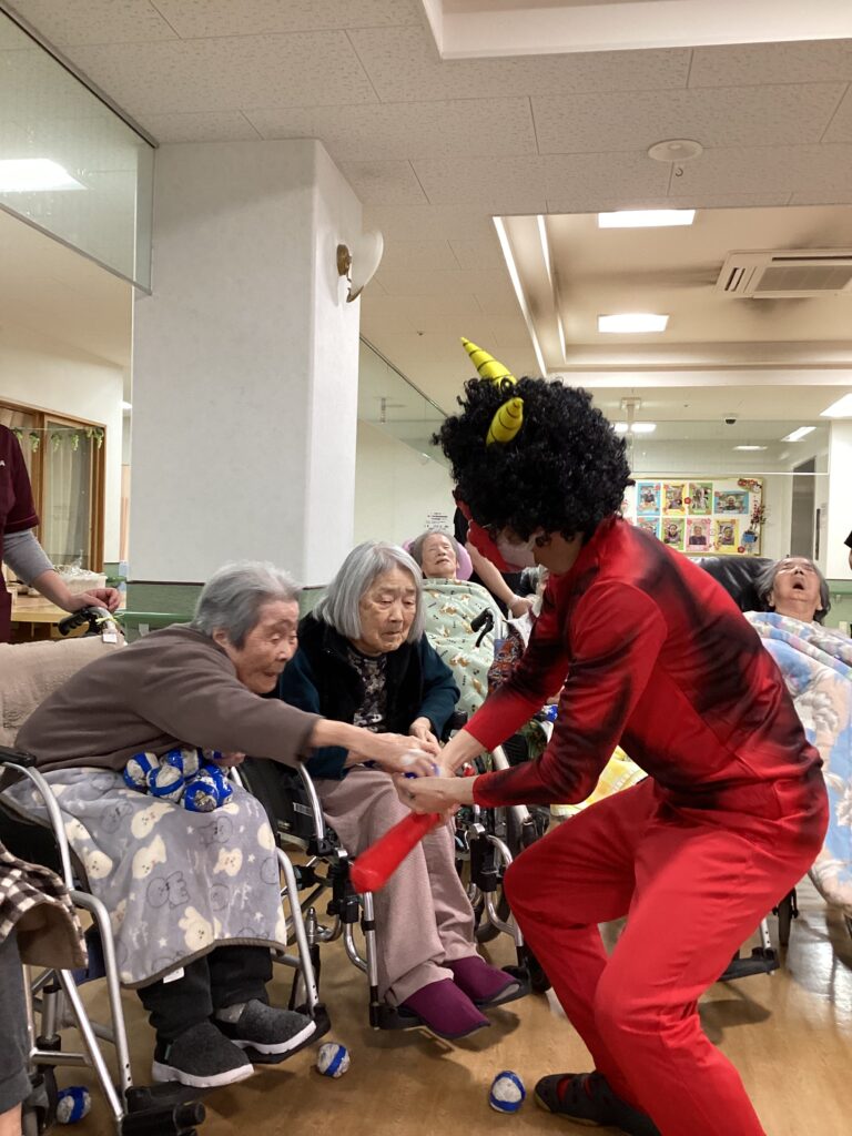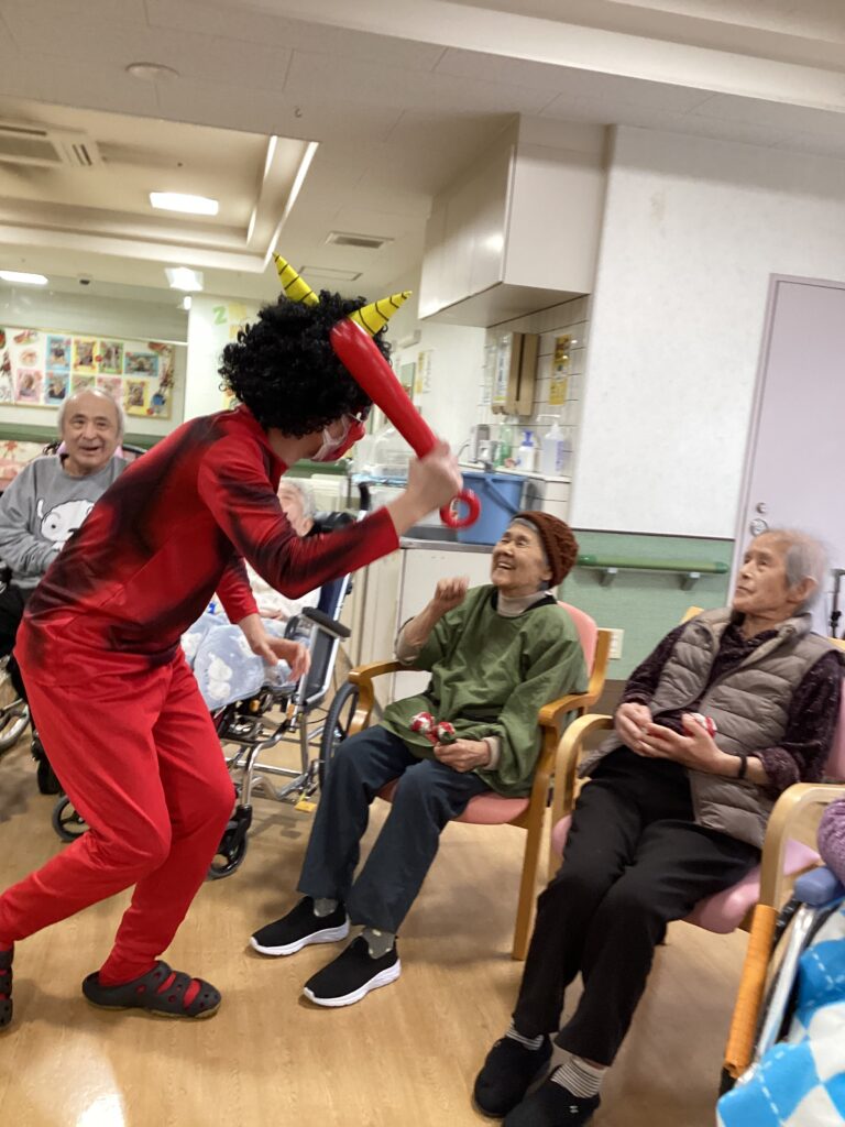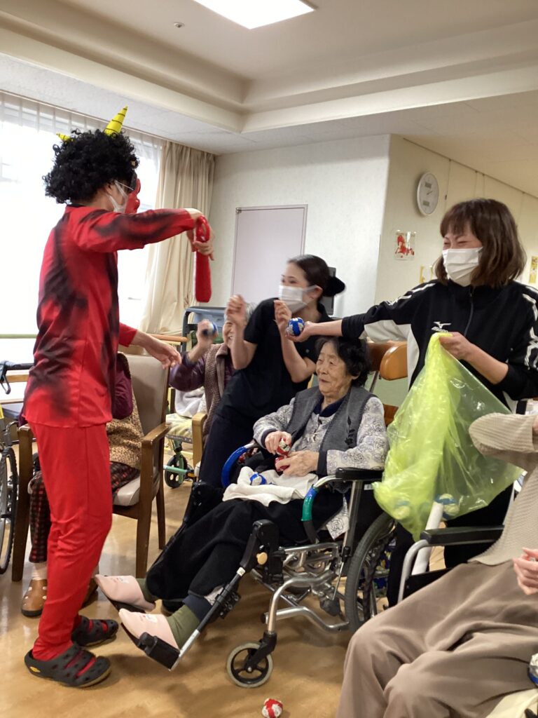 節分行事 ①2026年2月9日 2階 節分行事(^^♪ 利用者様と一緒に豆まき用の豆を新聞紙で作成しました♪ みんなで作った豆を赤鬼めがけて「鬼は外ッッ!! // 福は内ッッ!!」力いっぱい投げてました😄 ] 施設情報愛媛県東温市にある老人保健施設希望の館身の回りのお世話から心のケアまで、トータルなサポートを心がけています。介護老人保健施設 希望の館〒791-0311 愛媛県東温市則之内甲2783-1TEL:089-960-6336 FAX:089-966-1239希望の館WEBサイト最近の記事2026年1月30日毛糸をグルグル節分の鬼作り介護老人保健施設 希望の館2026年1月21日空室状況のお知らせ(1月21日)介護老人保健施設 希望の館2026年1月16日福笑い介護老人保健施設 希望の館2026年1月10日空室状況のお知らせ(1月10日)介護老人保健施設 希望の館2026年1月5日書初め介護老人保健施設 希望の館2026年1月5日おせち料理介護老人保健施設 希望の館希望の館の記事一覧