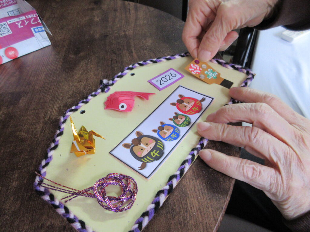 作品作り2026年2月18日 リハビリでは個別で手作業等の作品作りを行っています。 今回は絵馬の作品作り途中~完成までの経過写真です。 こちらは2Fに飾ってある壁画です。 いちごの種は利用者さんに書いて頂きました♪ また順次作品完成次第廊下に貼るので楽しみにしていてください。 施設情報愛媛県新居浜市にある介護老人保健施設三恵荘拡げよう繋がり深まる信頼、ともに歩む喜び・思いやり。温かい心でスマイルケア介護老人保健施設 リハビリステーション三恵荘 〒792-0050 愛媛県新居浜市萩生河の北67-60TEL:0897-40-3366 FAX:0897-40-3360三恵荘WEBサイト最近の記事2026年2月12日節分行事食☆リハビリステーション 三恵荘2026年2月6日~ 節分 ~リハビリステーション 三恵荘2026年1月28日指定居宅介護支援事業所 三恵 ケアマネ便りリハビリステーション 三恵荘2026年1月21日☃️☃️通所リハビリテーション三恵荘☃️☃️リハビリステーション 三恵荘2026年1月12日1月の創作活動(絵馬)リハビリステーション 三恵荘2026年1月7日蒸しパン☆リハビリステーション 三恵荘三恵荘の記事一覧
